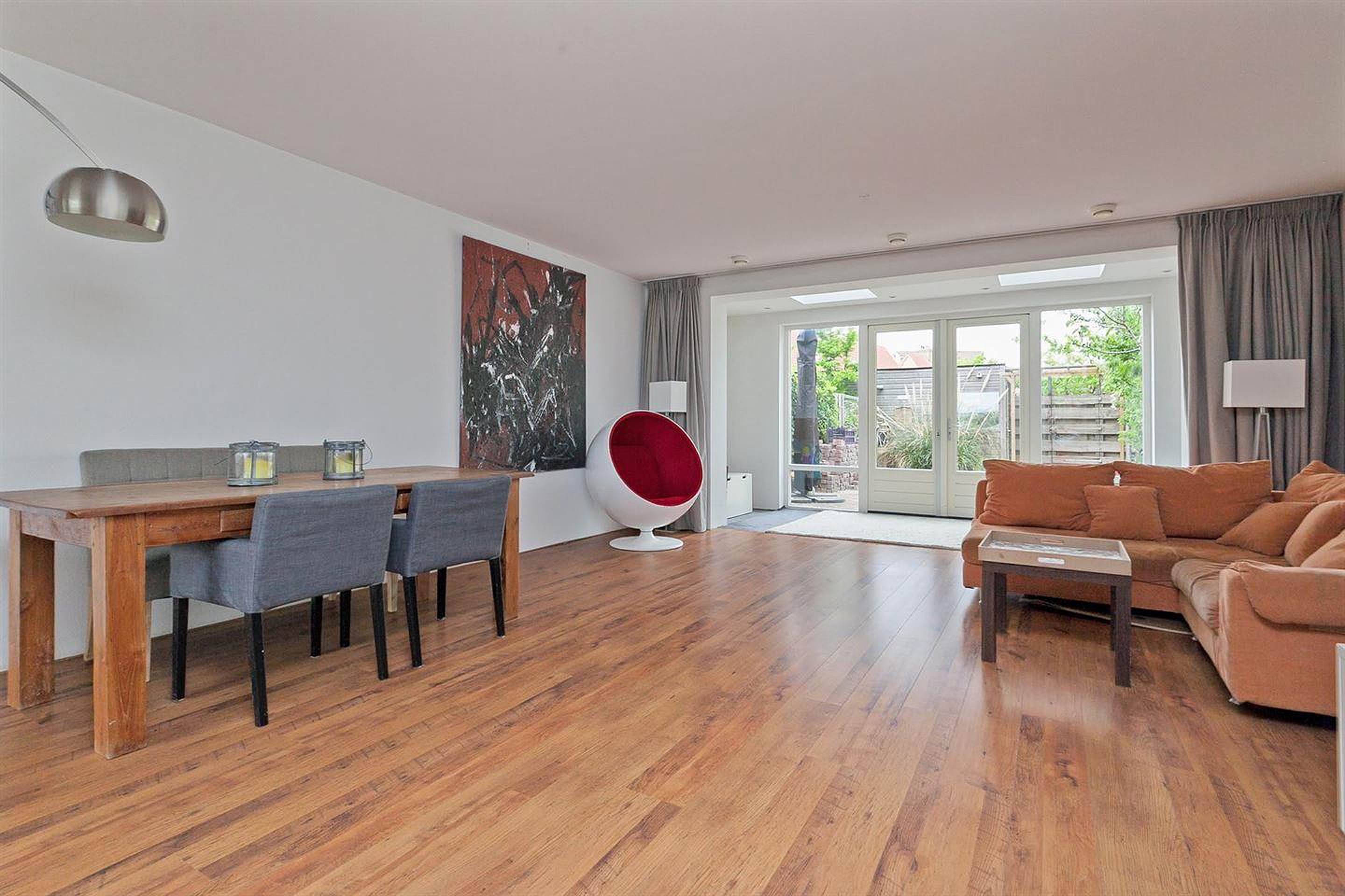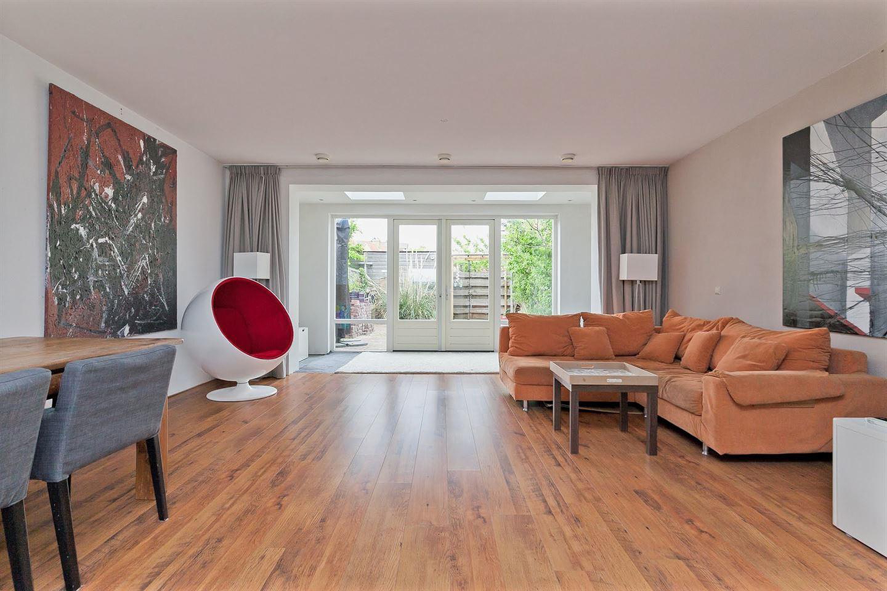 De uitgebouwde woonkamer is voorzien van vloerverwarming en een mooie vloer. Veel licht door de erker aan de voorzijde, en het glasoppervlak aan de achterzijde met openslaande deuren en lichtkoepels. Aan de achterzijde een mooie doorkijk op uw diepe achtertuin.