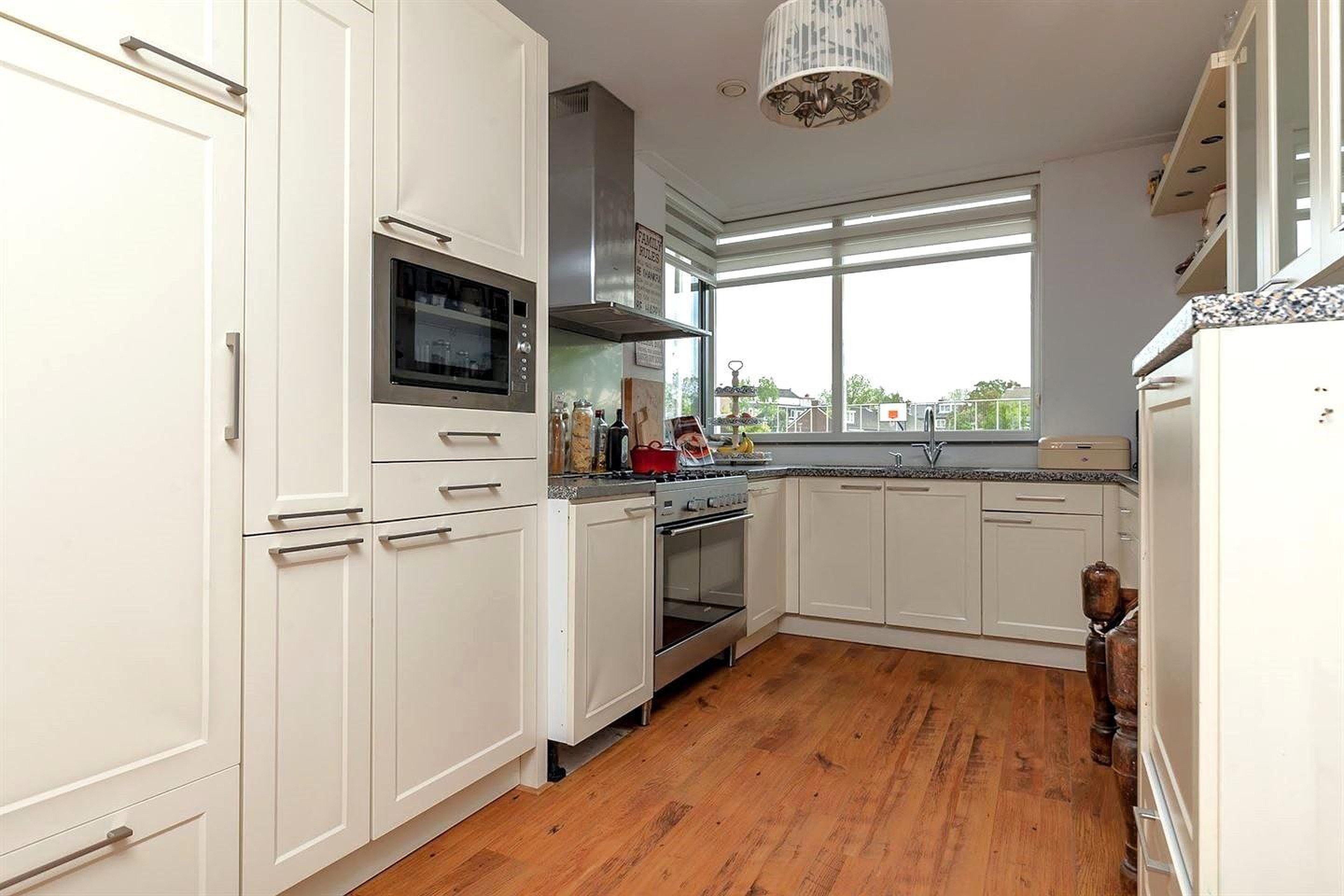De open luxe keuken is voorzien van alle apparatuur voor dagelijks comfort, o.a.: een mooi stenen werkblad, een fraaie kookplaat, elektrische oven, vaatwasser, koelkast-vriescombinatie.