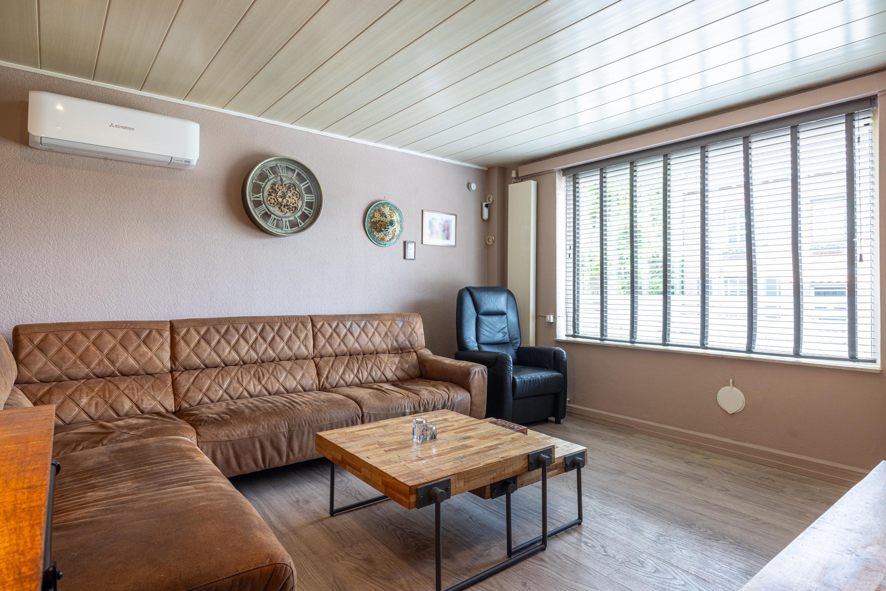 Begane grond Je komt binnen in een verzorgde ontvangsthal met een tegelvloer, garderobe, meterkast en toegang tot de woonkamer. De woonkamer is sfeervol en licht dankzij het grote raam aan de voorzijde, dat voorzien is van een elektrisch rolluik. Een airco-installatie uit 2025 zorgt het hele jaar door voor een aangename temperatuur – zowel verwarmen als koelen is mogelijk. De ruimte is afgewerkt met een pvc-vloer. De keuken is in 2024 vernieuwd en heeft een onderhoudsvriendelijke grindvloer.