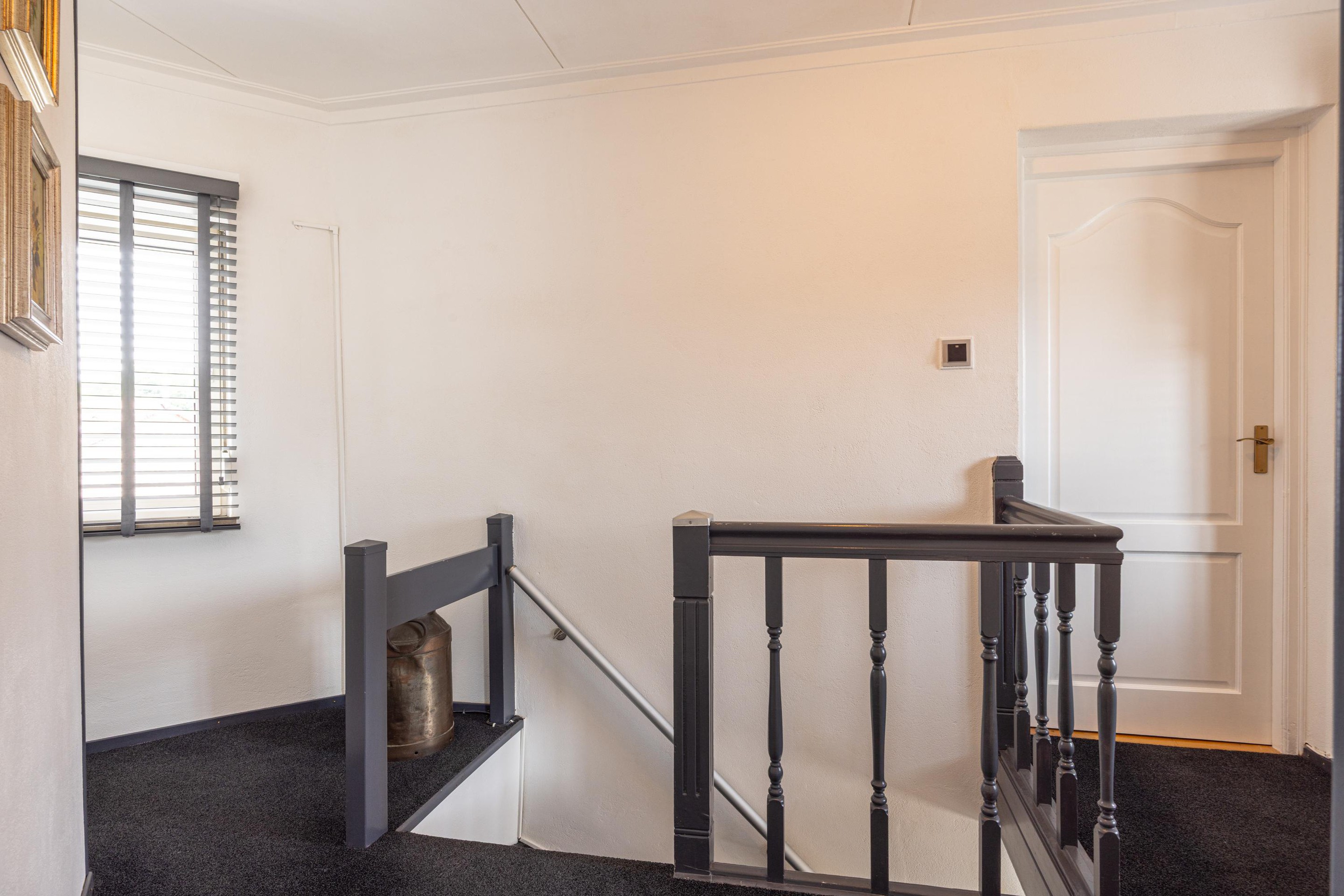 Eerste verdieping De trap vanuit de ontvangsthal brengt je naar de eerste verdieping. De overloop is afgewerkt met tapijt en beschikt over ramen aan de voor- en achterzijde, beide voorzien van rolluiken.