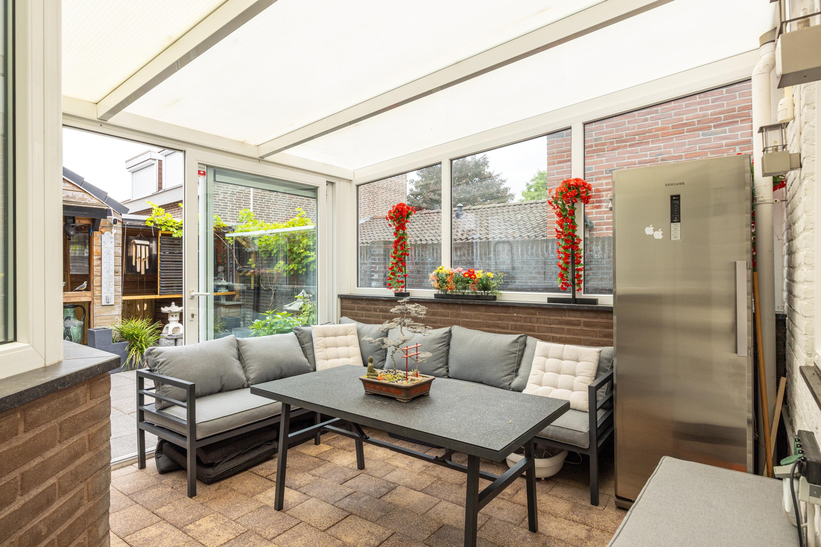 Tuin Aan de achterzijde van de woning bevindt zich een gezellige en goed onderhouden tuin. Direct grenzend aan de woning is een tuinkamer geplaatst met schuifdeur, waardoor je hier het hele jaar door prettig kunt zitten – met uitzicht op de tuin.