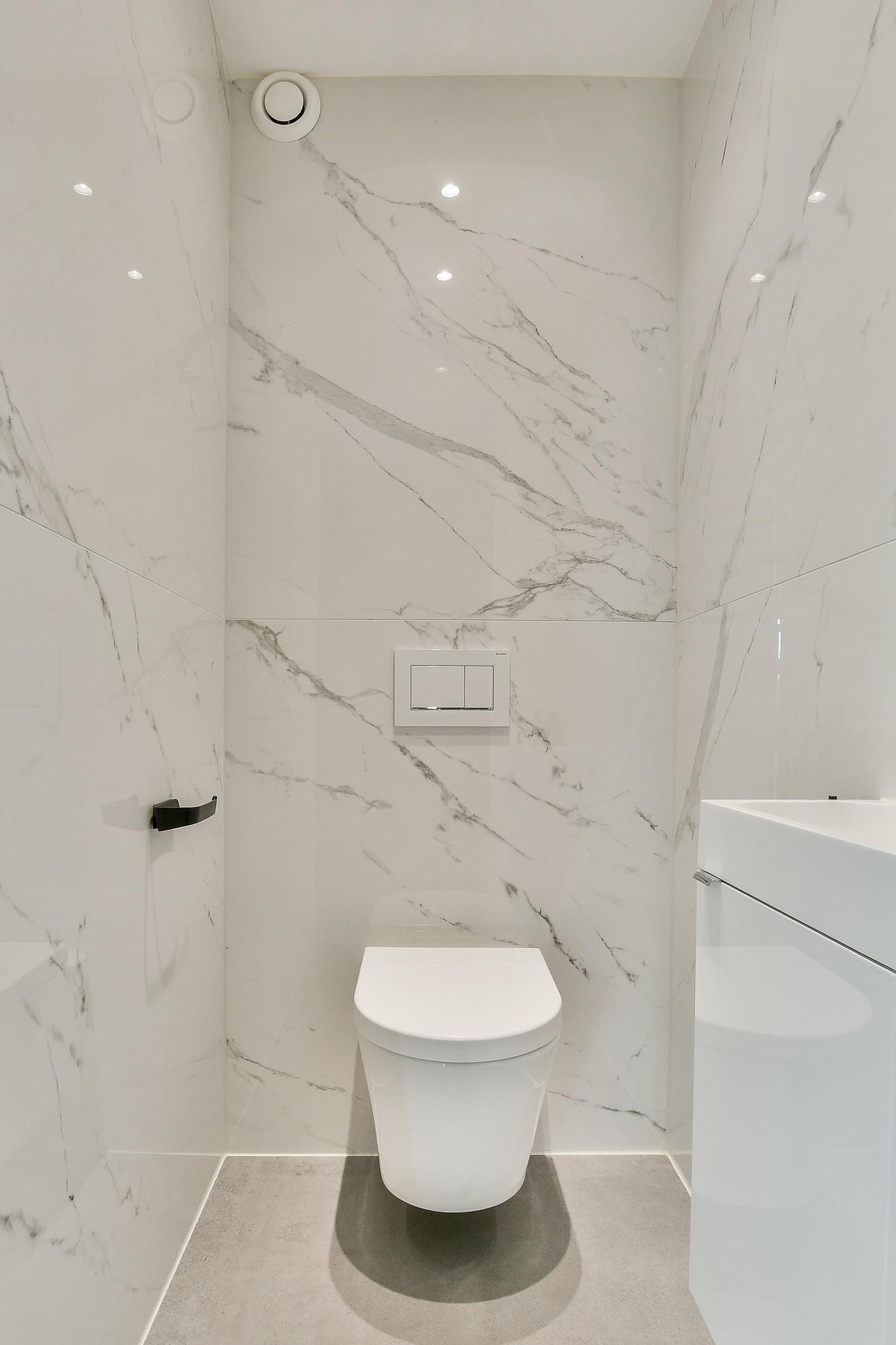 Entering at street level, you will find the carport, the entrance hall, a spacious storage room and the meter cupboard. Via the stairs, you reach the first living level, where you’ll find the spacious kitchen-diner and a generous toilet. The kitchen-diner offers ample space for a large dining table. A short staircase leads down to the atmospheric seating area. Here, the impressive 3.6-meter-high ceiling and the equally tall floor-to-ceiling sliding-door window immediately catch the eye, flooding the living room with natural light and providing direct access to the sunny southeast-facing garden.