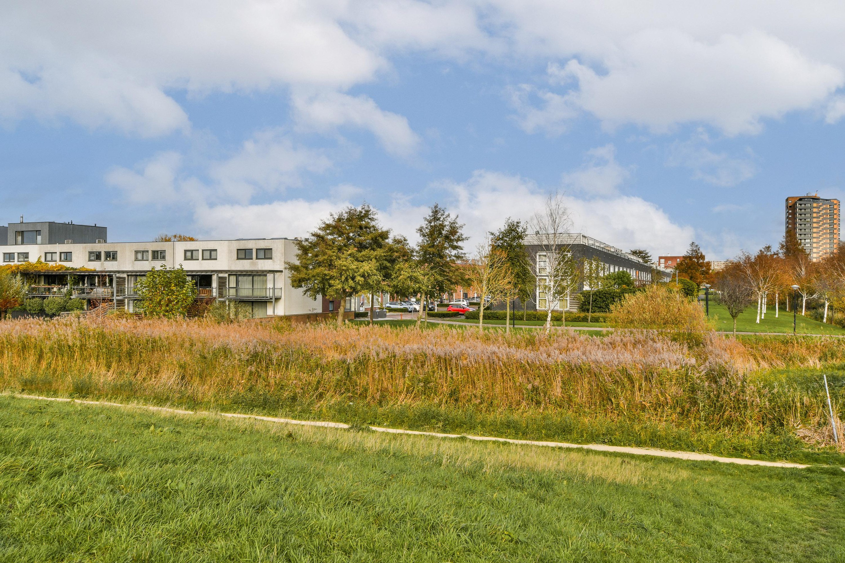 De ligging is ideaal. De omgeving is groen en rustig, met brede straten, waterpartijen en genoeg plekken om te wandelen of te ontspannen. Vanaf zowel de achterzijde als het dakterras heb je een vrij en ruimtelijk uitzicht, waardoor je overal in huis geniet van veel licht, privacy en een open gevoel.