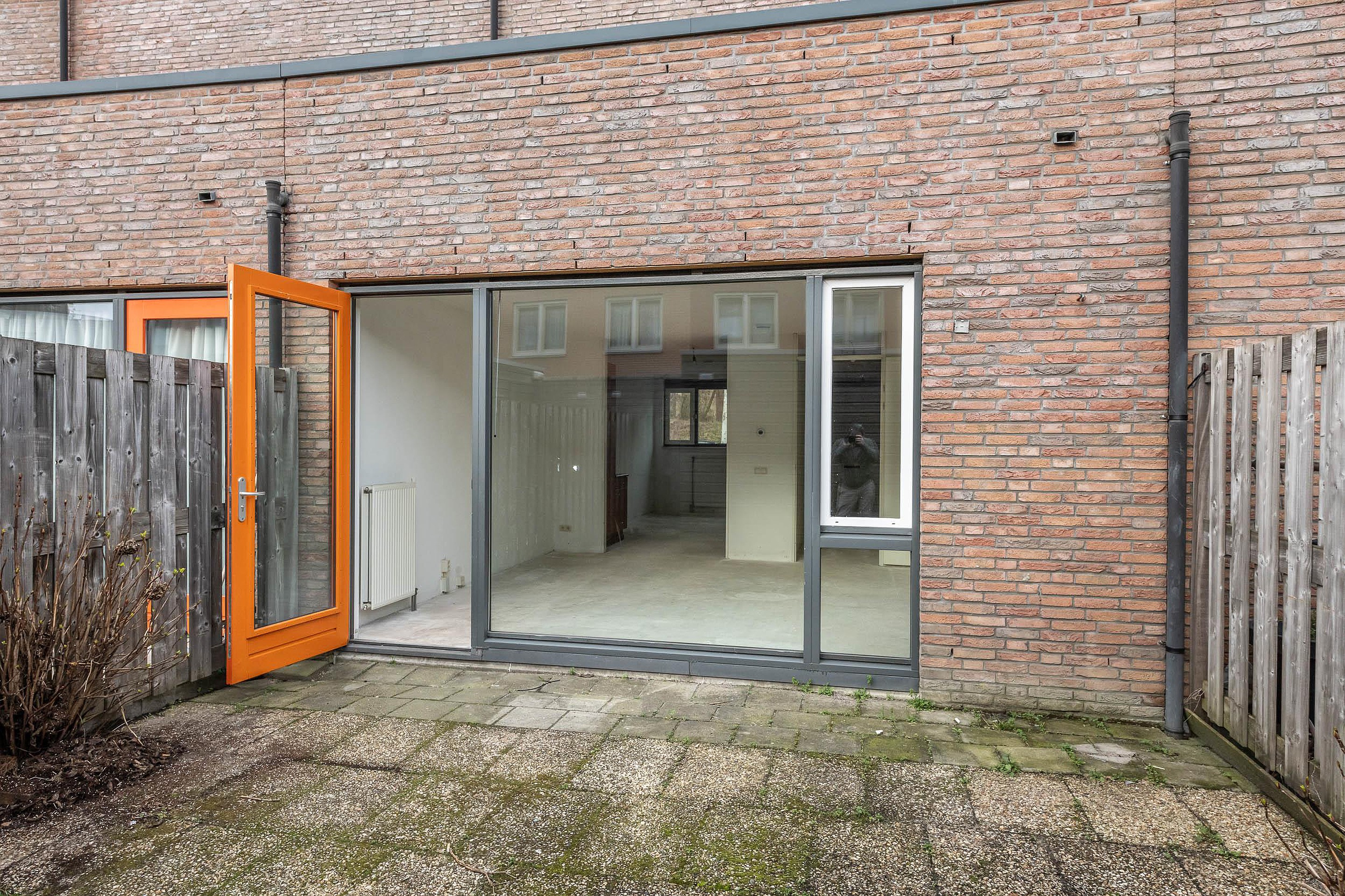 De achtertuin, ongeveer 7 meter diep, ligt gunstig op het zuidwesten en is voorzien van een berging en afgesloten achterom, exclusief voor bewoners. Ook aan de voorzijde is een kleine tuin aanwezig.