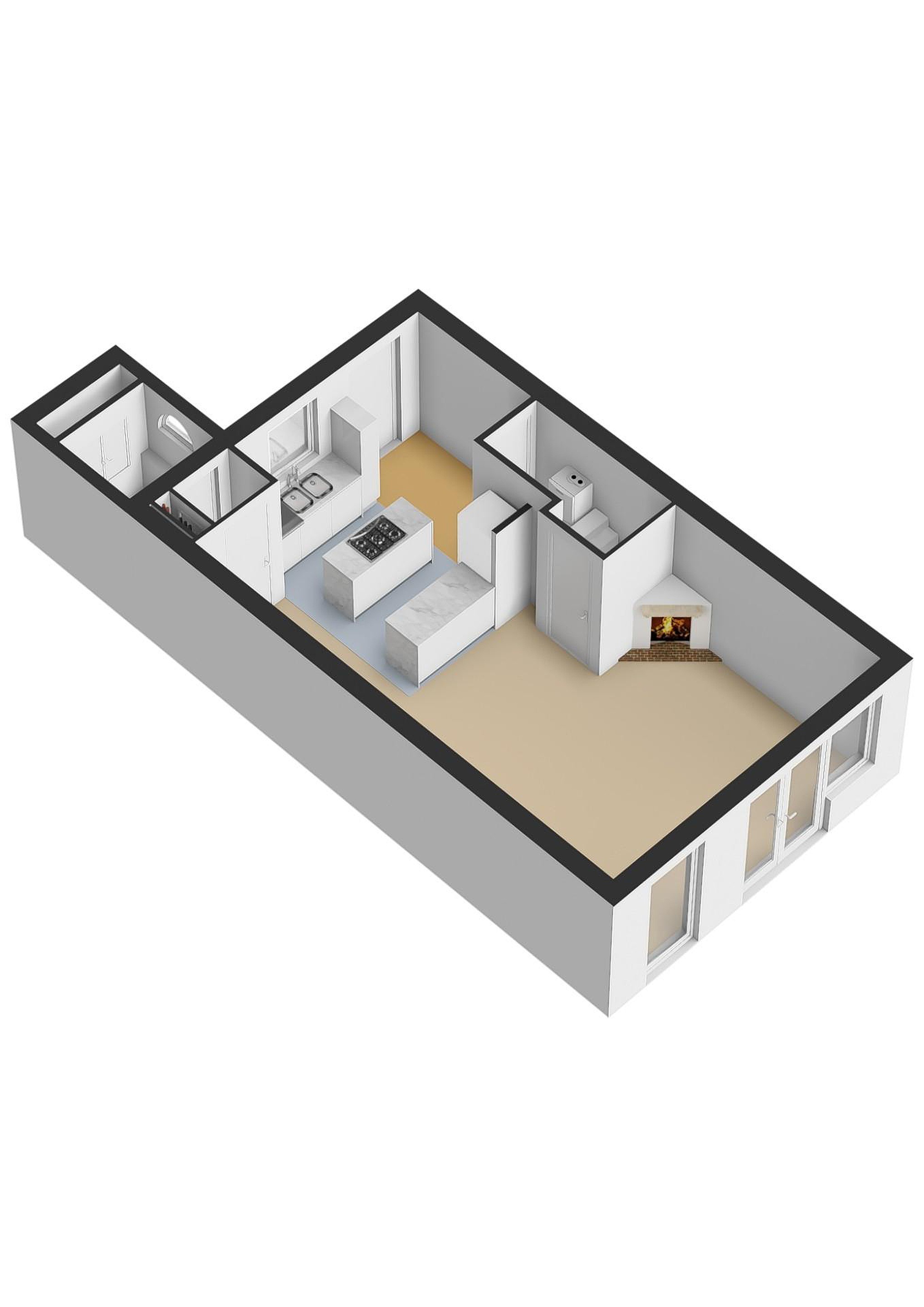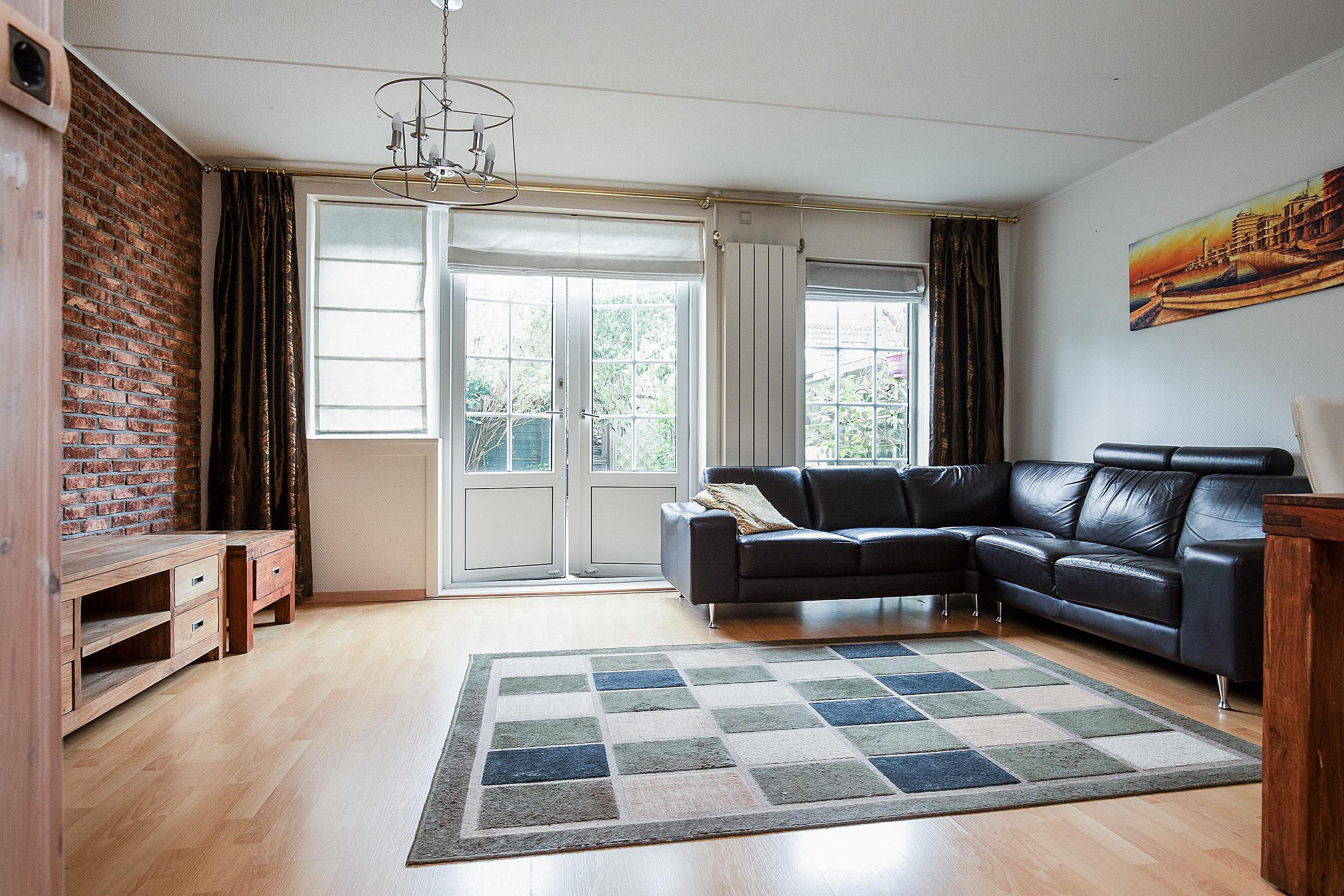 Bij binnenkomst komt u direct in de open keuken, die eenvoudig maar verzorgd is uitgevoerd. De keuken beschikt over de nodige inbouwapparatuur en een praktisch kookeiland met een 5-pits gasfornuis en RVS-afzuigunit. Het verlaagde plafond met inbouwspots zorgt voor een moderne uitstraling. Vanuit de keuken bereikt u de tussenhal met de meterkast en een separaat toilet. De tuingerichte woonkamer is licht en comfortabel en is voorzien van openslaande kunststof deuren naar de onderhoudsvriendelijke achtertuin. Een elektrische open haard zorgt voor extra sfeer.