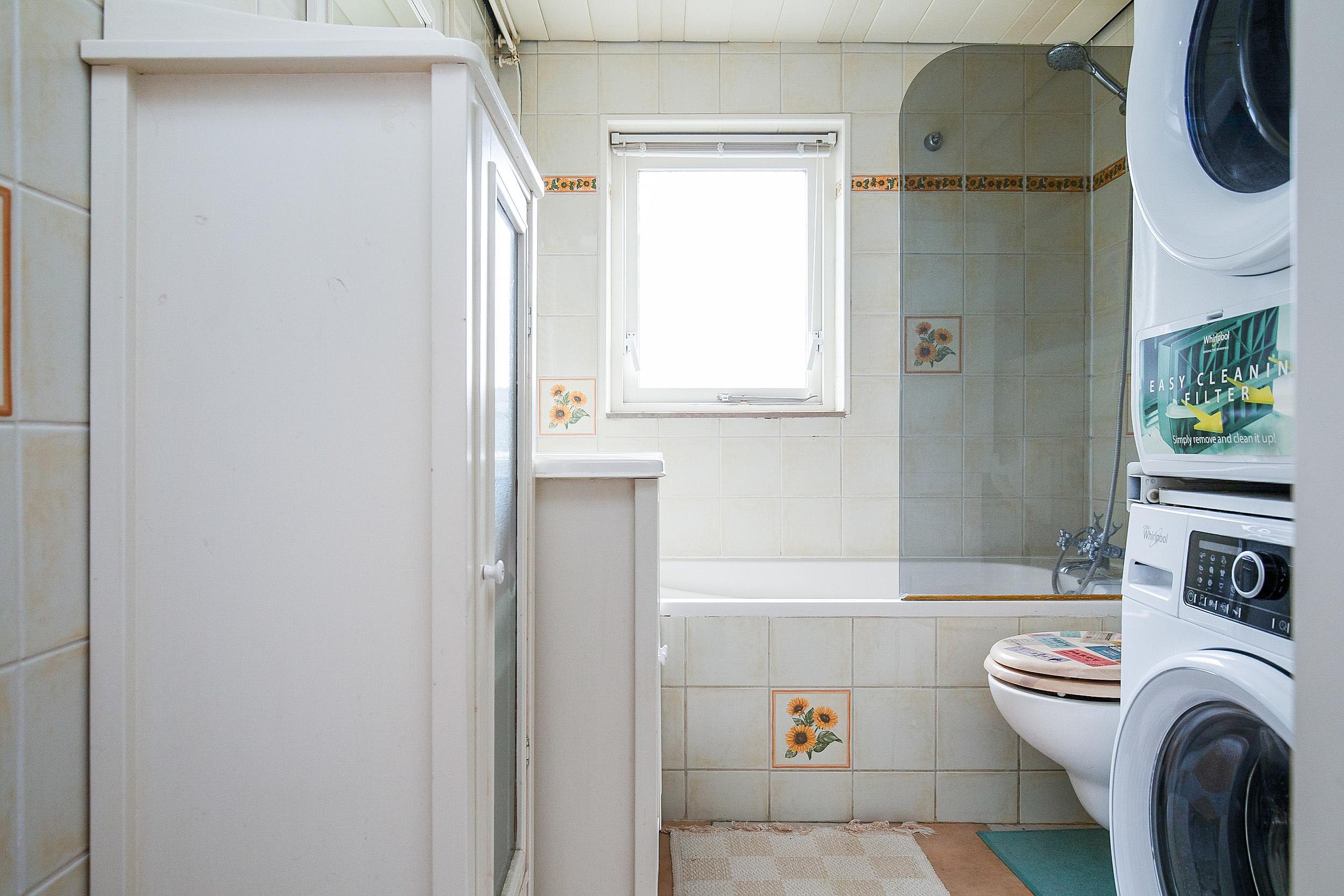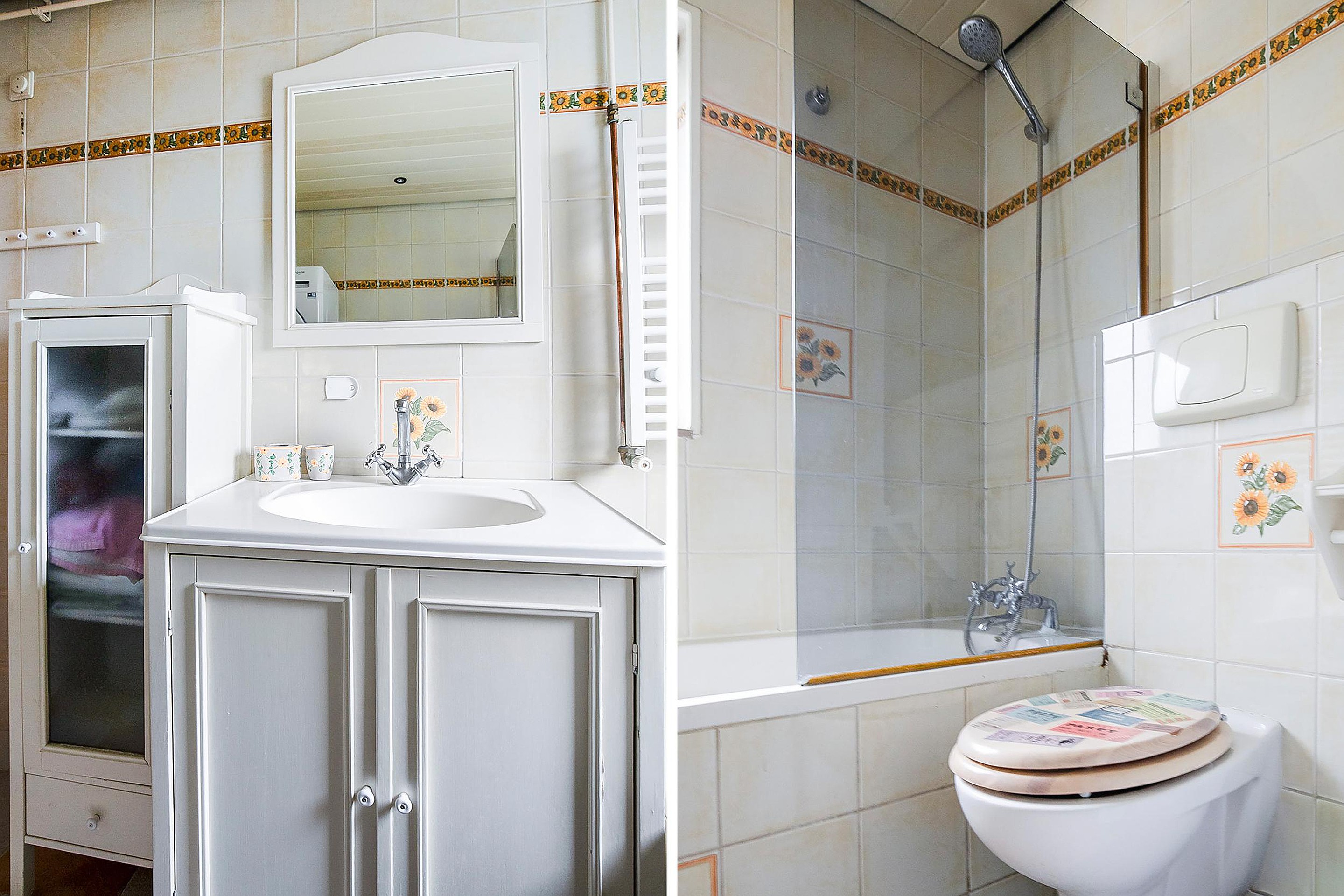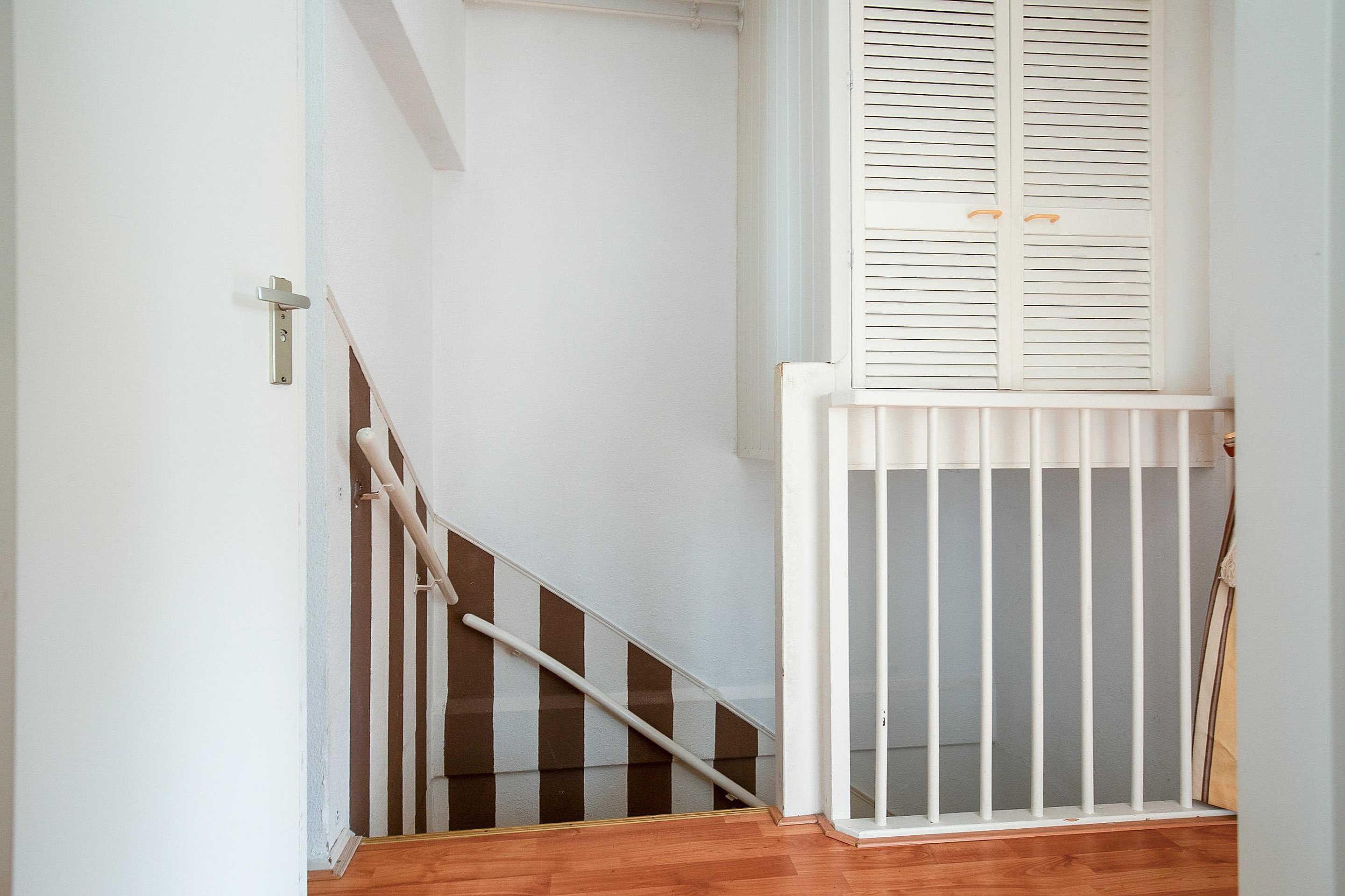 Op de eerste verdieping bevinden zich twee goed bemeten slaapkamers: één aan de voorzijde en een aan de achterzijde(vv 2 dakramen), waarbij de achterkamer is uitgerust met twee dakramen. De badkamer is compleet ingericht met een ligbad met douche, een tweede toilet, een wastafelmeubel en aansluitingen voor de wasmachine en droger.