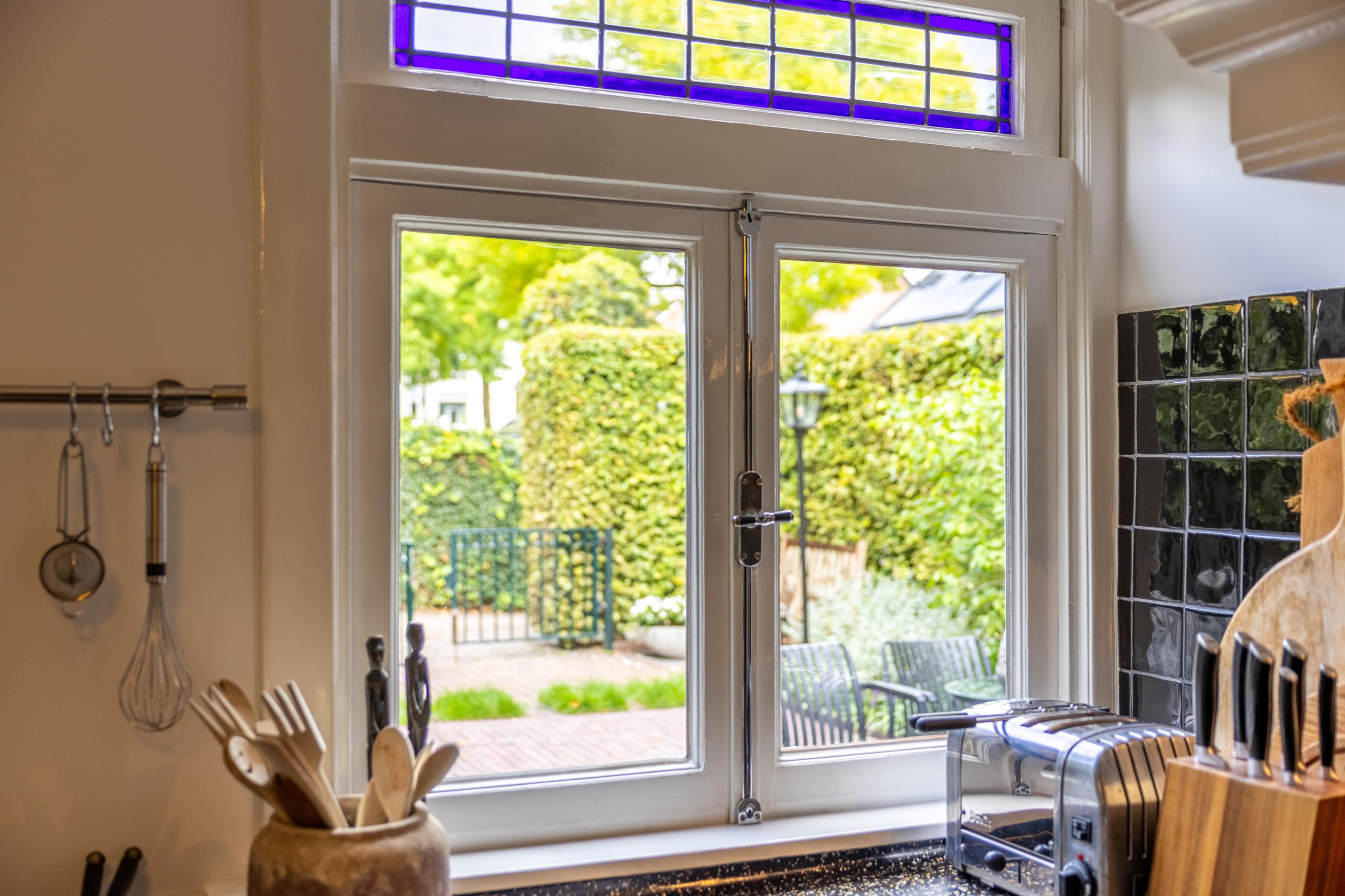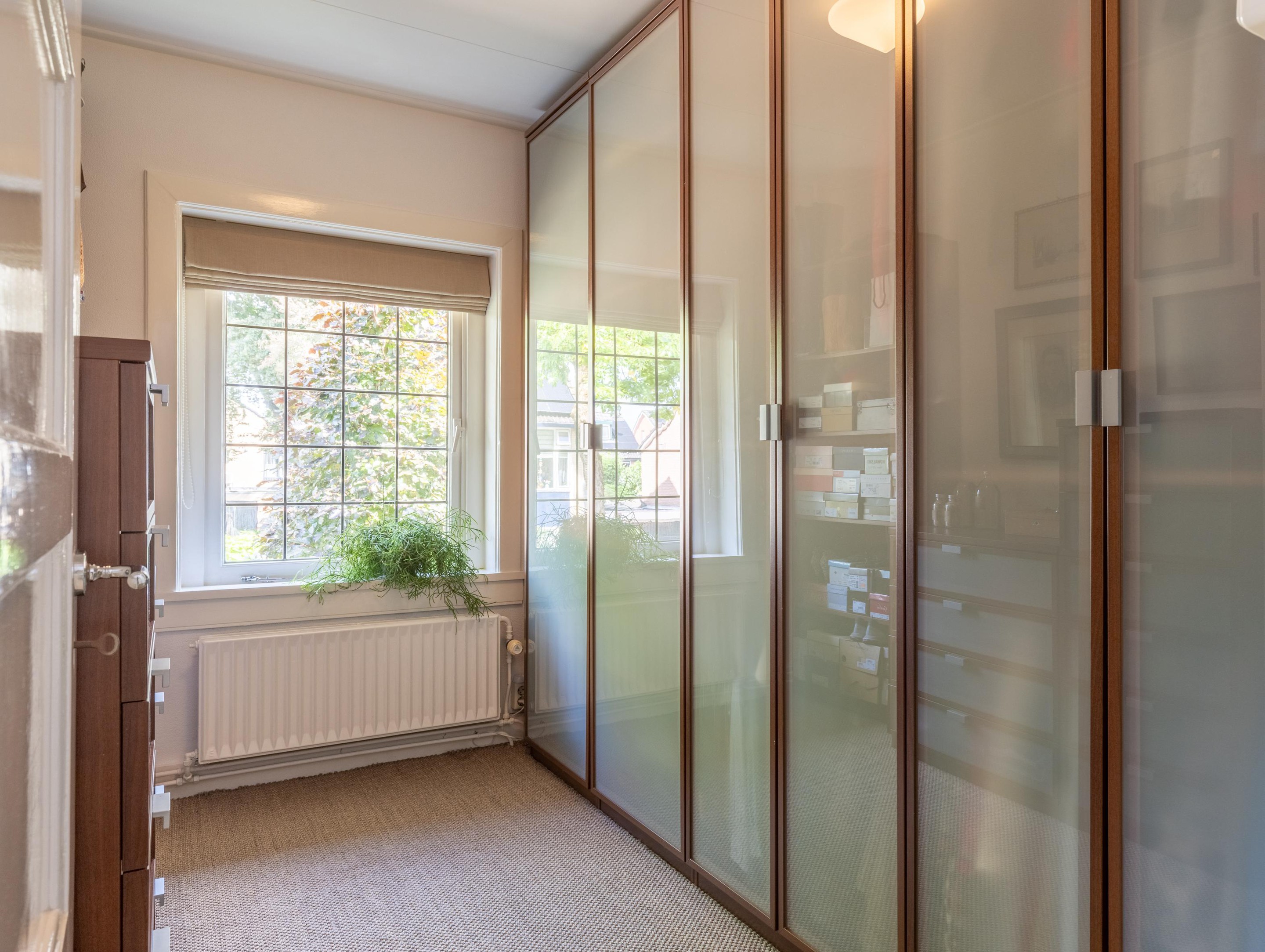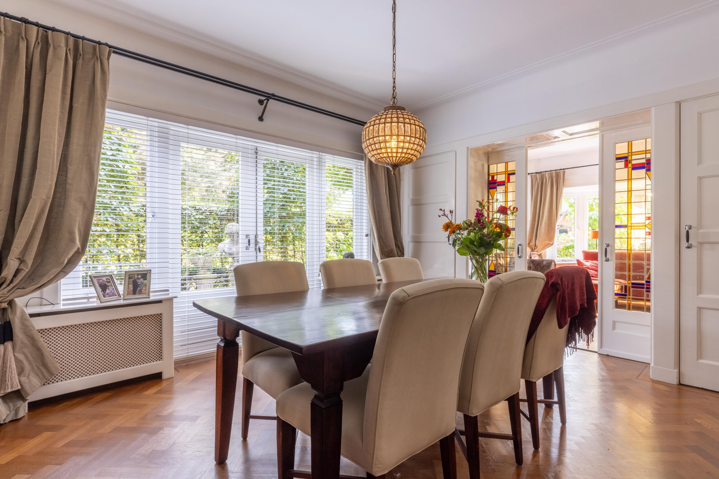 Al bij de eerste aanblik vallen de typische jaren ’30 kenmerken op: het markante overstek, de sfeervolle erker en de glas-in-loodramen. Binnen gaat de charme naadloos verder. In de hal vindt u de prachtige granito vloer en toegang tot de eetkamer met vaste kasten, paneeldeuren en een stijlvolle visgraat parketvloer. De openslaande deuren zorgen voor veel licht en een vloeiende verbinding met de tuin.
