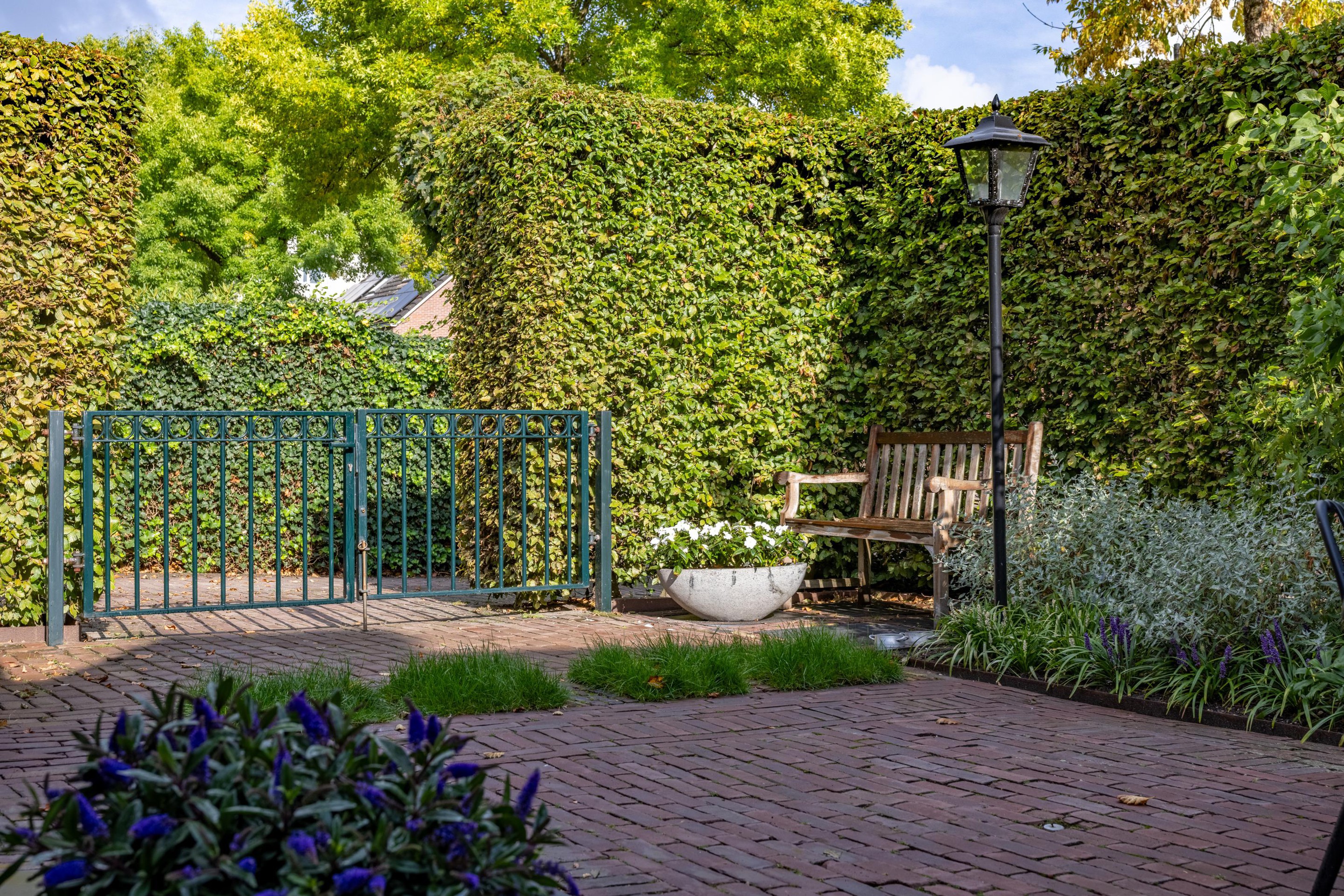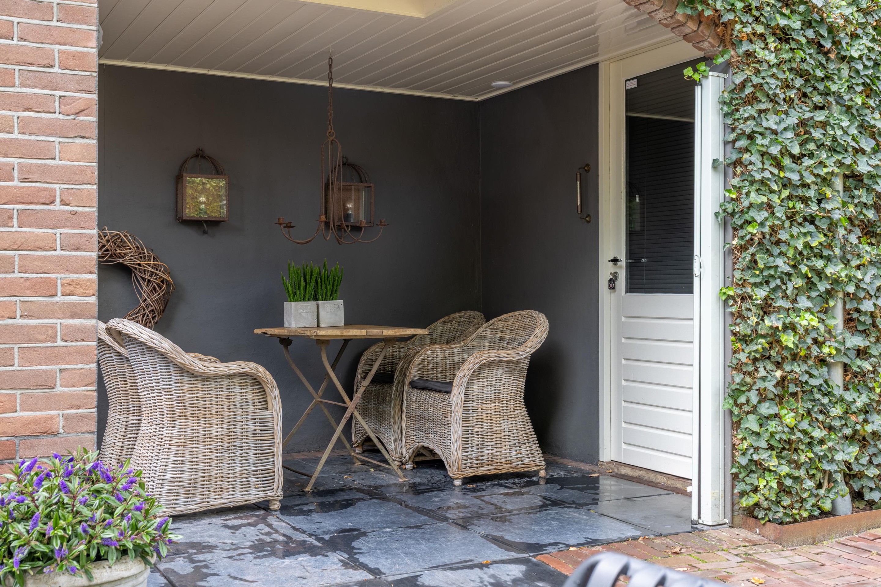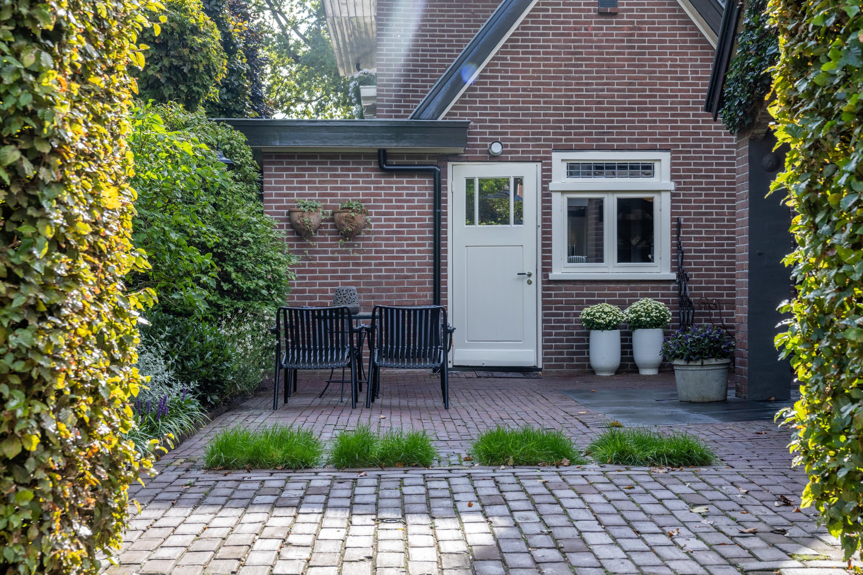 Aan de achterzijde bevindt zich de uitbouw, met een toilet, zij-entree en toegang tot de stijlvolle keuken. Deze is voorzien van een granieten aanrechtblad, diverse inbouwapparatuur en biedt toegang tot de praktische provisiekelder.