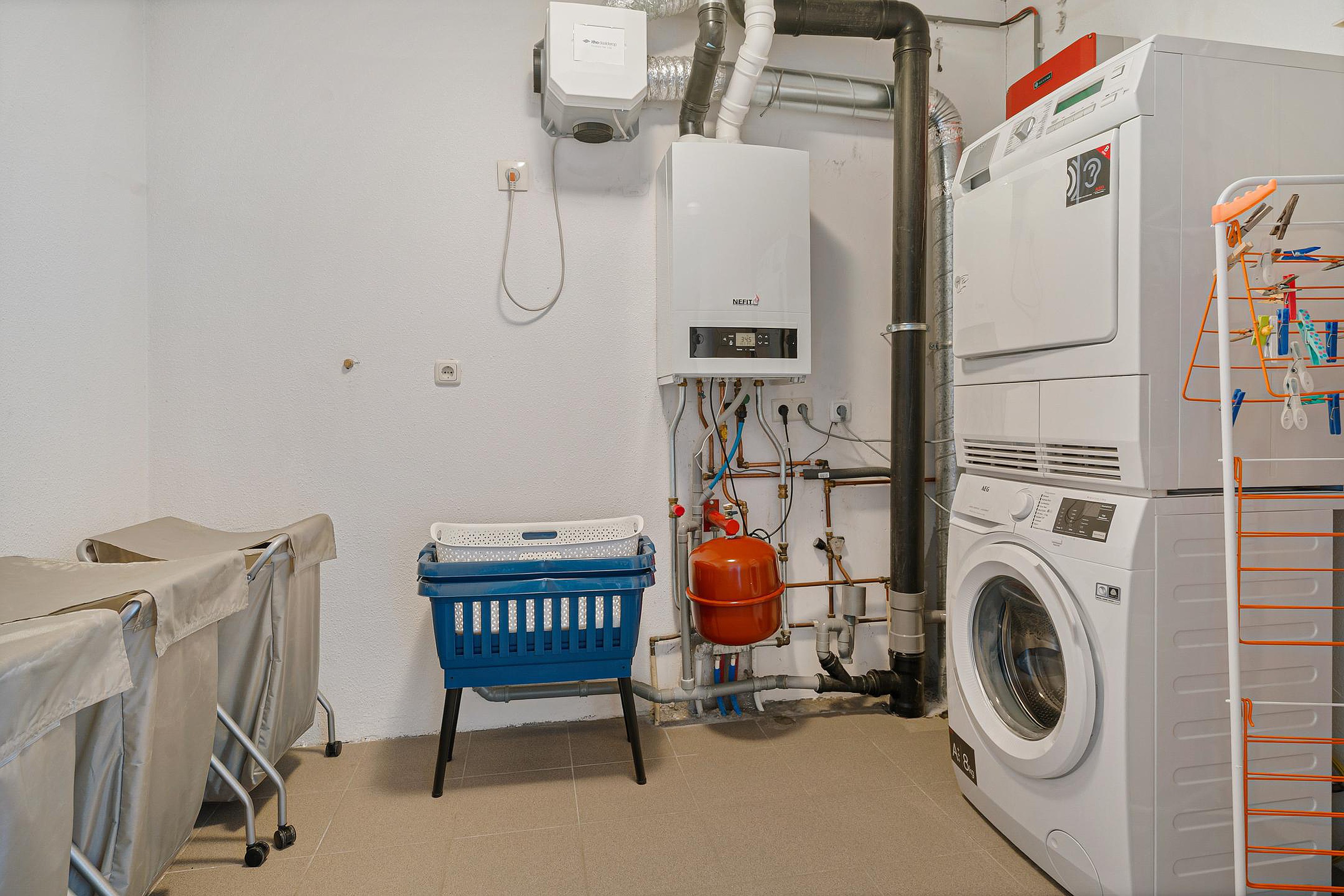 Dankzij de kubusvormige bouw biedt ook de tweede verdieping volop ruimte. Hier vind je nog eens twee riante slaapkamers én een aparte berg-/wasruimte met opstelling voor wasmachine en cv-ketel.
