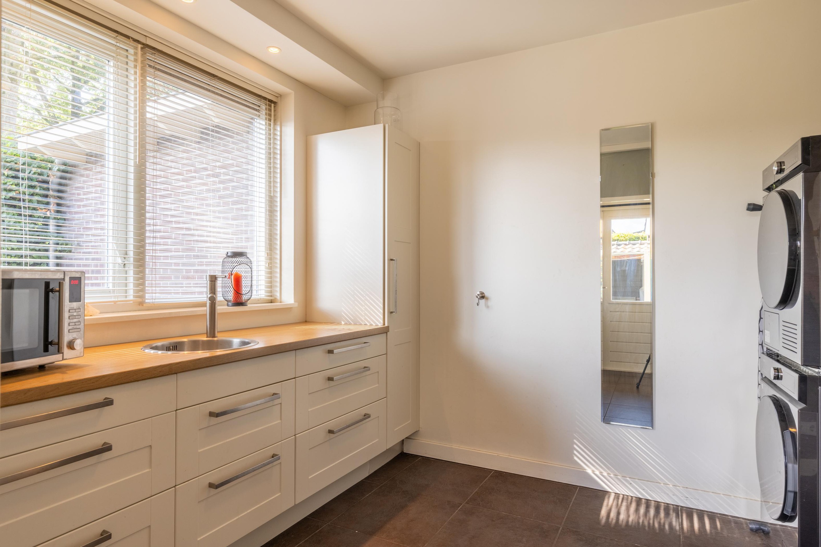 Grote bijkeuken/waskamer met aansluitingen en extra bergruimte.