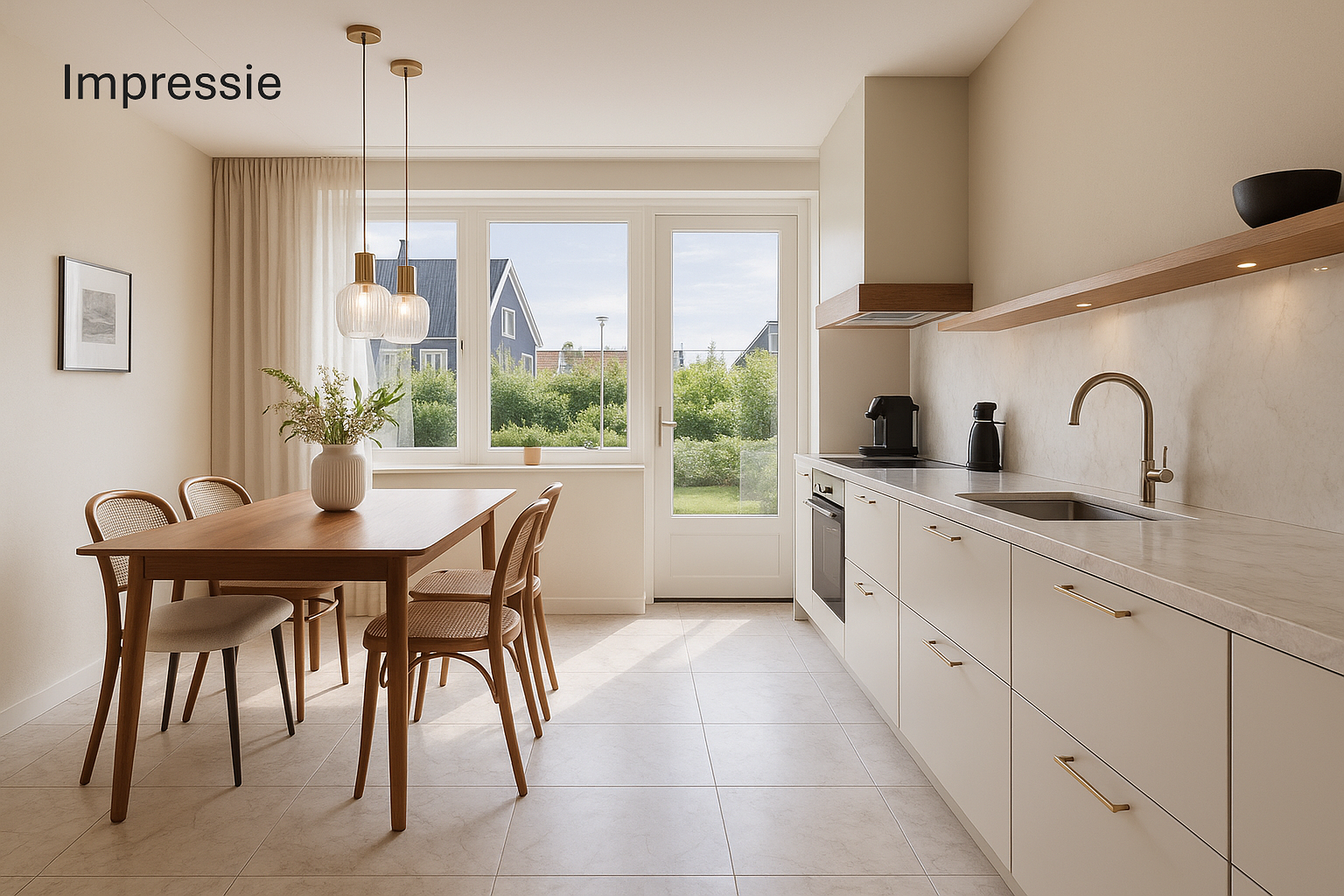 Bij binnenkomst valt direct de ruime en lichte hal op, voorzien van een bordestrap en veel lichtinval. Vanuit de hal bereikt u de royale woonkamer met grote raampartijen en uitzicht op de tuin. De aparte woonkeuken is voorzien van diverse inbouwapparatuur en biedt eveneens toegang tot de tuin.