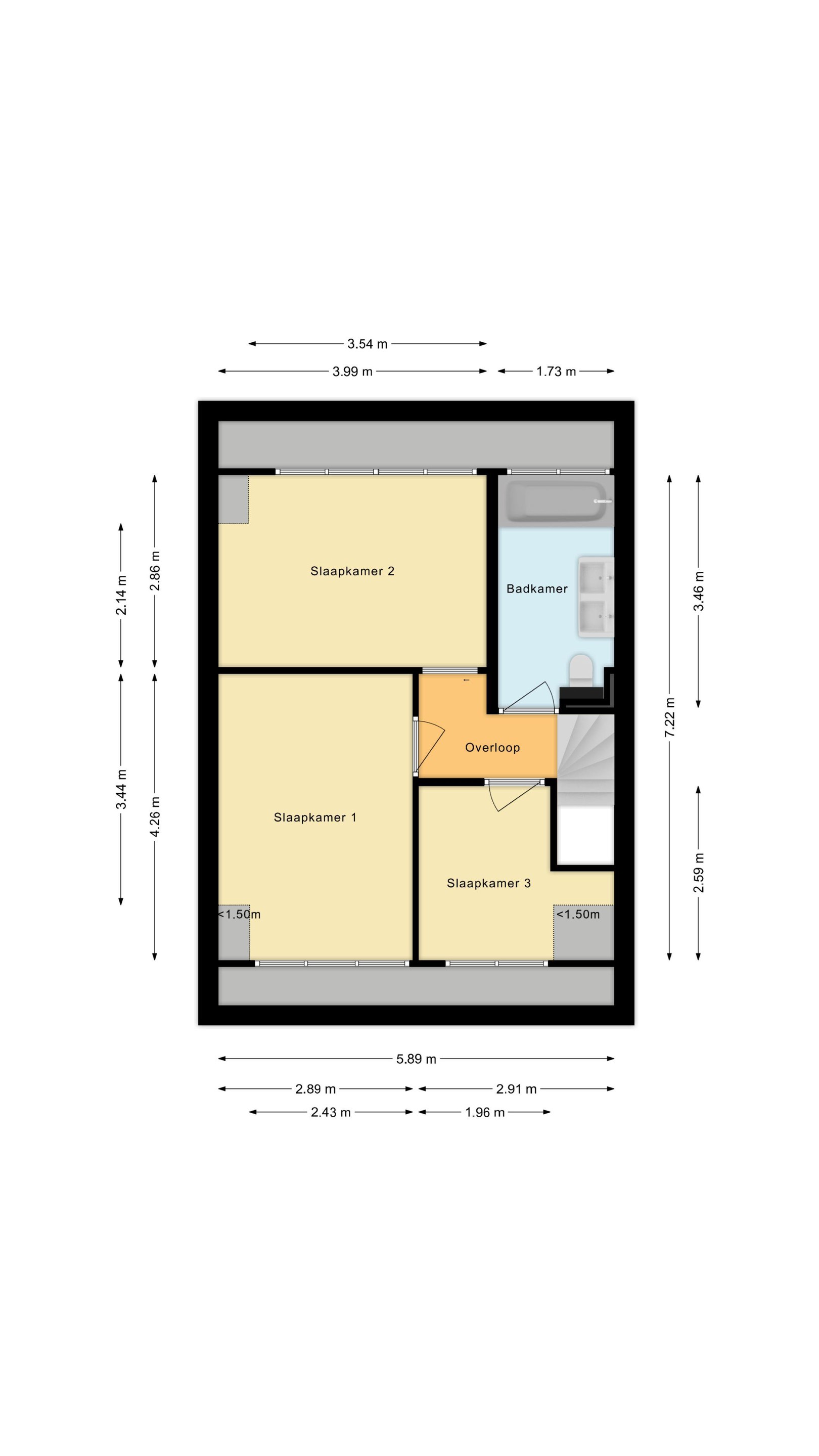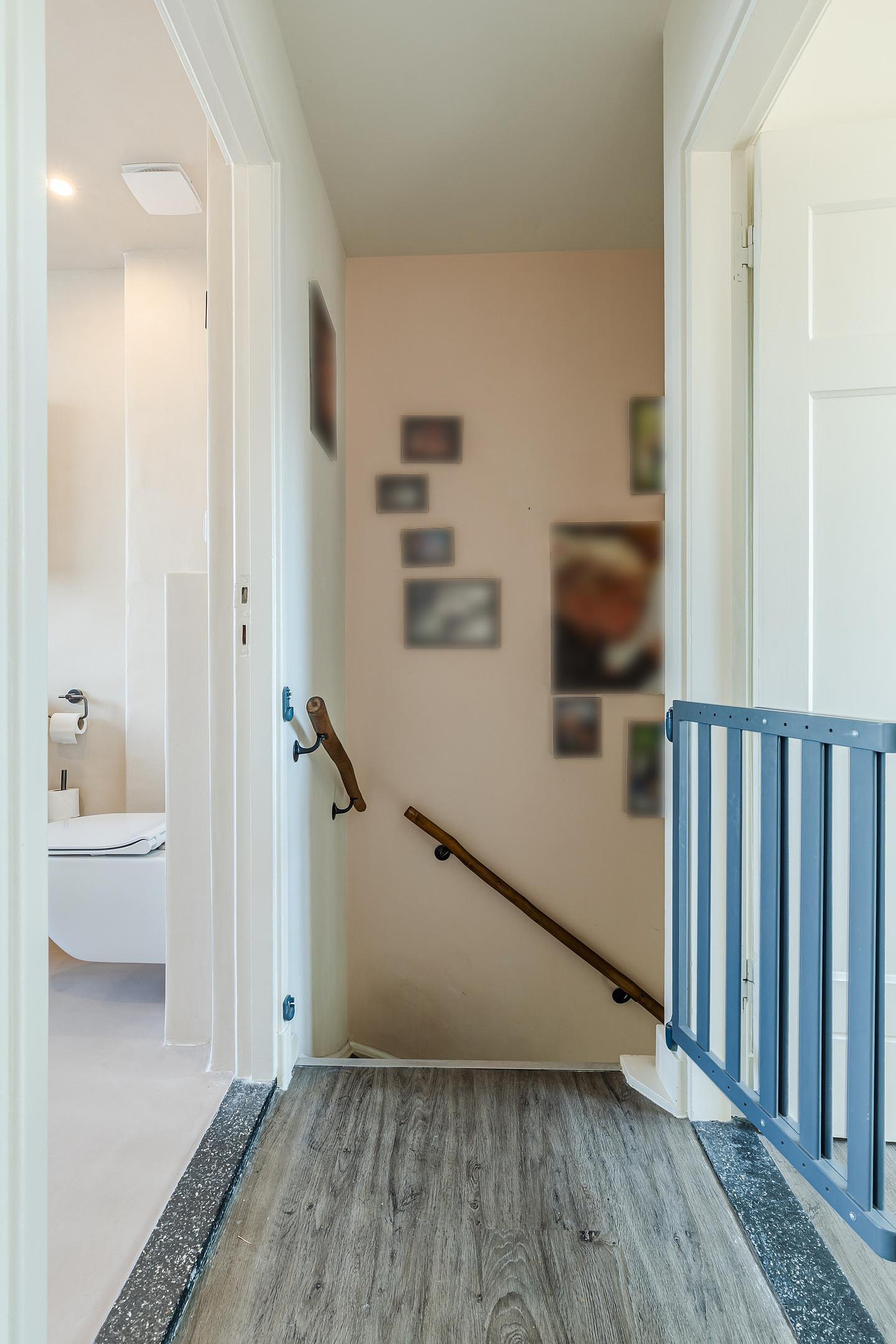 De overloop geeft toegang tot 3 slaapkamers en de badkamer.