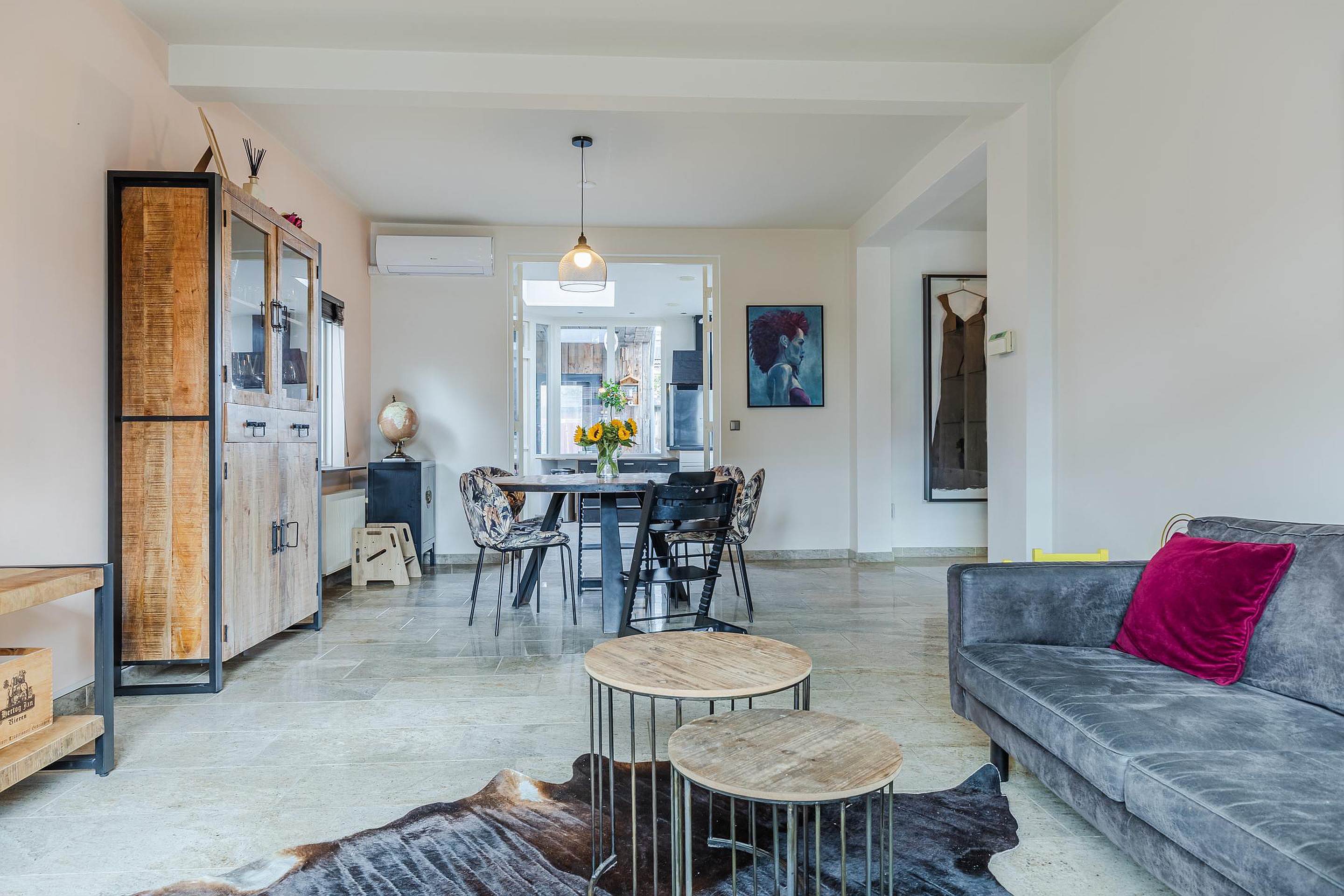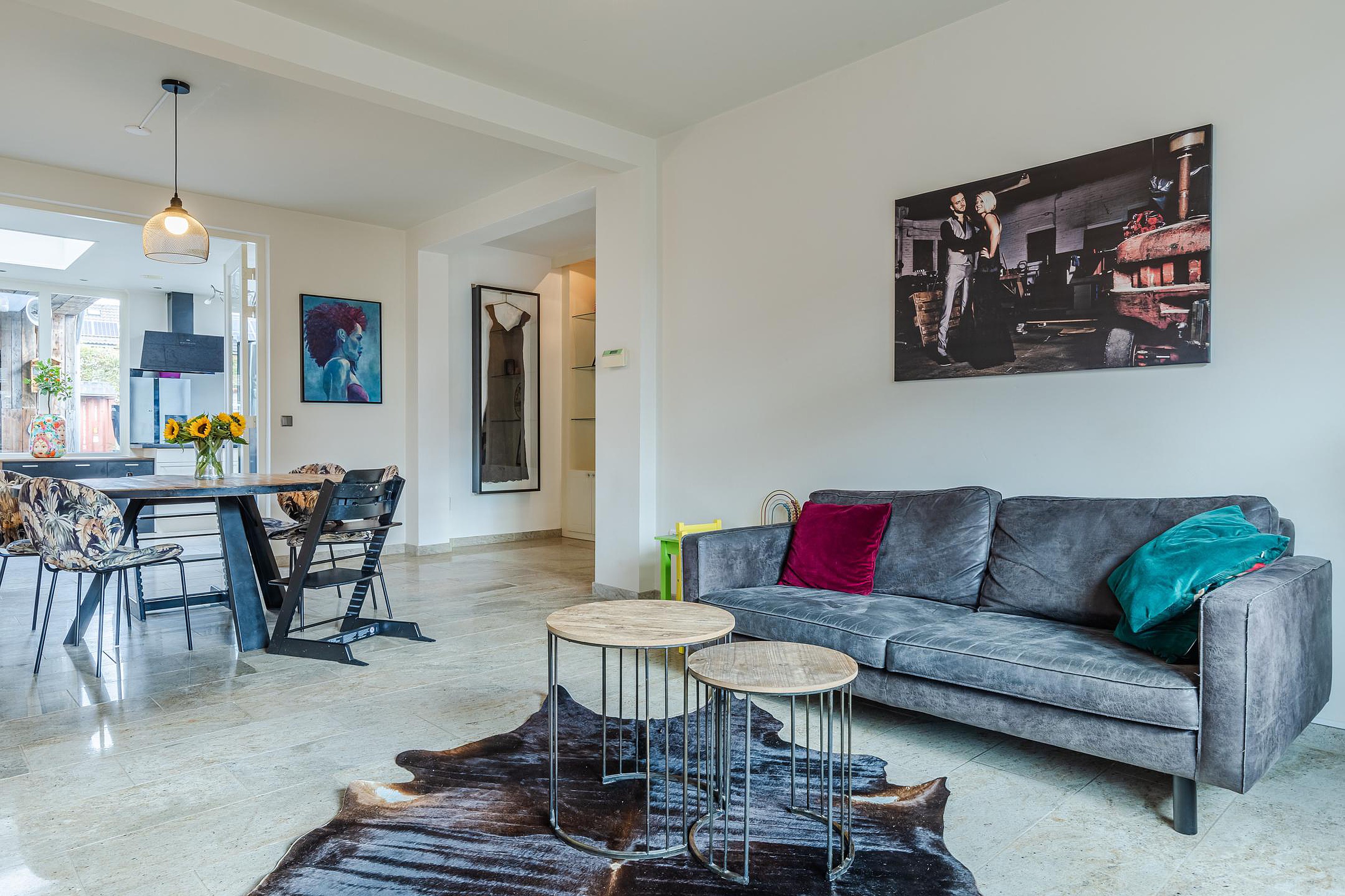 De woonkamer (ca. 29m2) heeft aan de voorzijde een ruime zithoek en aan de achterzijde dubbele glazen toegangsdeuren naar de royale uitgebouwde keuken. De woonkamer heeft een vaste kastenwand en vensters aan de zijmuur wat zorgt voor extra lichtinval.