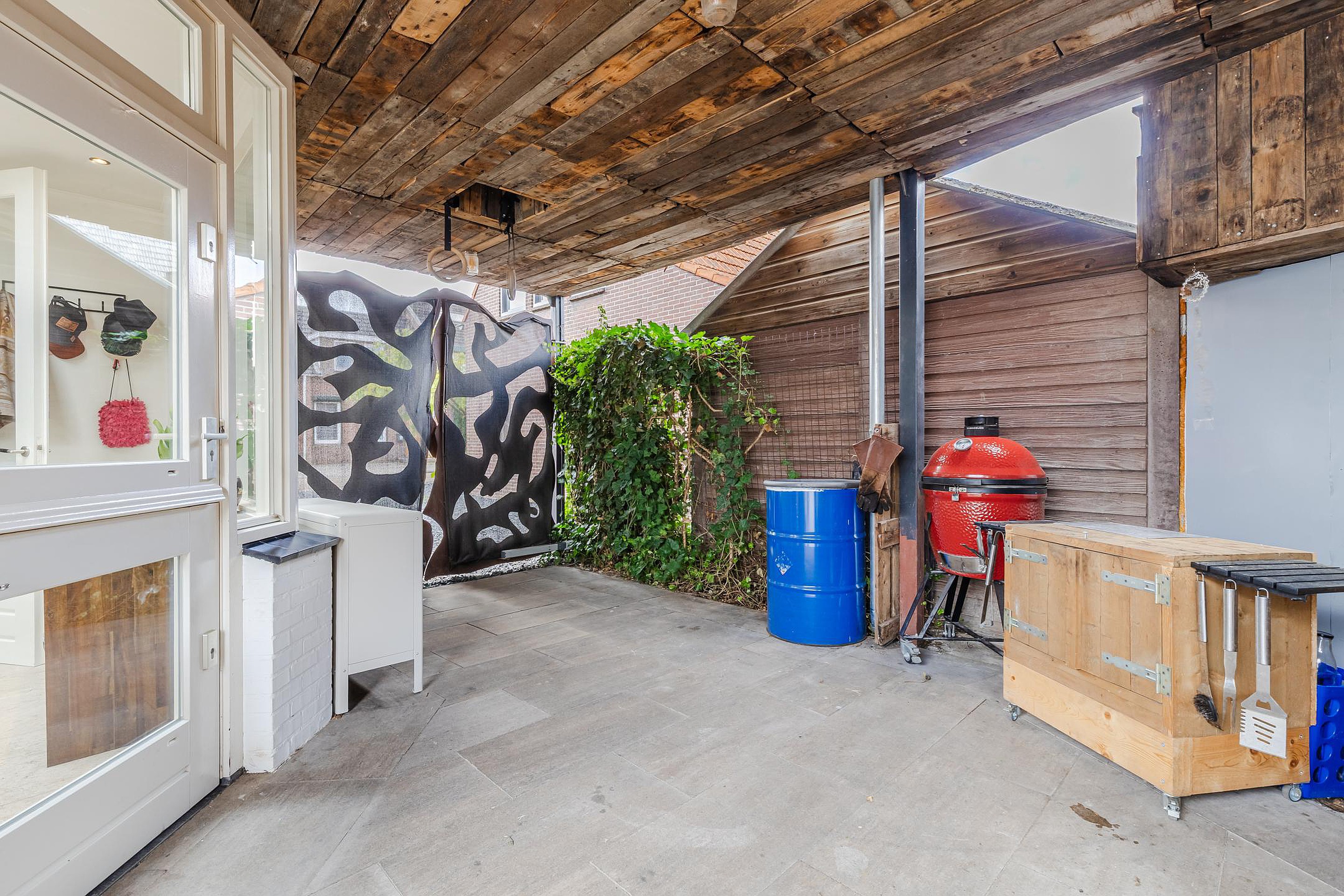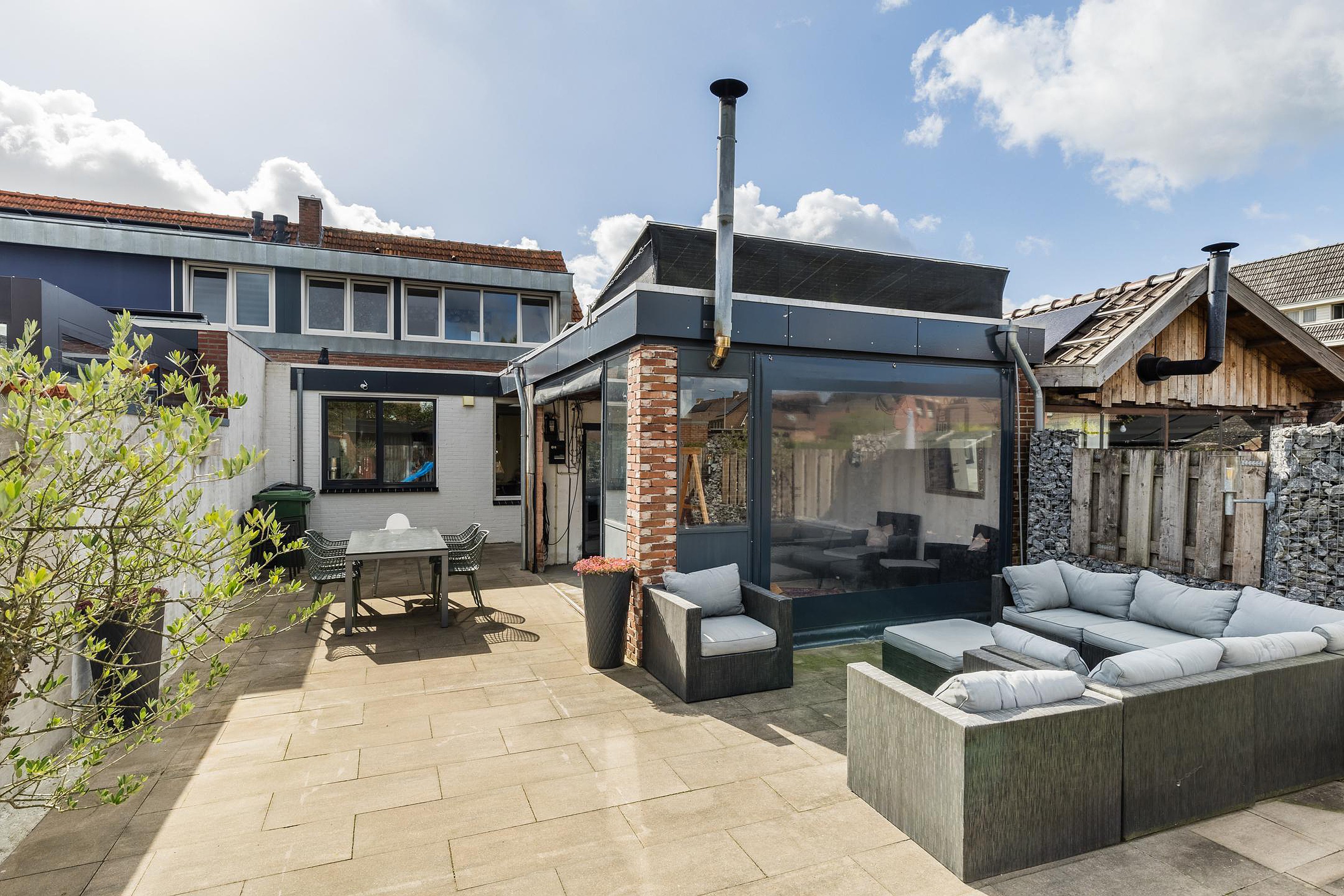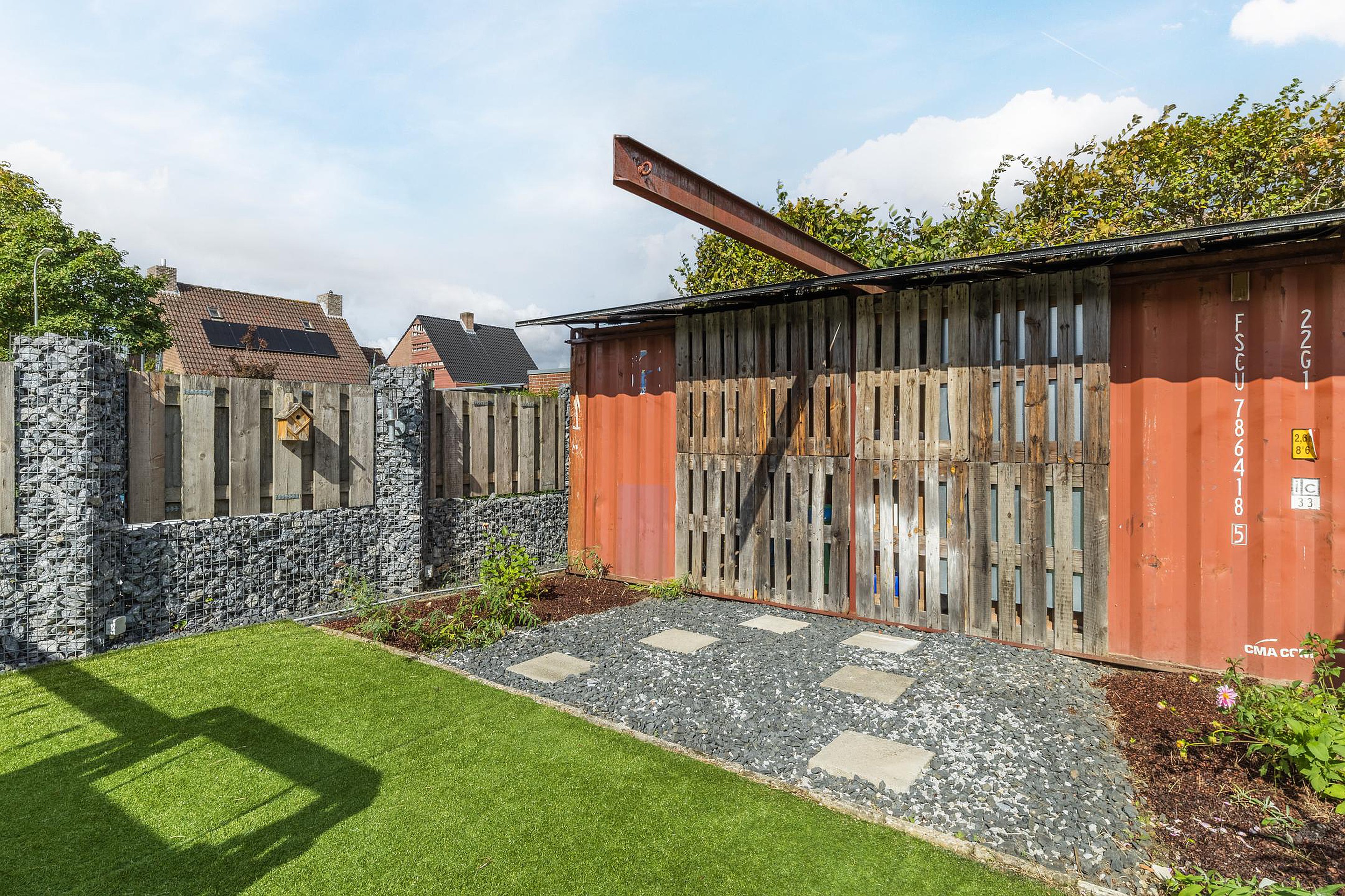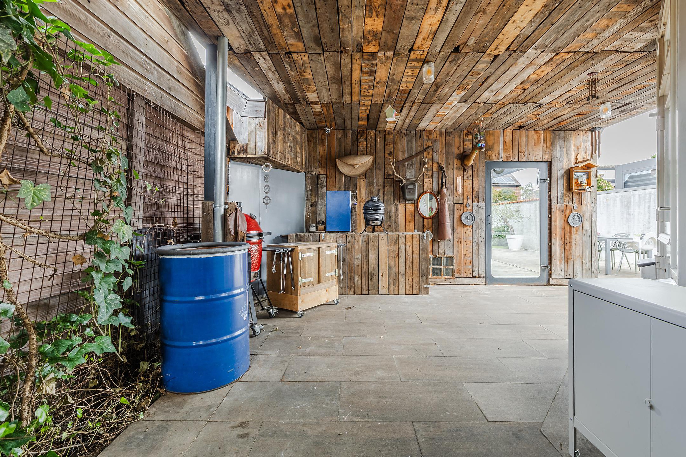 De voortuin is beklinkerd en voorzien van Cortenstaal borders met beplanting. Aan de zijkant geeft de oprit toegang tot de dubbele poort naar de achtertuin. Aan de woning ligt een overdekt terras (ca. 17m2) en een buitenverblijf (ca. 22m2) met jacuzzi en buitenkachel. De wanden van het buitenverblijf kunnen gesloten worden. Verder heeft de tuin een kunstgazon en aan het eind van de tuin ligt een zeecontainer (ca. 14m2) omgebouwd tot grote opslagruimte. De tuin ontvangt veel zon heeft een vrije achterom en bied veel privacy. Er bestaat de mogelijkheid om de auto overdekt binnen te zetten.