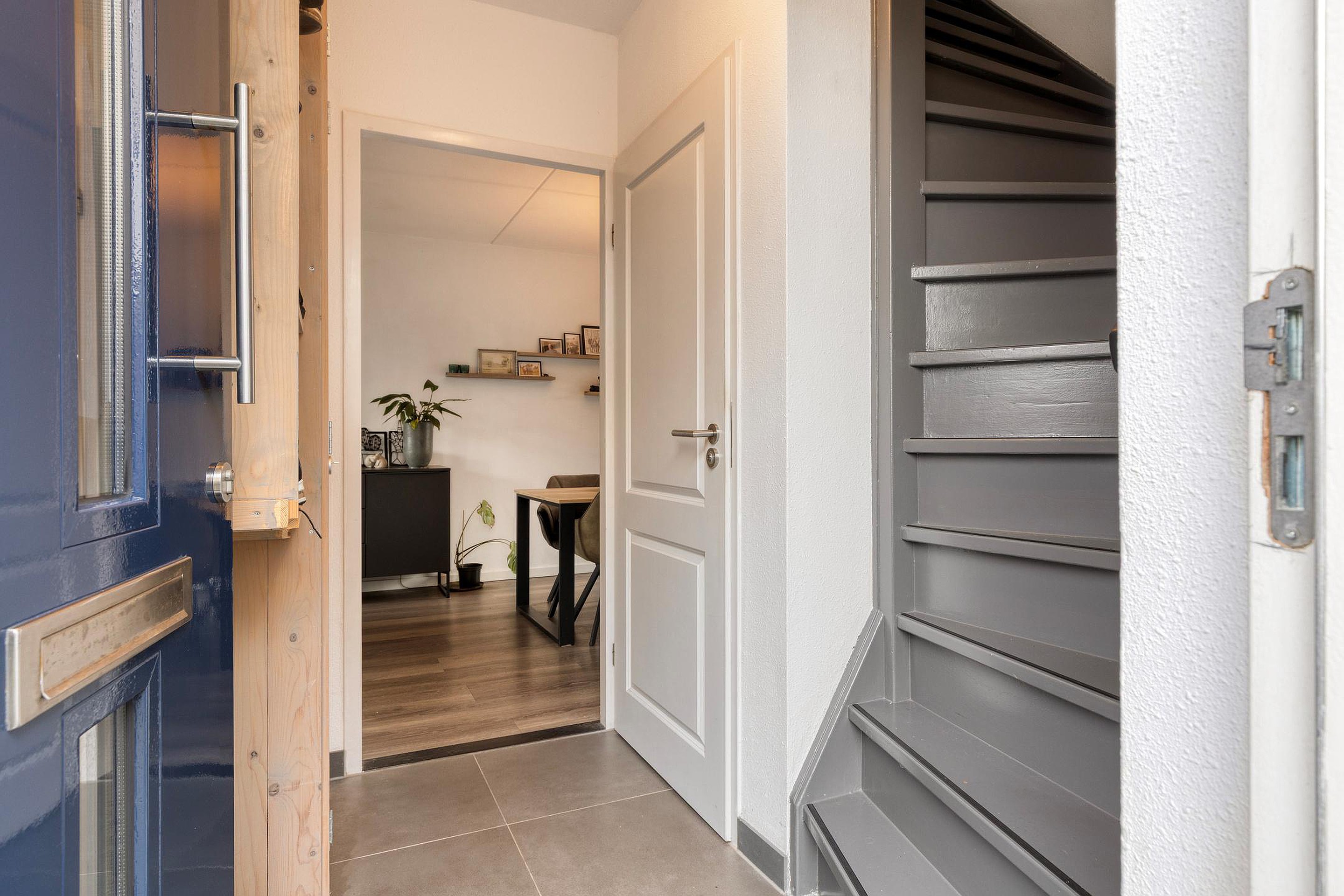 U komt de woning binnen in de hal met meterkast, trapopgang en toilet. Het toilet is netjes uitgevoerd met een hangtoilet en fonteintje.