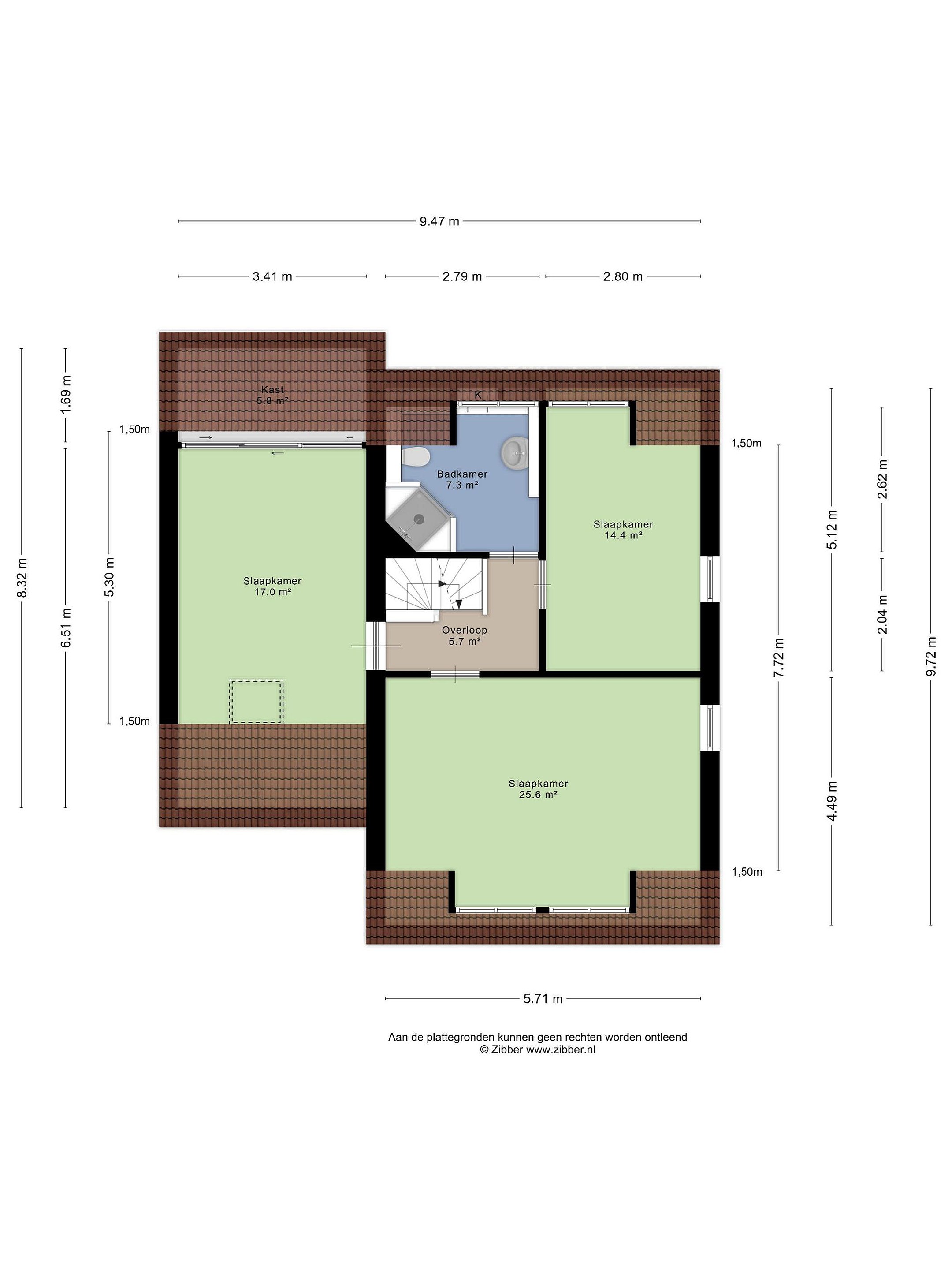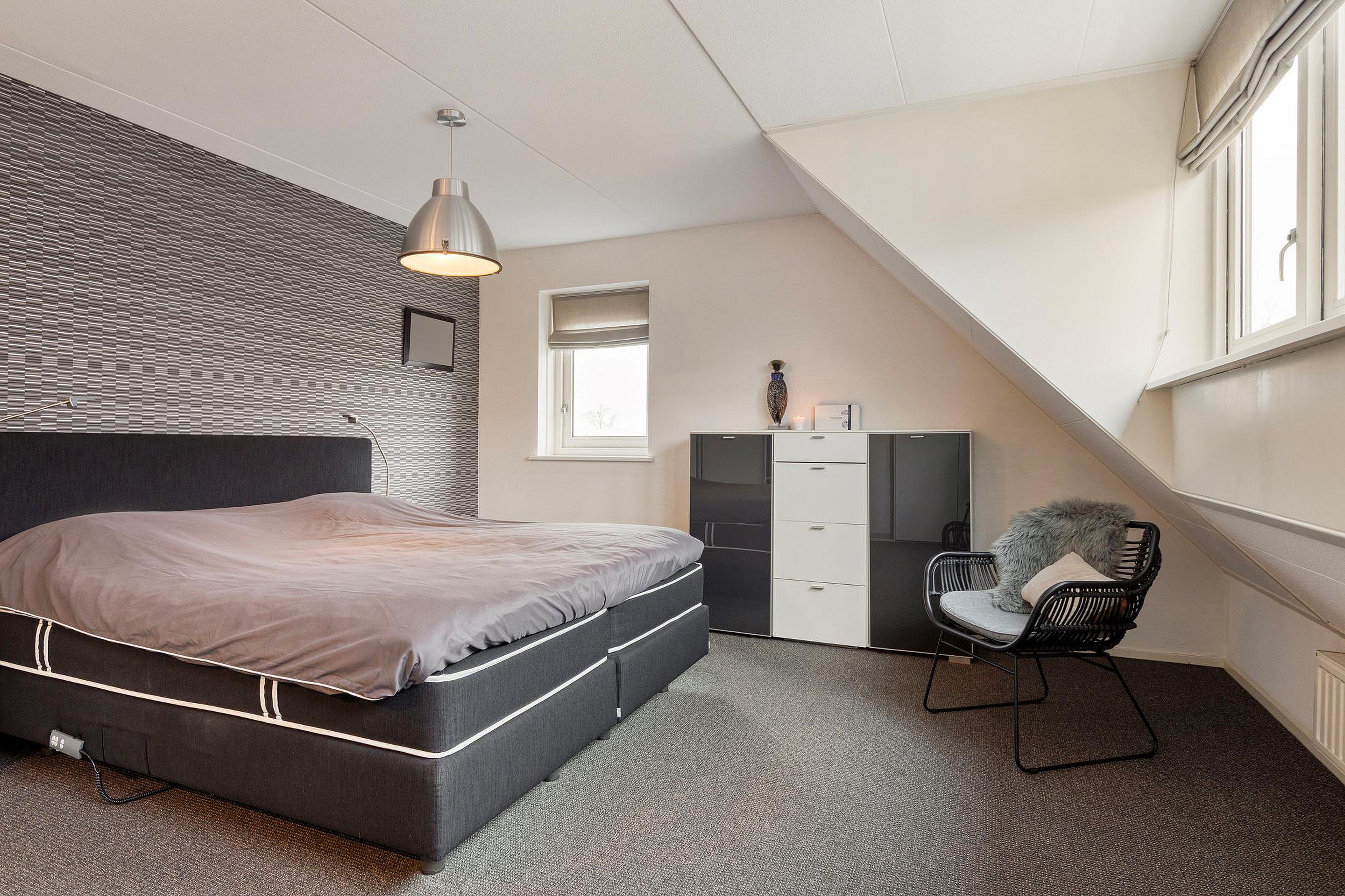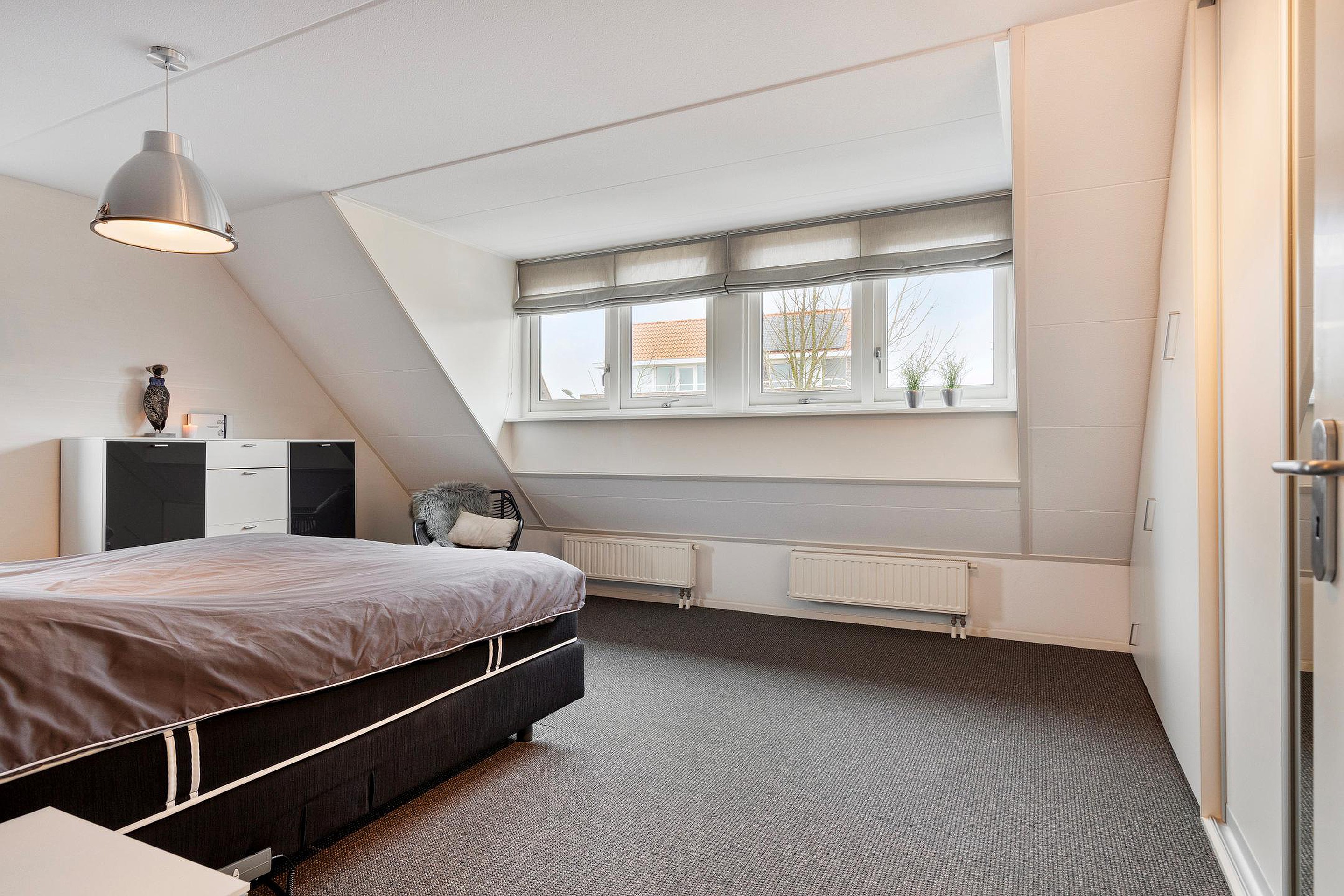 De masterbedroom ligt aan de voorzijde van de woning, heeft een oppervlakte van maar liefst circa 25,6 m2 en beschikt over vaste kastruimte. De overige slaapkamers hebben een oppervlakte van circa 17 m2 en circa 14,4 m2. De nette badkamer heeft een oppervlakte van circa 7,3 m2 en is voorzien van een douchehoek, toilet, wastafel en vaste bergruimte.