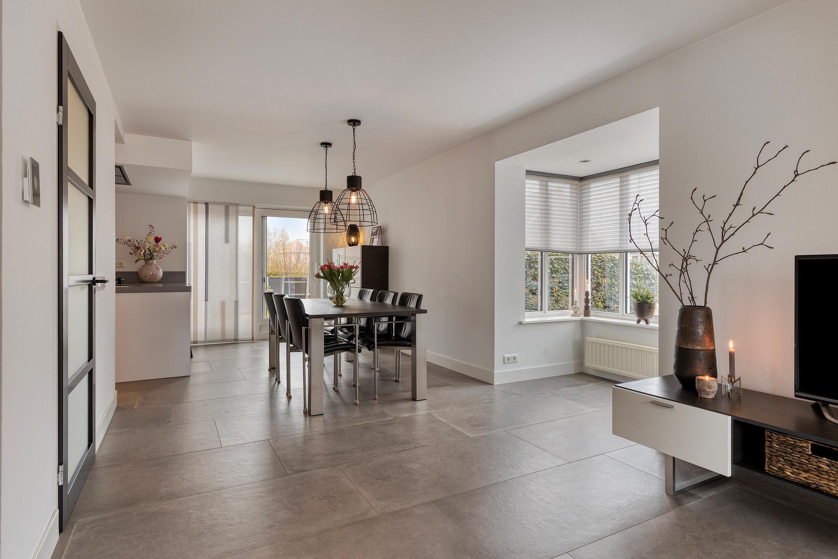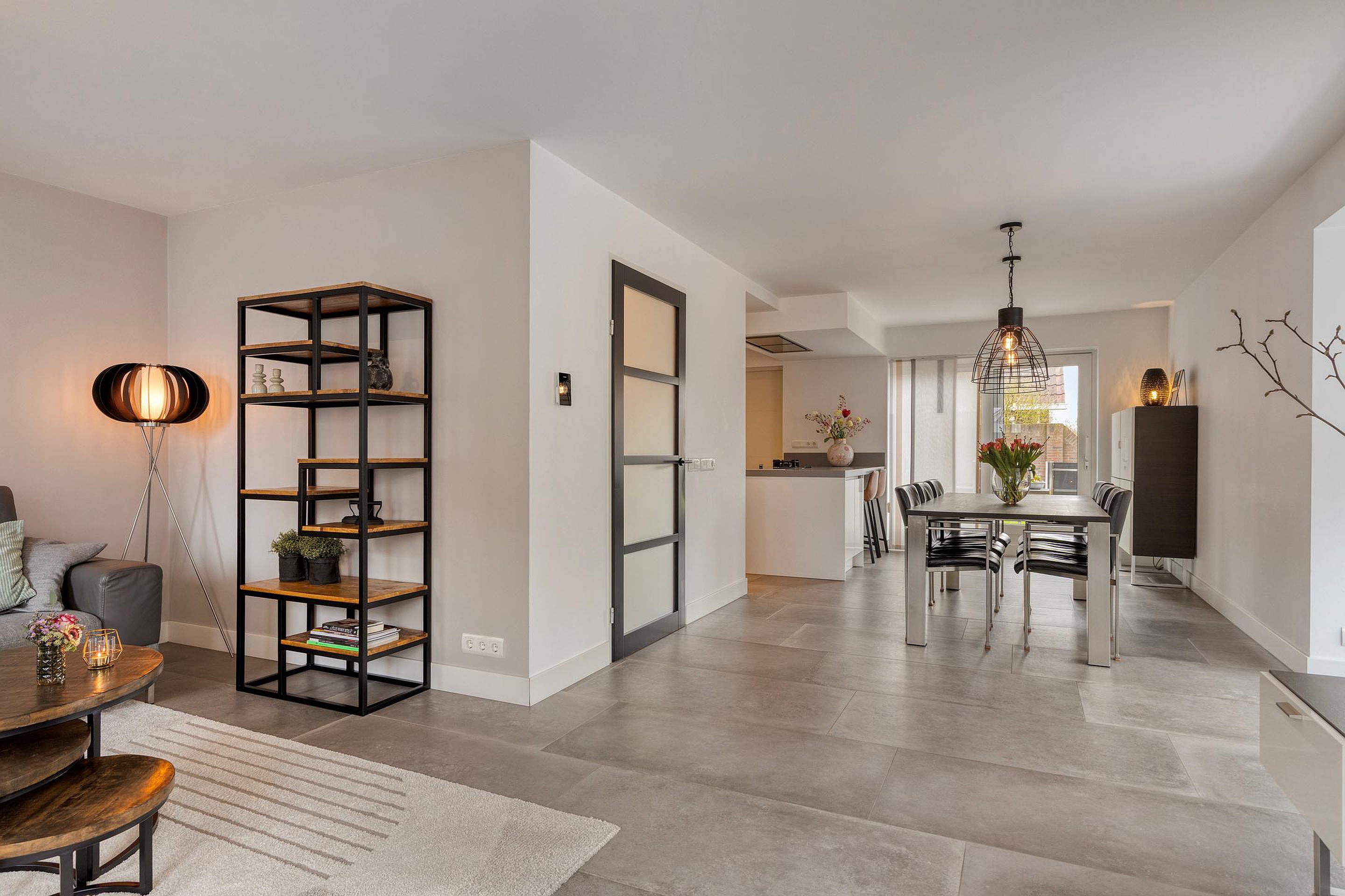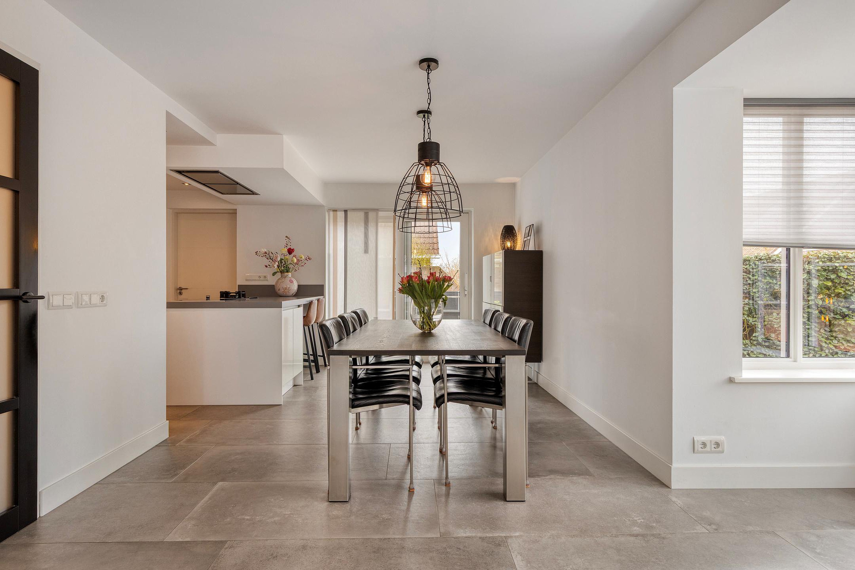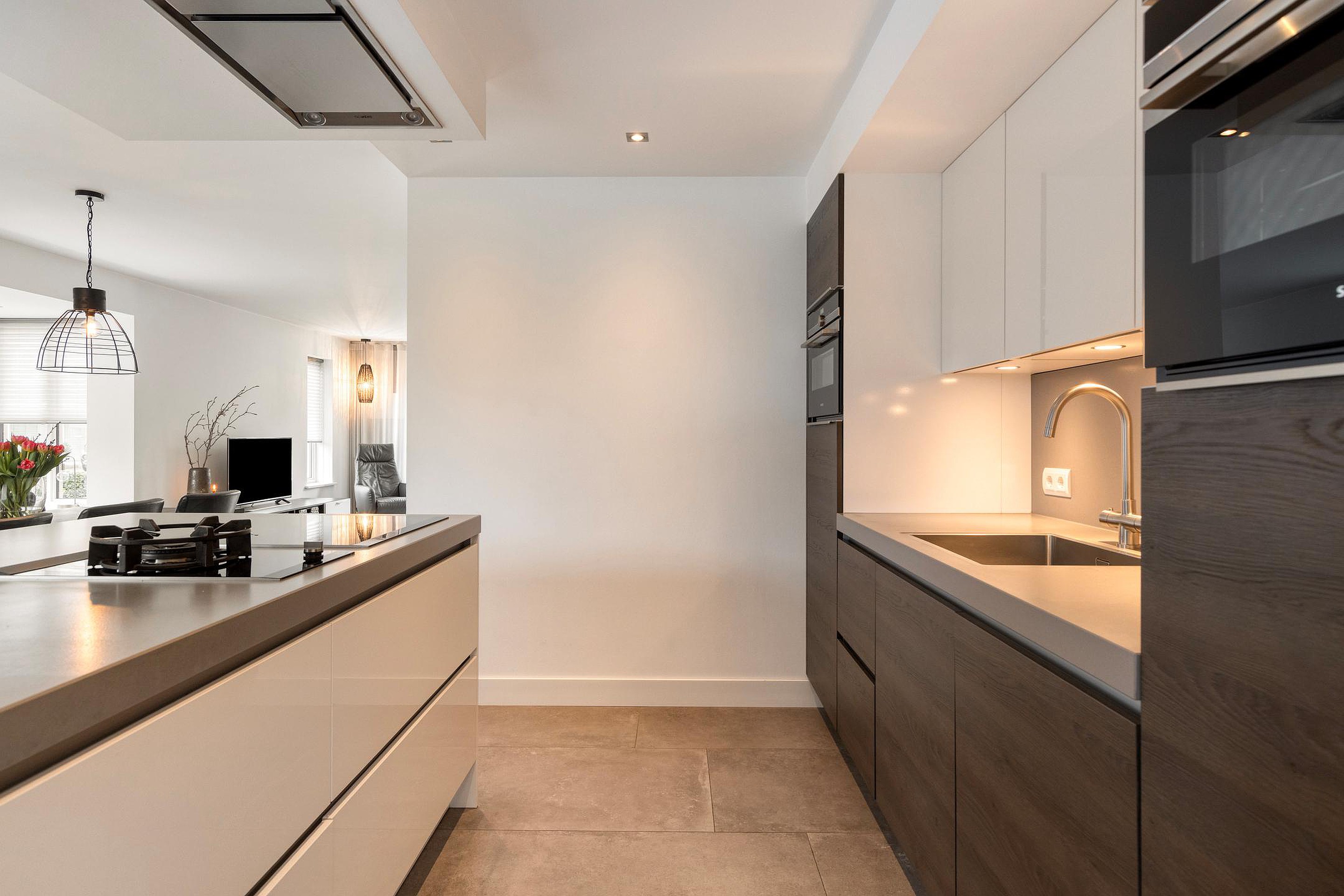 U betreedt de woning via de hal met meterkast, toilet en trapopgang. Vanuit de hal komt u in de royale woonruimte met open woonkeuken. De woonkamer is heerlijk licht dankzij de erker en de grote raampartijen. De zithoek is gesitueerd aan de voorzijde van de woning en biedt een leuk uitzicht op de straat. De eethoek bevindt zich aan de achterzijde, naast de woonkeuken. De schuifpui zorgt voor een fijne verbinding met de tuin. De woonkamer en keuken hebben samen een oppervlakte van circa 50 m2, zijn keurig afgewerkt en voorzien van fraaie vloertegels met vloerverwarming. De moderne keuken (2019) is uitgerust met een kookeiland en alle gewenste inbouwapparatuur en vormt het hart van de woning. De apparatuur bestaat onder andere uit een inductiekookplaat, wokbrander, afzuigkap, vaatwasser, koelkast, oven, combimagnetron en Quooker.
