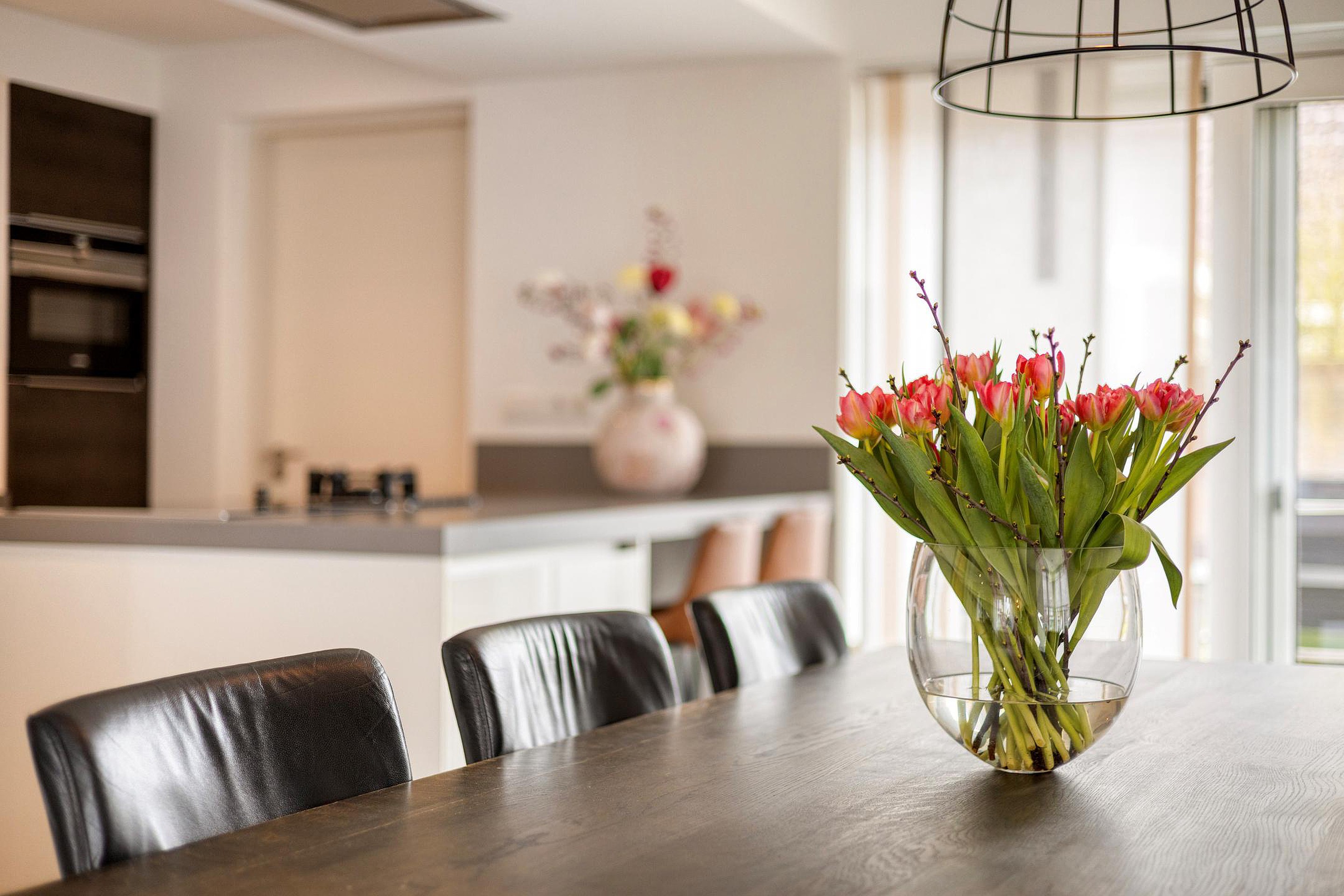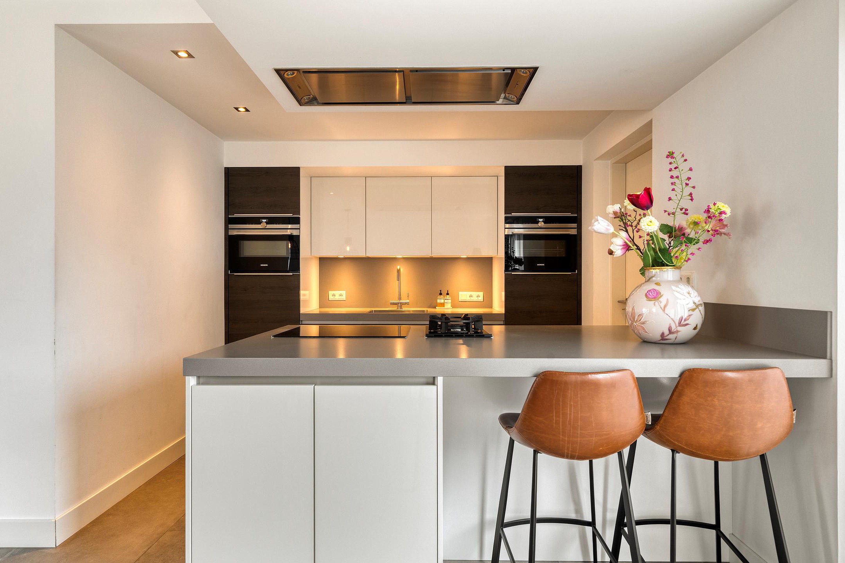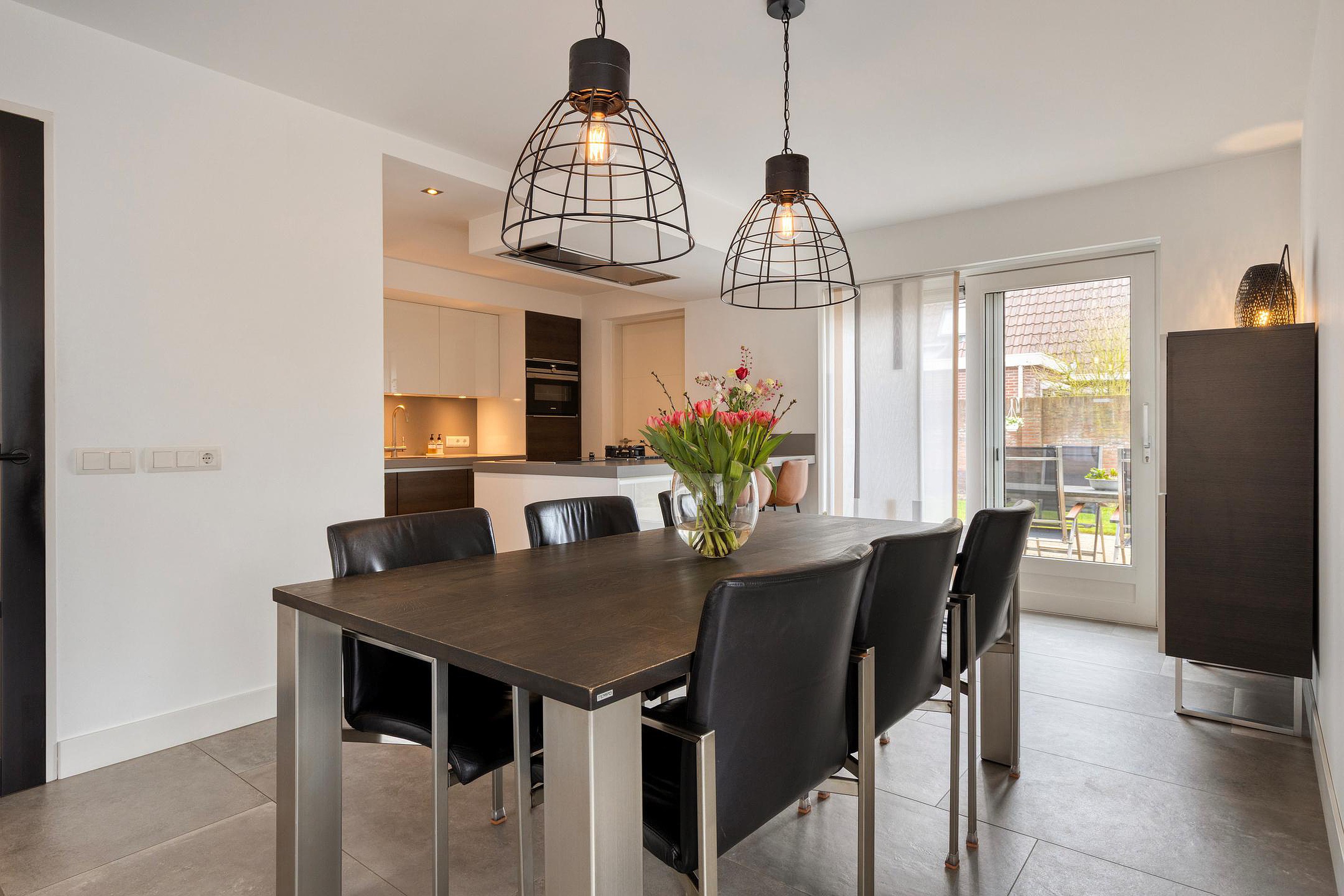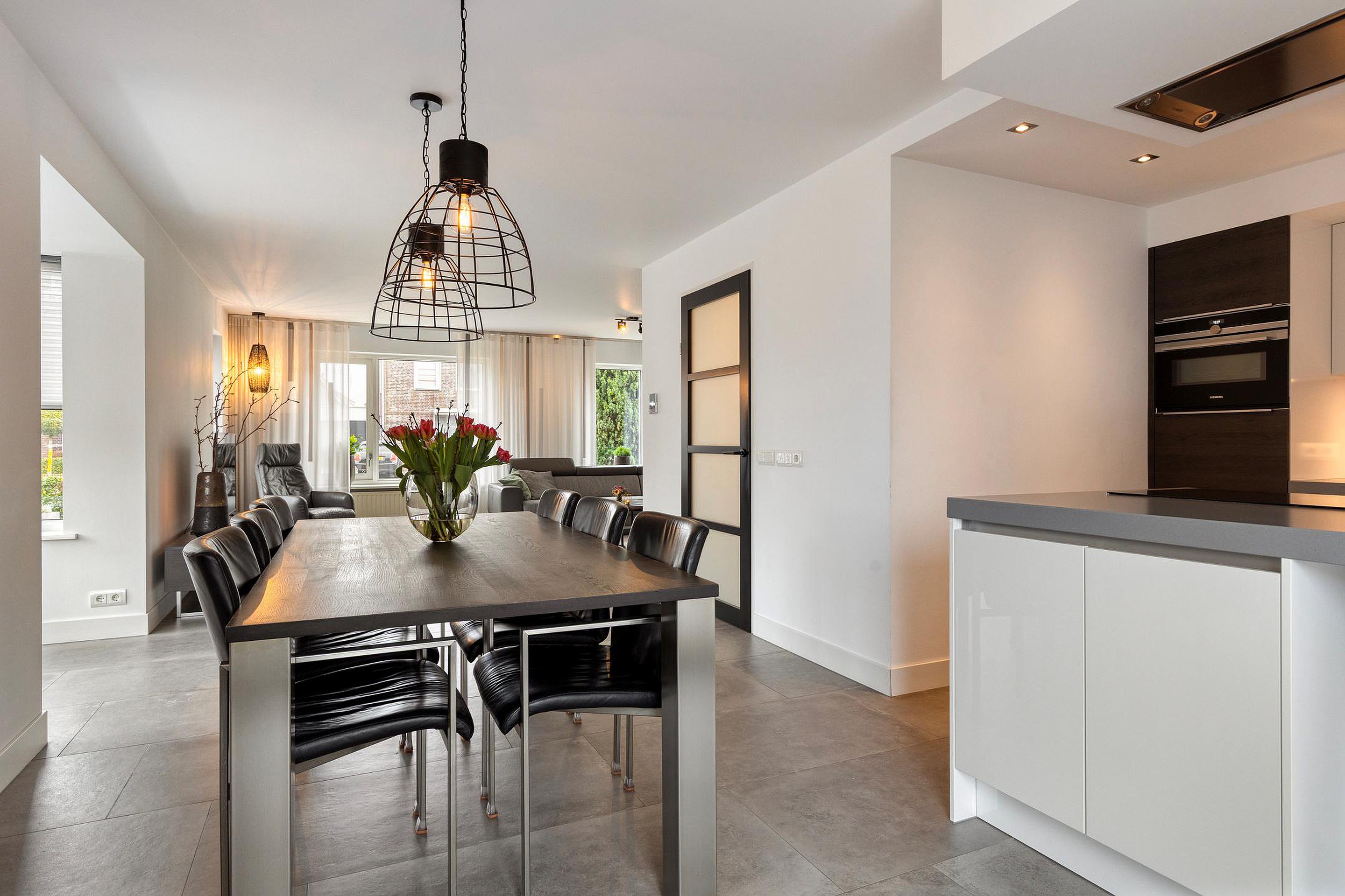 U betreedt de woning via de hal met meterkast, toilet en trapopgang. Vanuit de hal komt u in de royale woonruimte met open woonkeuken. De woonkamer is heerlijk licht dankzij de erker en de grote raampartijen. De zithoek is gesitueerd aan de voorzijde van de woning en biedt een leuk uitzicht op de straat. De eethoek bevindt zich aan de achterzijde, naast de woonkeuken. De schuifpui zorgt voor een fijne verbinding met de tuin. De woonkamer en keuken hebben samen een oppervlakte van circa 50 m2, zijn keurig afgewerkt en voorzien van fraaie vloertegels met vloerverwarming. De moderne keuken (2019) is uitgerust met een kookeiland en alle gewenste inbouwapparatuur en vormt het hart van de woning. De apparatuur bestaat onder andere uit een inductiekookplaat, wokbrander, afzuigkap, vaatwasser, koelkast, oven, combimagnetron en Quooker.