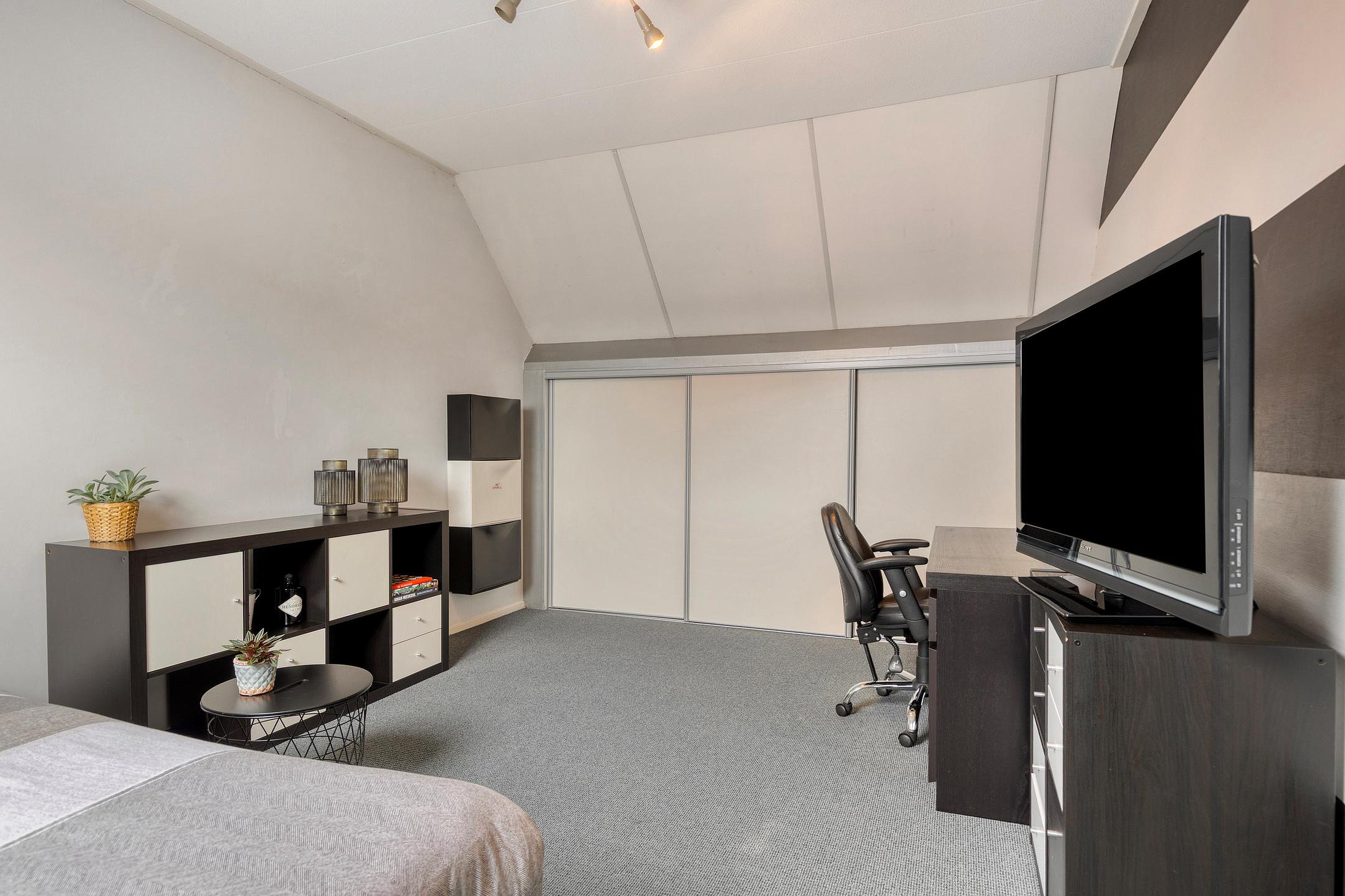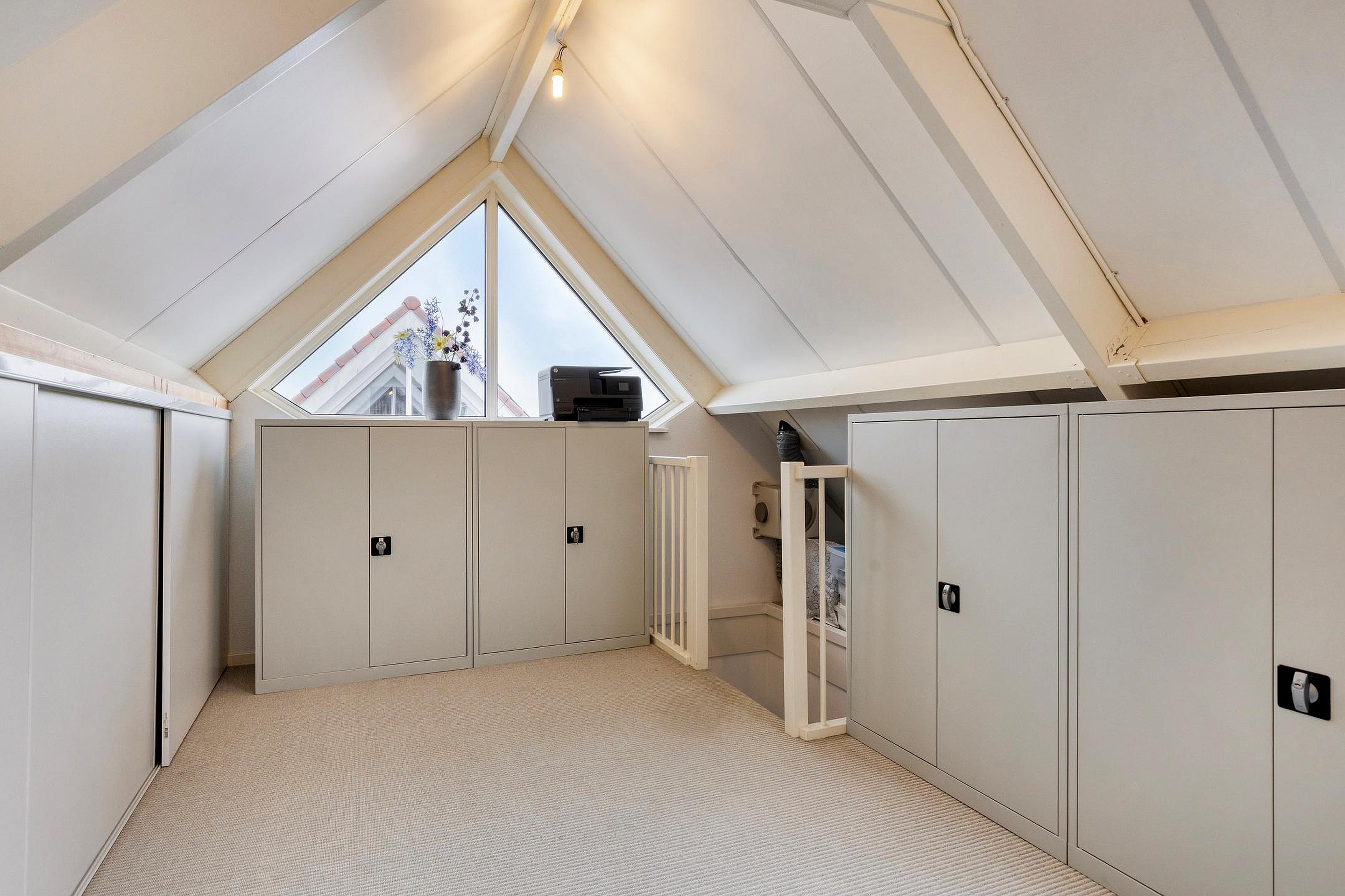 De tweede verdieping is bereikbaar via een vaste trap en bestaat uit een open ruimte van circa 23,8 m2. Deze verdieping met vaste bergruimte is uitstekend geschikt als extra slaapkamer, werk- of hobbyruimte.