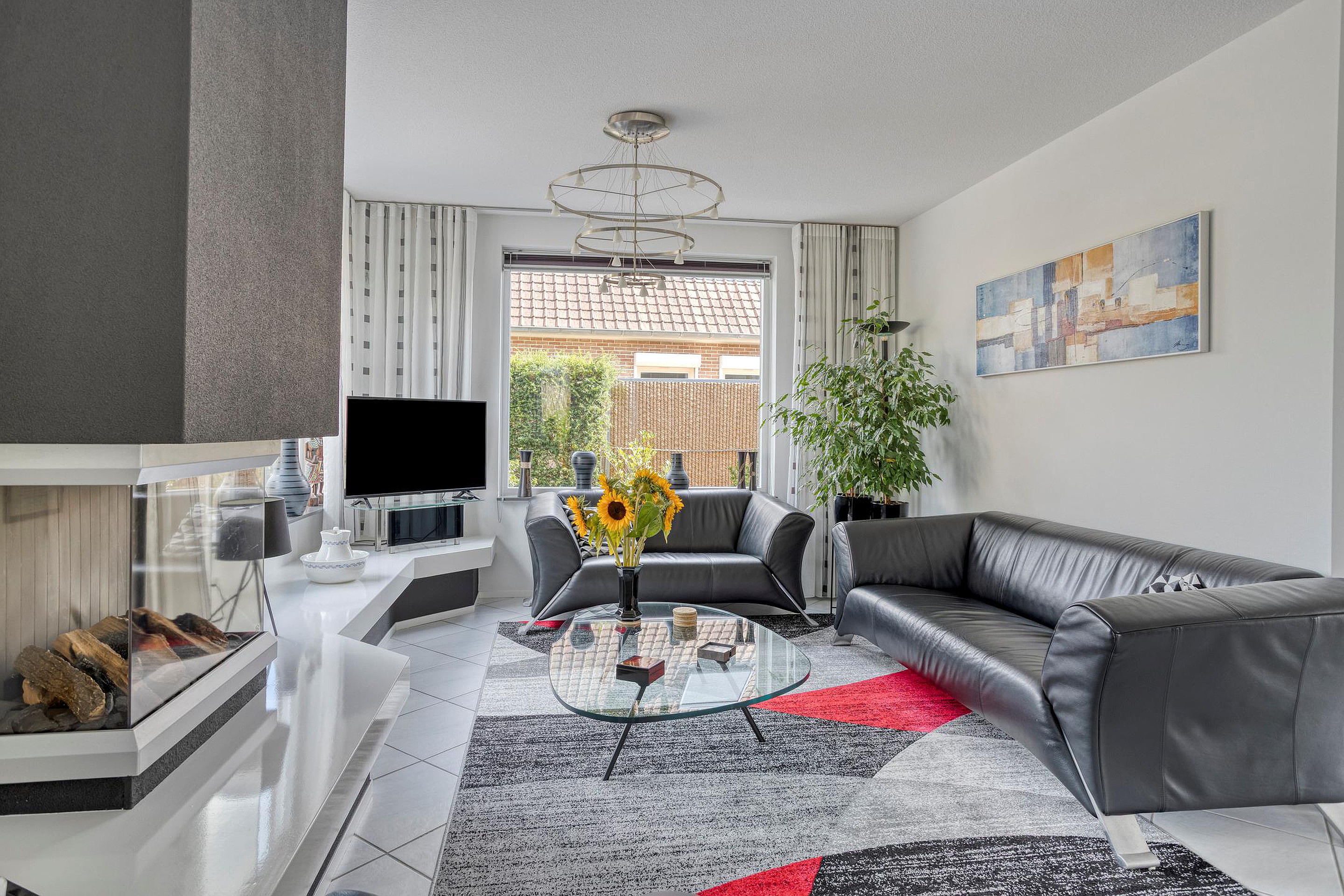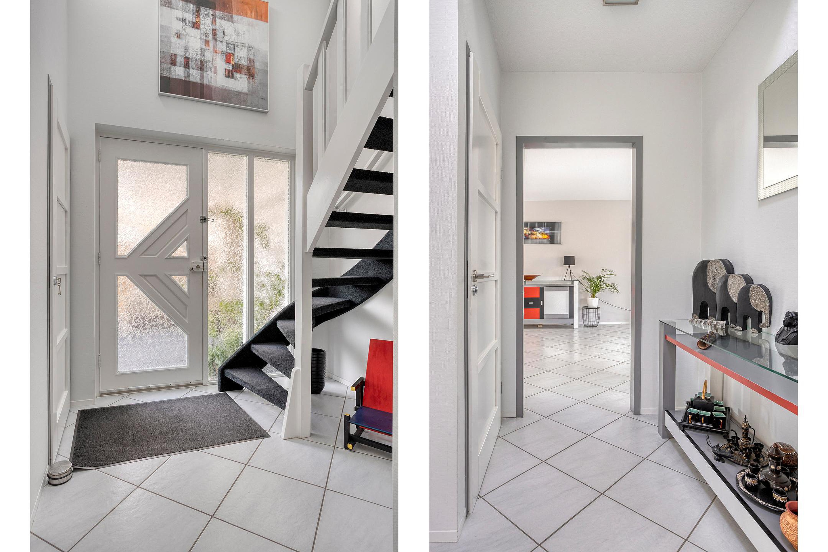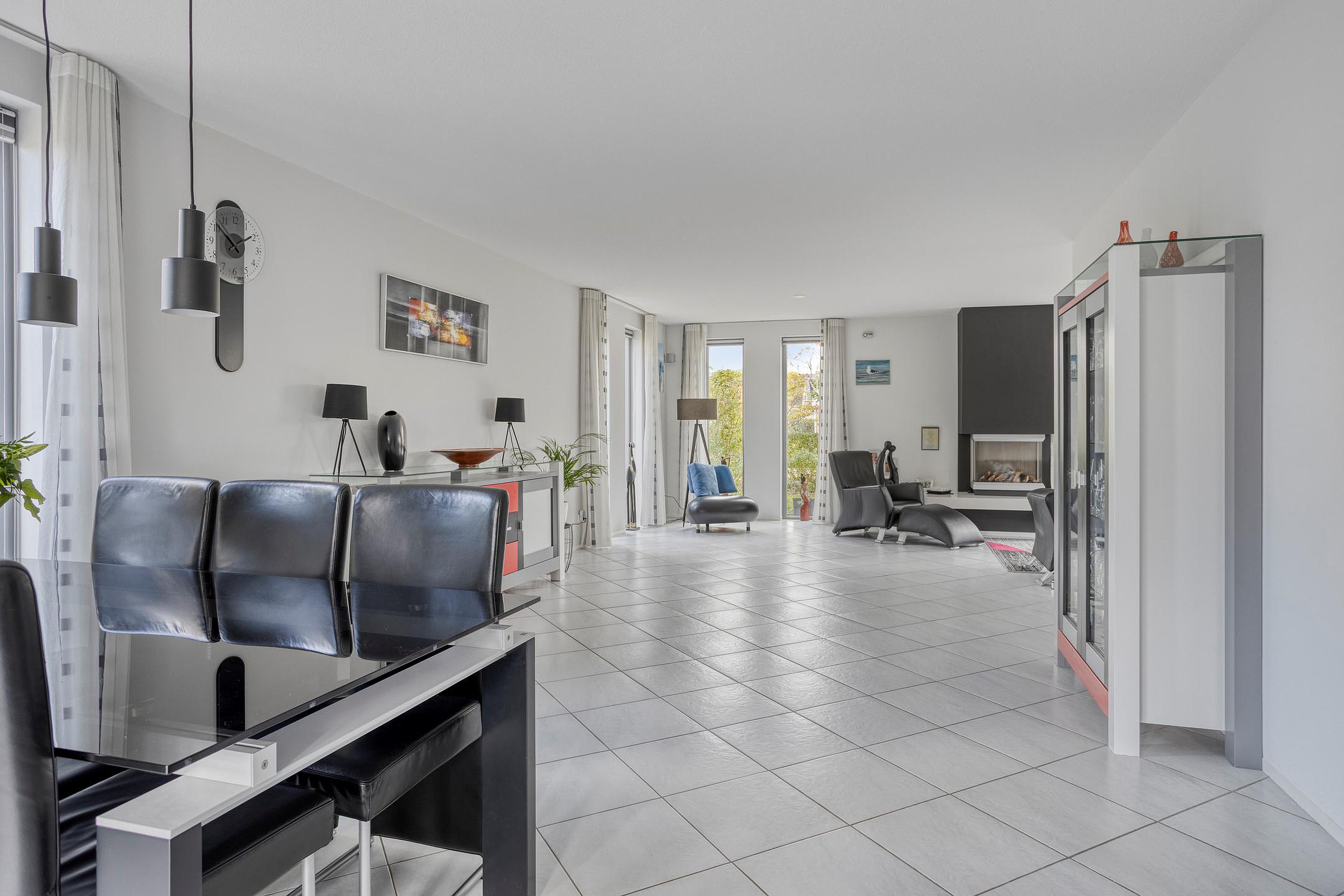 De ruime hal met vide en met modern toilet verwelkomt u stijlvol. Vanuit hier loopt u door naar de royale woonkamer (ca. 54 m2), waar de gashaard zorgt voor warmte en gezelligheid. Dankzij de vele ramen geniet u hier van een fijne lichtinval. De woonkamer is aan de achterzijde voorzien van openslaande deuren richting de serre. Deze serre (ca. 12 m2) functioneert als een verlengstuk van de woonkamer en biedt een fijne, lichte ruimte. De openslaande tuindeuren zorgen voor een fijne verbinding met de tuin.
