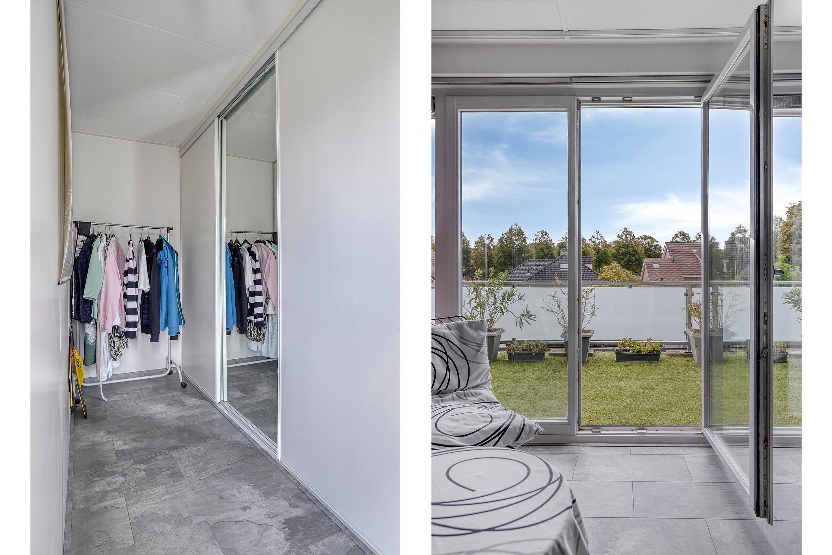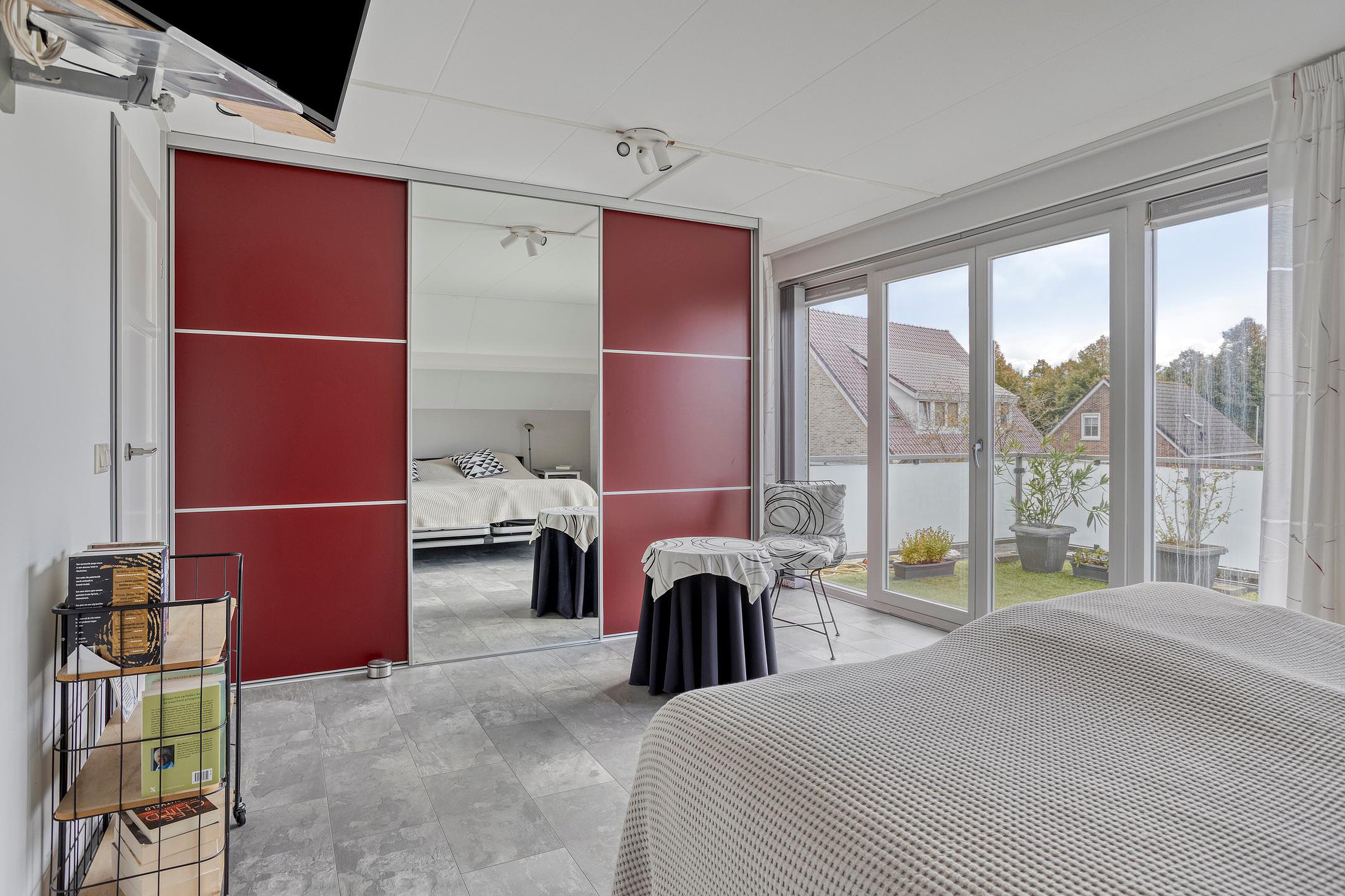 Aan de achterzijde van de woning is een serre (ca. 12 m2) aanwezig. De master bedroom op de eerste verdieping is voorzien van openslaande deuren naar een groot dakterras. De woning beschikt over vier slaapkamers en de eerste verdieping is voorzien van rolluiken. Op de tweede verdieping kan een vijfde slaapkamer worden gerealiseerd, ideaal voor grotere gezinnen, een thuiswerkplek of logeerkamer.