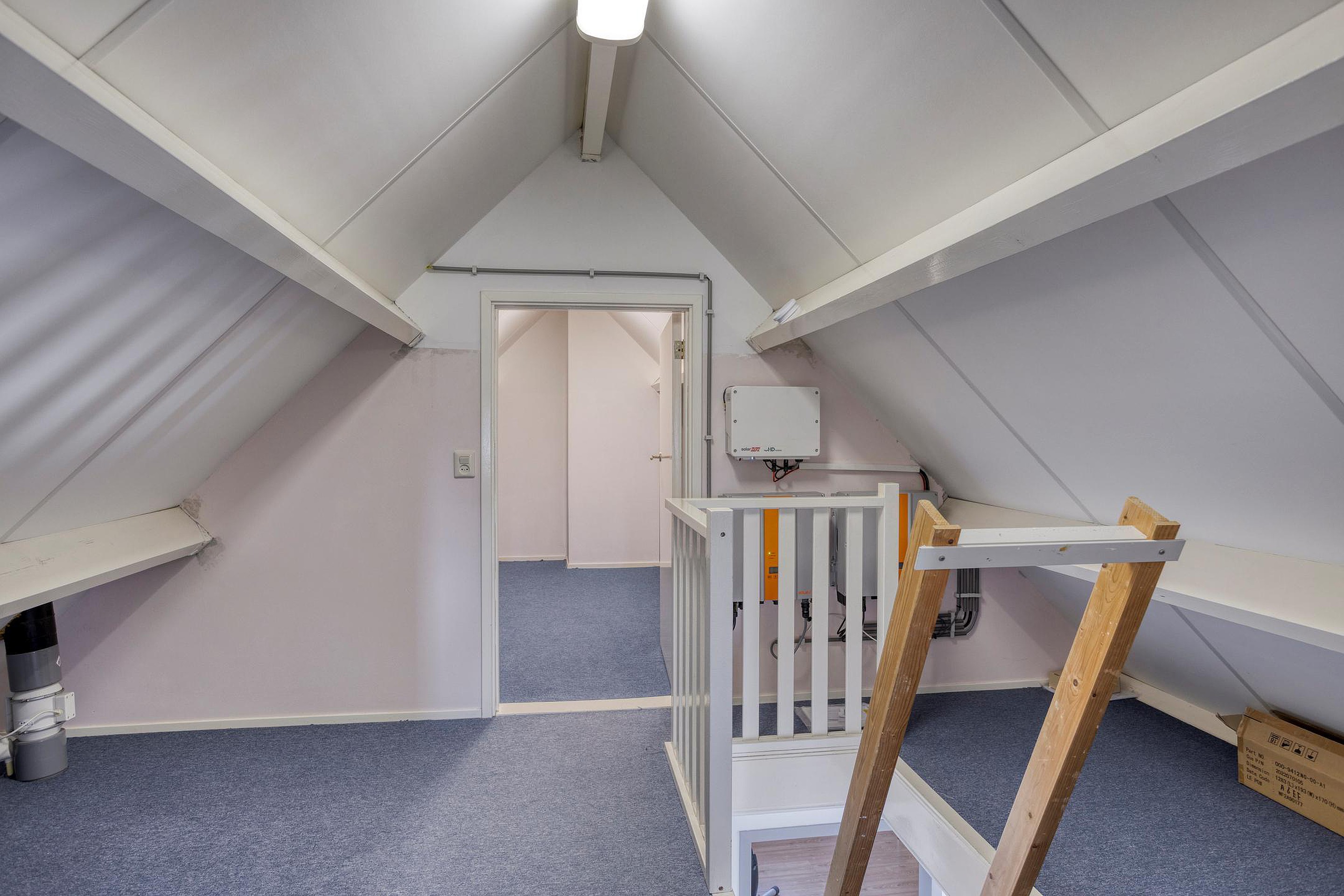 De tweede verdieping is bereikbaar via een vlizotrap en biedt volop ruimte met een vierde slaapkamer, een grote overloop en de mogelijkheid om een vijfde slaapkamer te realiseren. Ideaal voor een groter gezin of als thuiswerkplek. Op de overloop zijn de omvormers voor de zonnepanelen geplaatst.