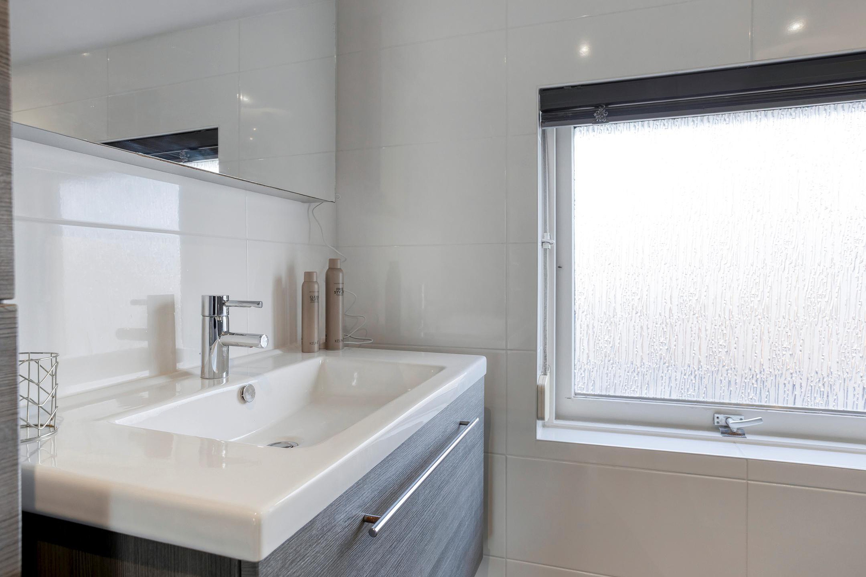 Op de eerste verdieping bevinden zich de overloop, drie slaapkamers en de badkamer. De nette badkamer is praktisch ingericht en voorzien van een douchehoek, toilet en badkamermeubel. De slaapkamers aan de voorzijde hebben een oppervlakte van circa 13,8 m2 en 6,9 m2. De slaapkamer aan de achterzijde heeft een oppervlakte van circa 9,3 m2.