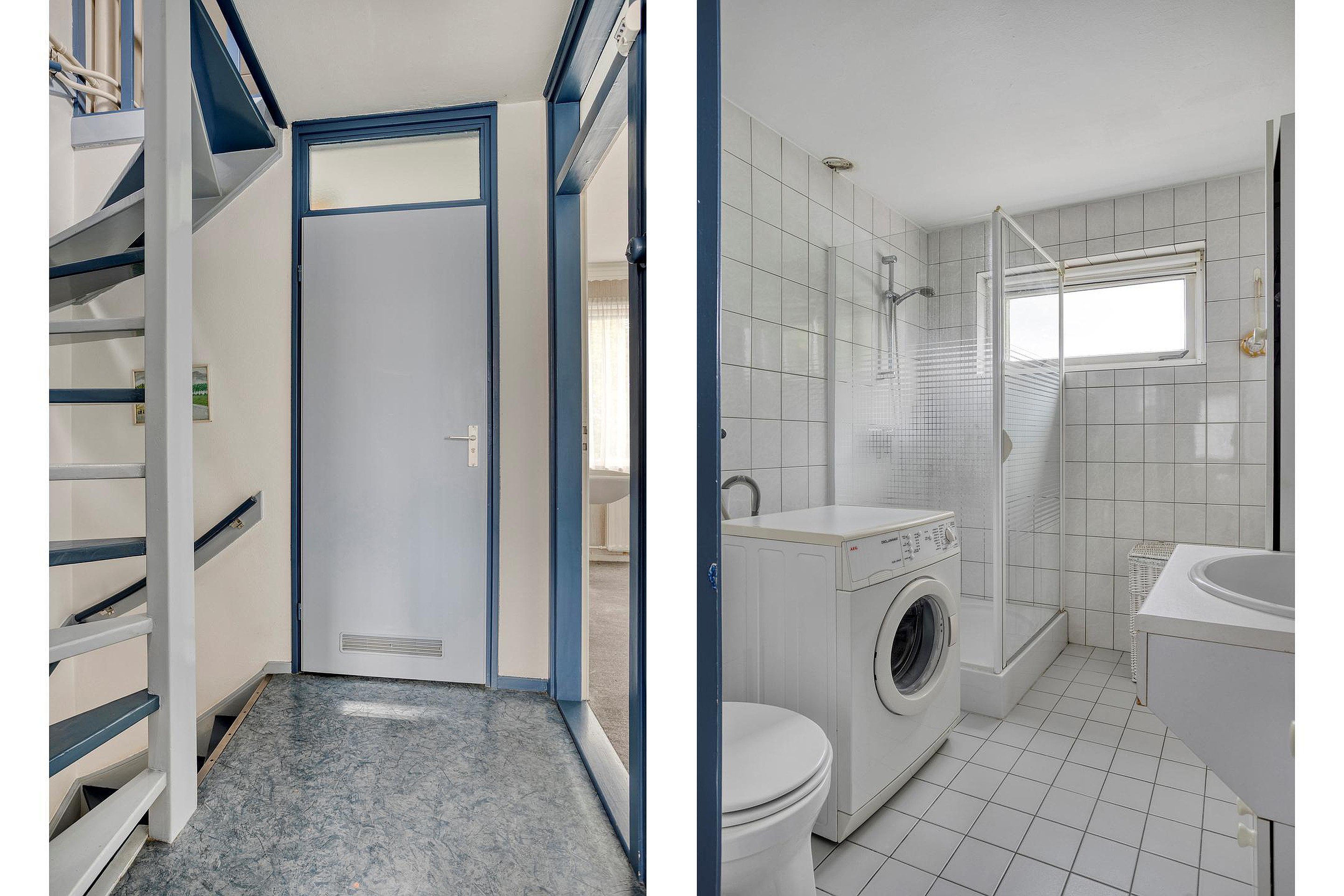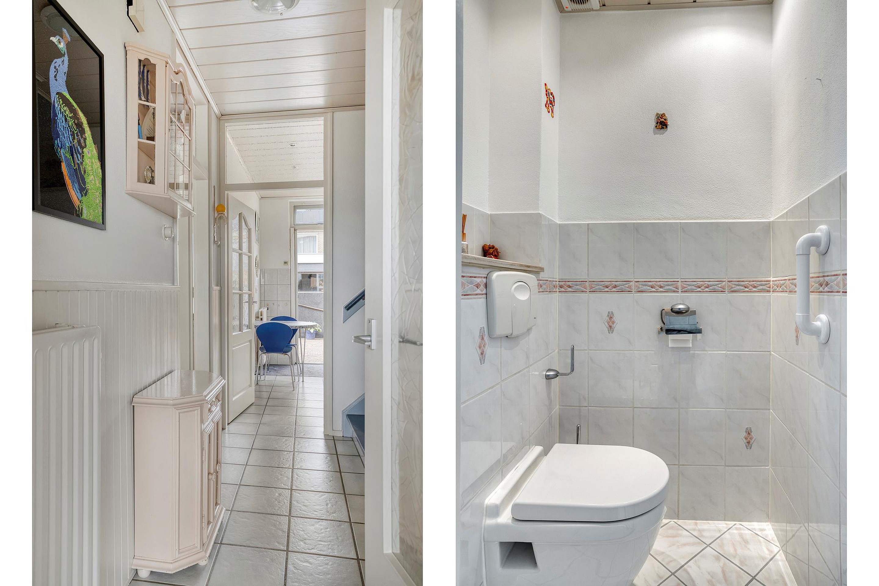 De entree en hal zijn voorzien van de meterkast, het toilet en trapopgang naar de bovenliggende verdieping. Het toilet is netjes uitgevoerd met een hangtoilet.