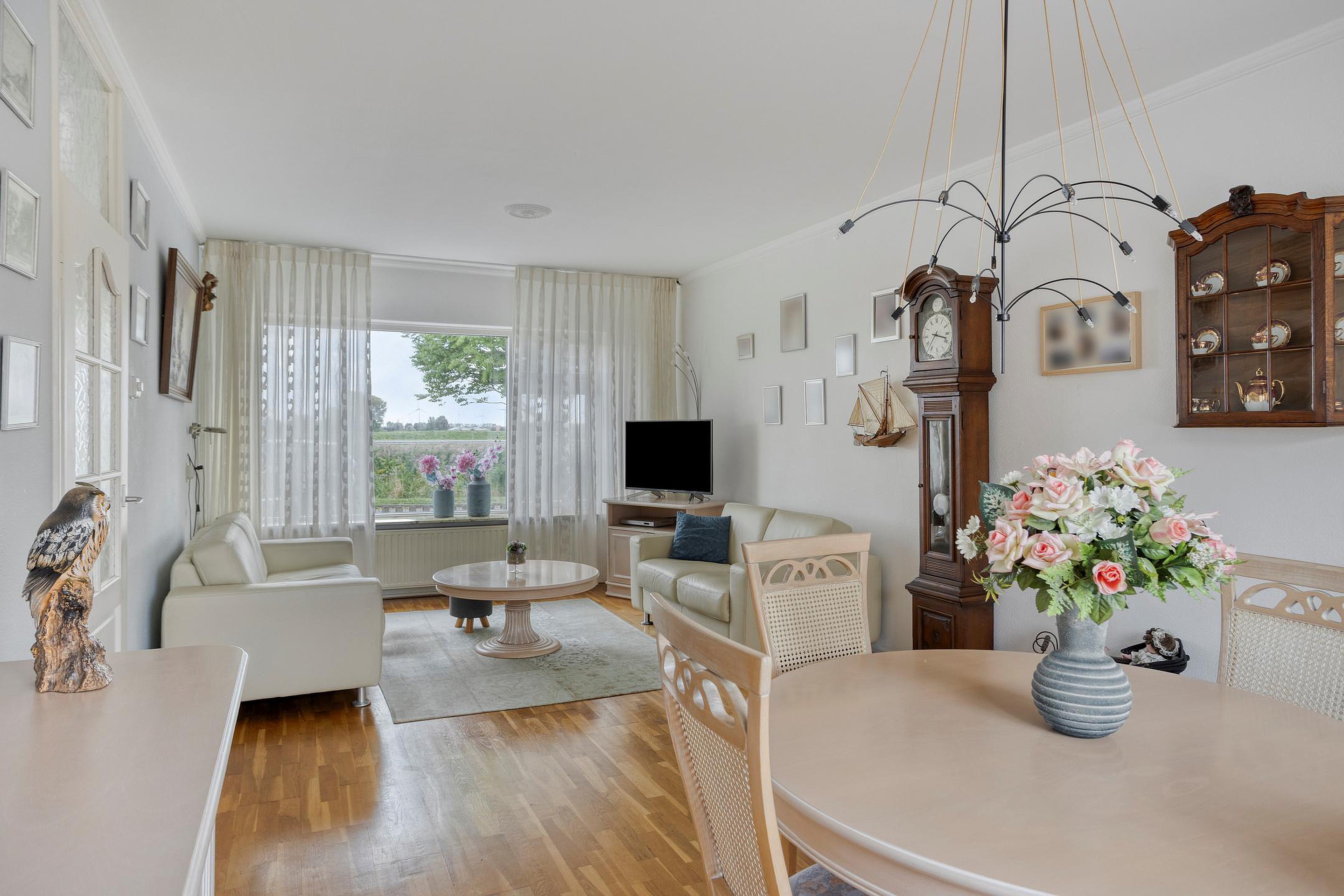 De ruime doorzonwoonkamer heeft een oppervlakte van 28 m2 en is een heerlijke plek om thuis te komen. De zithoek van de woning biedt vrij uitzicht op de voorgelegen waterpartij.