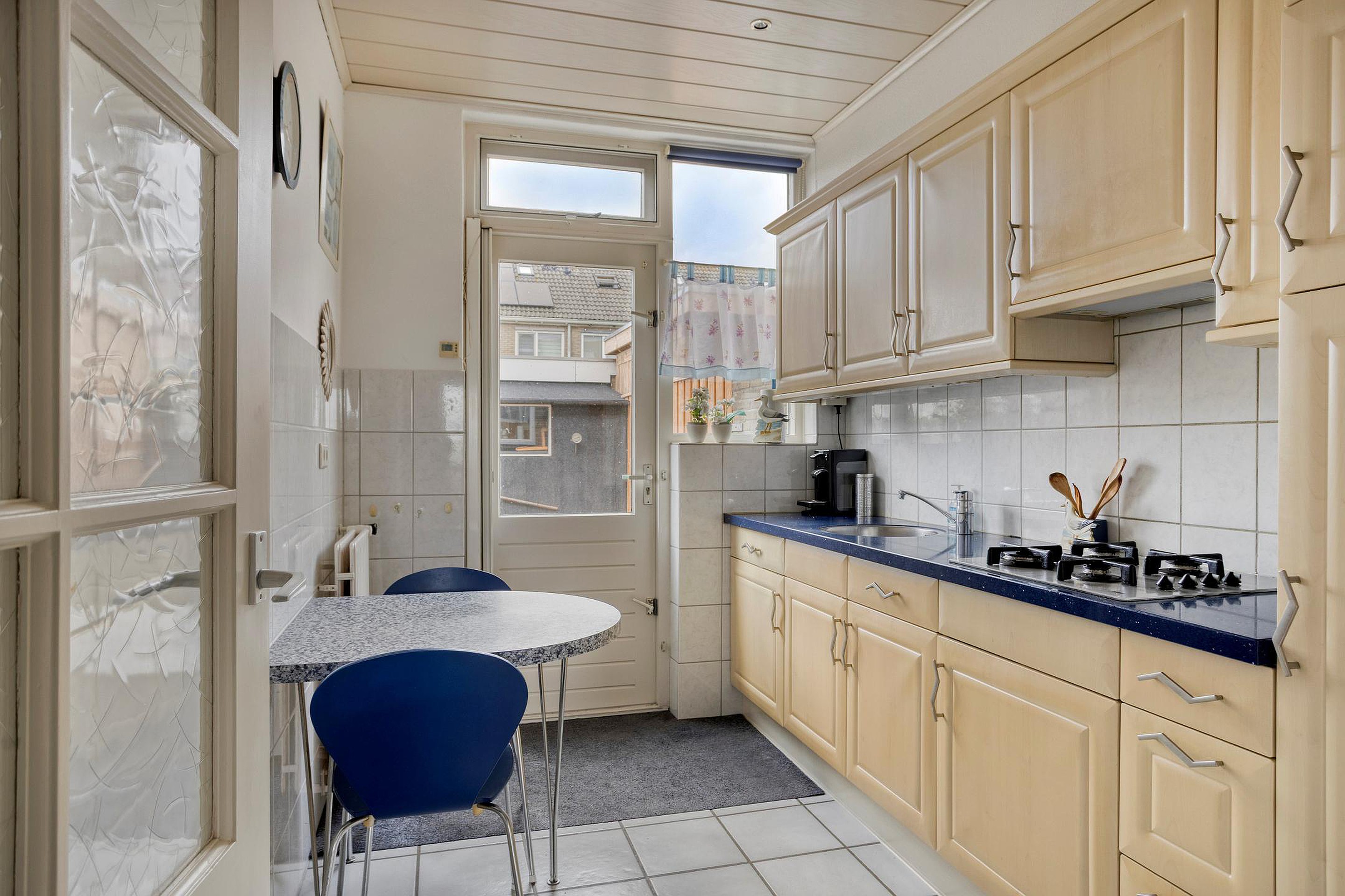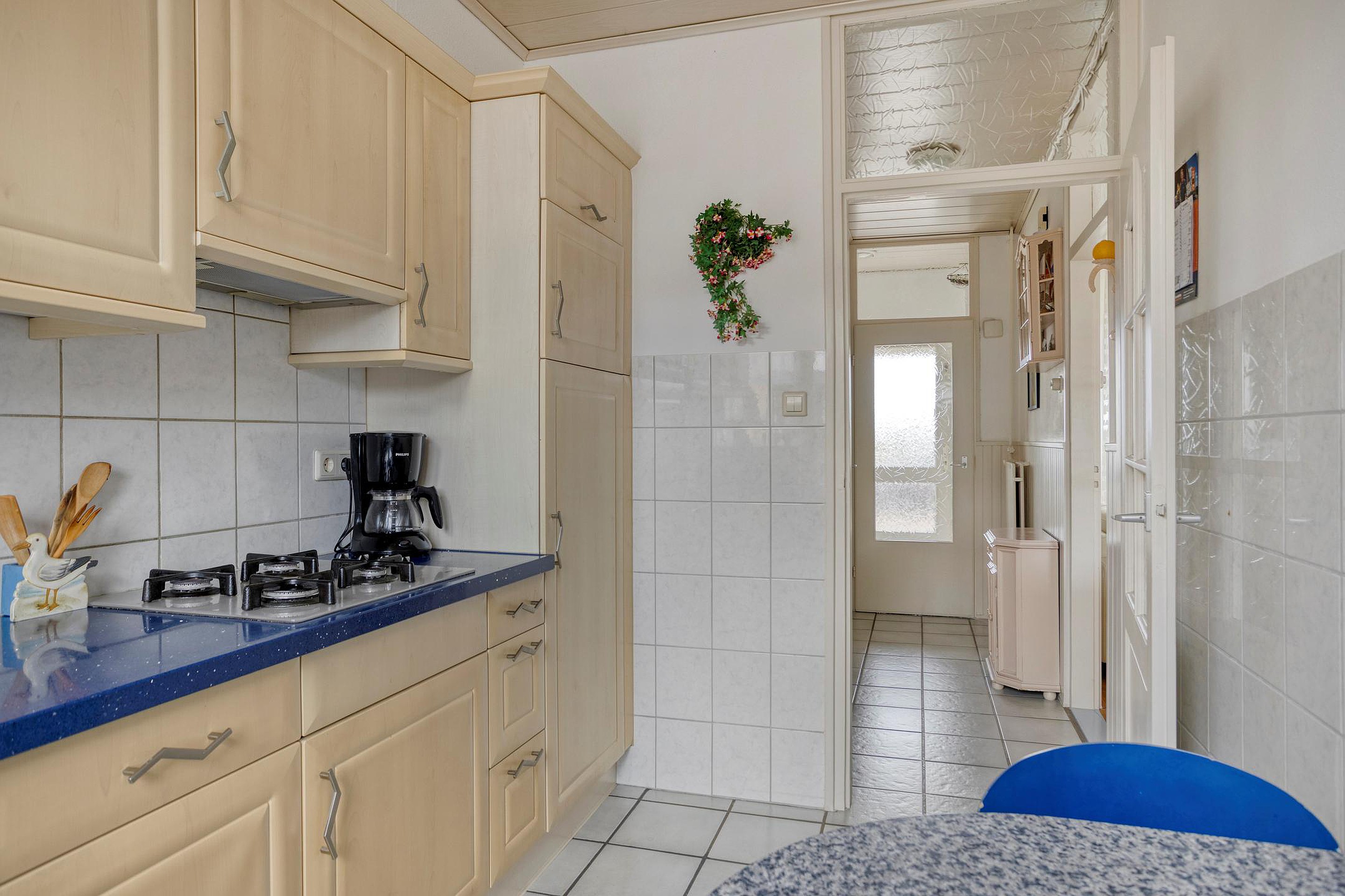 De keuken beschikt over een nette keukenopstelling en is uitgerust van diverse inbouwapparatuur o.a. gaskookplaat, afzuigkap en koel-vriescombinatie. Vanuit de keuken is er directe toegang tot de tuin.