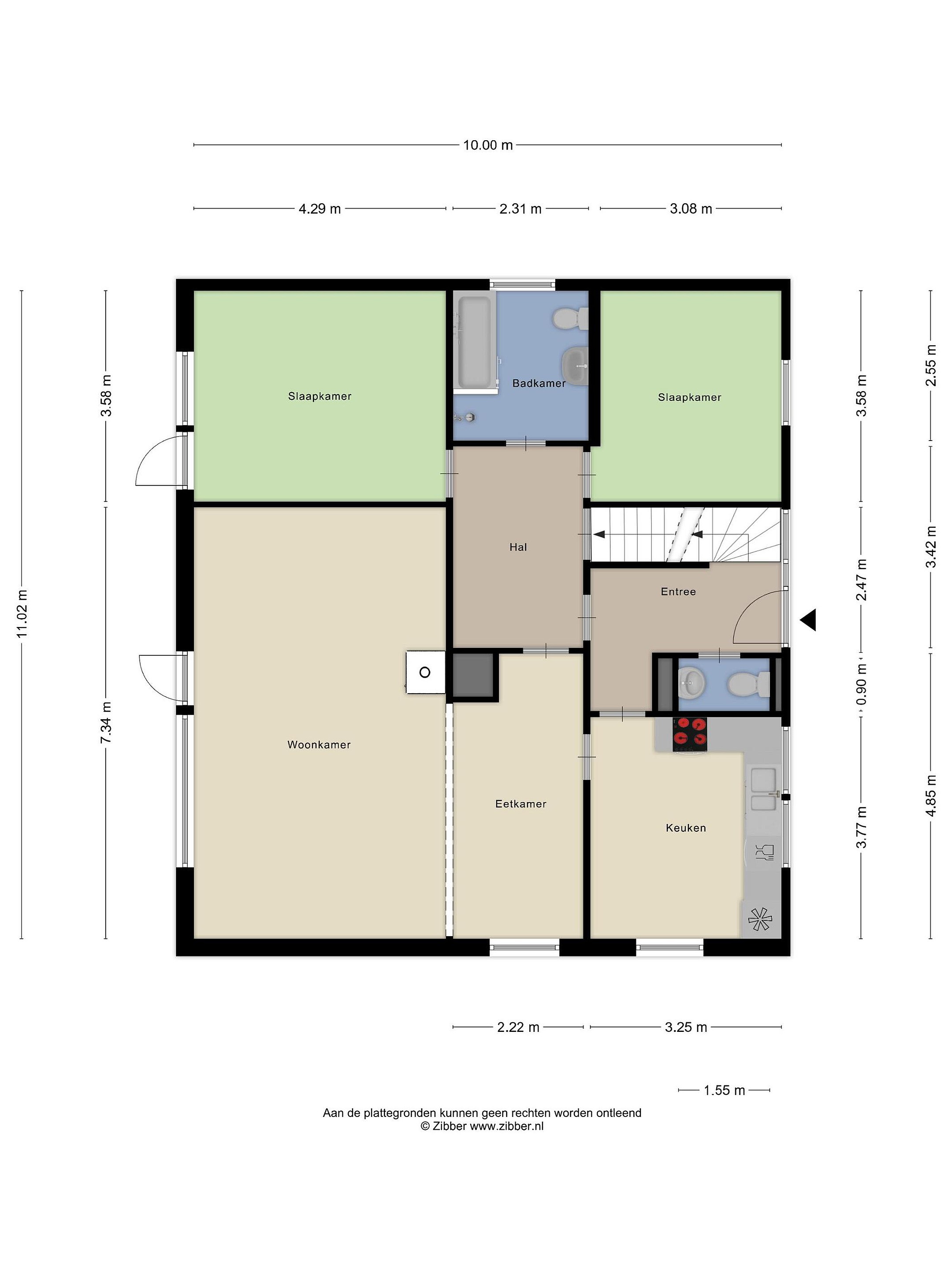 U komt de woning binnen via de ruime hal met meterkast, toilet en trapopgang naar de eerste verdieping. Vanuit de hal bereikt u de tussenhal met praktische kelderkast en toegang tot de riante woonkamer. De woonkamer (ca. 42 m2) beschikt over een gezellige schouw met houtkachel en een grote raampartij, die zorgt voor veel lichtinval en een prettig uitzicht op de tuin. De aangrenzende keukenruimte (ca. 12,2 m2) is voorzien van een eenvoudige hoekopstelling en biedt volop mogelijkheden om naar eigen smaak in te richten. De twee grote slaapkamers op de begane grond hebben een oppervlakte van ca. 11 m2 en 15,3 m2. De grootste slaapkamer beschikt over een loopdeur naar de achtertuin. De badkamer (ca. 5,8 m2) is uitgerust met een ligbad/douchecombinatie, toilet en wastafel.