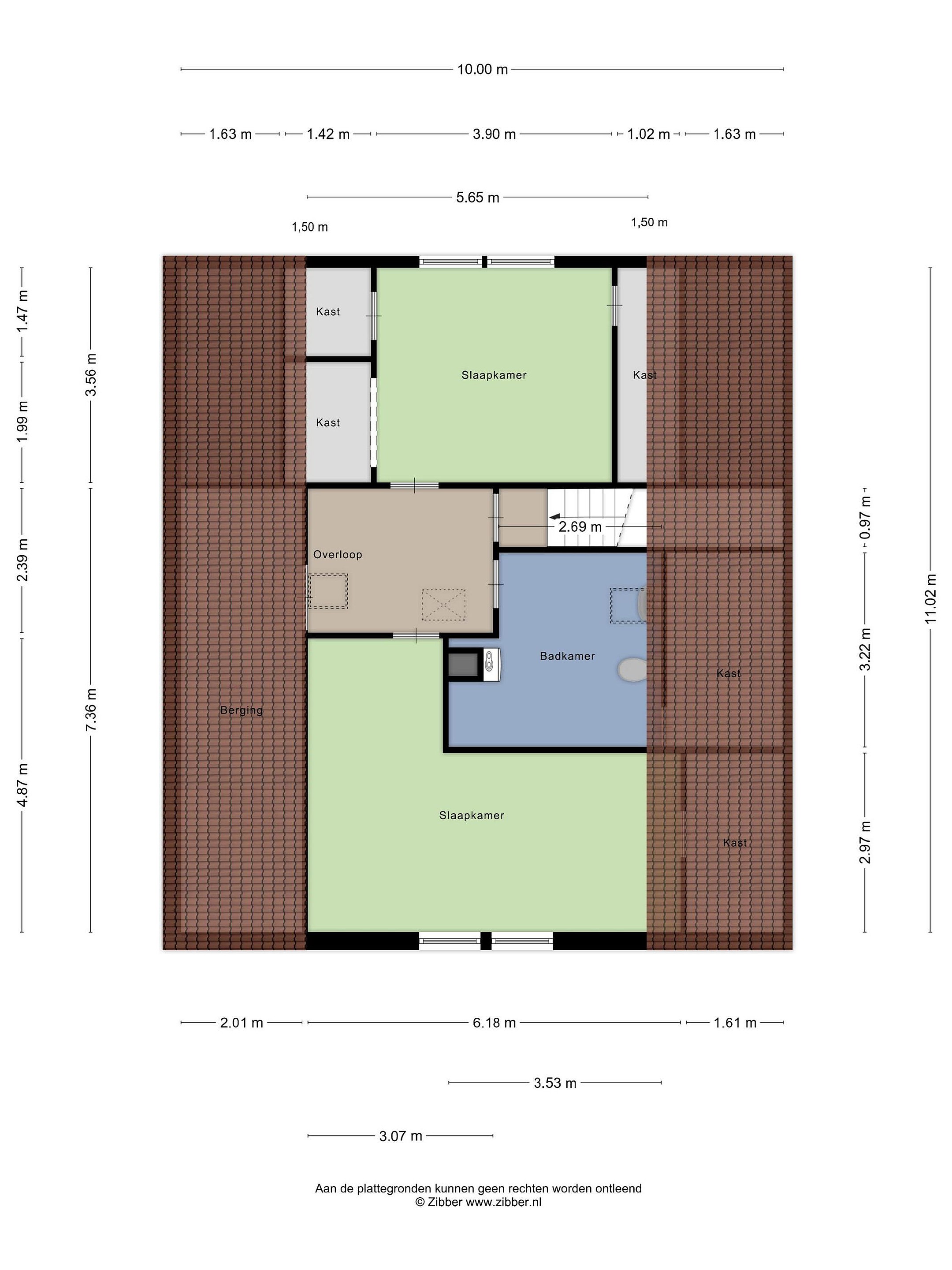 Deze verdieping biedt volop mogelijkheden voor uitbreiding of het realiseren van extra voorzieningen. De slaapkamers hebben afmetingen van ca. 14 m2 en 20 m2. De slaapkamer aan de achterzijde beschikt over veel vaste kastruimte.