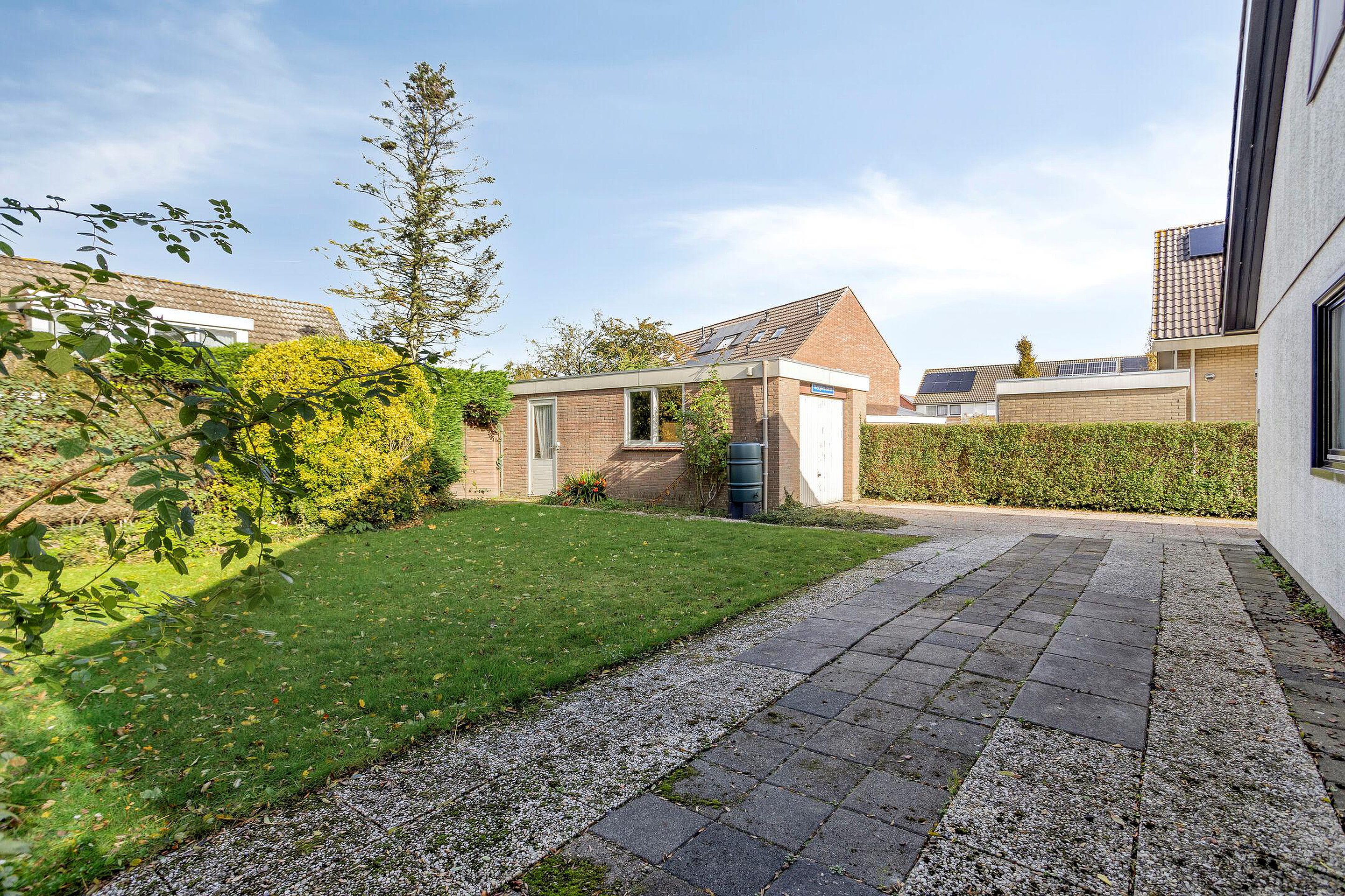 Rondom de woning ligt een fraaie, ruime tuin met diverse zitplekken en volop groen. De gunstige ligging op het zuidwesten zorgt voor optimale zonligging. Op het perceel bevindt zich tevens een vrijstaande garage (ca. 27 m2) en een diepe oprit met parkeergelegenheid voor meerdere auto’s.