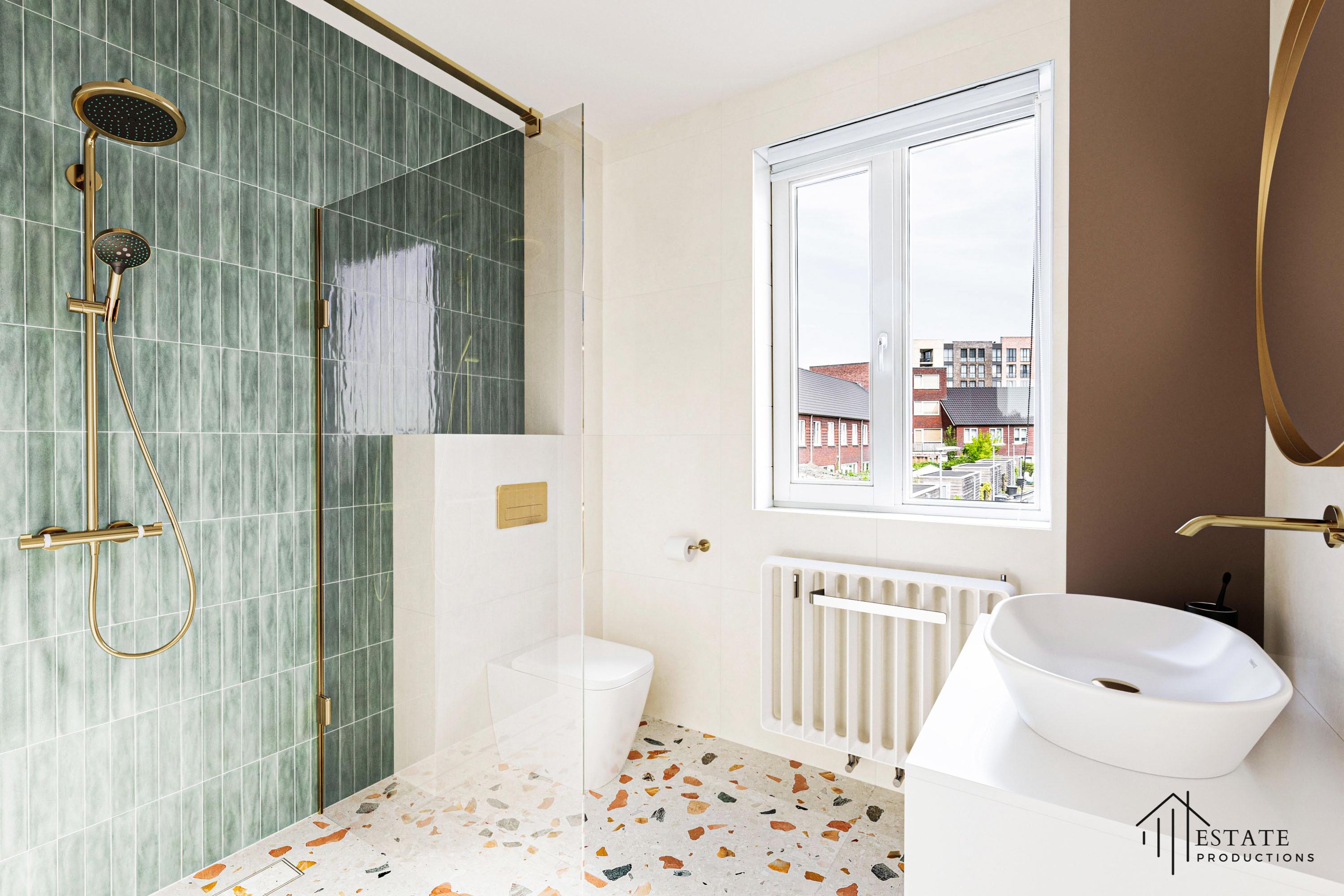 Op deze verdieping bevinden zich twee royale slaapkamers en een moderne badkamer met douchecabine, tweede toilet en een strak wastafelmeubel. Ook hier is vloerverwarming aanwezig voor extra comfort.