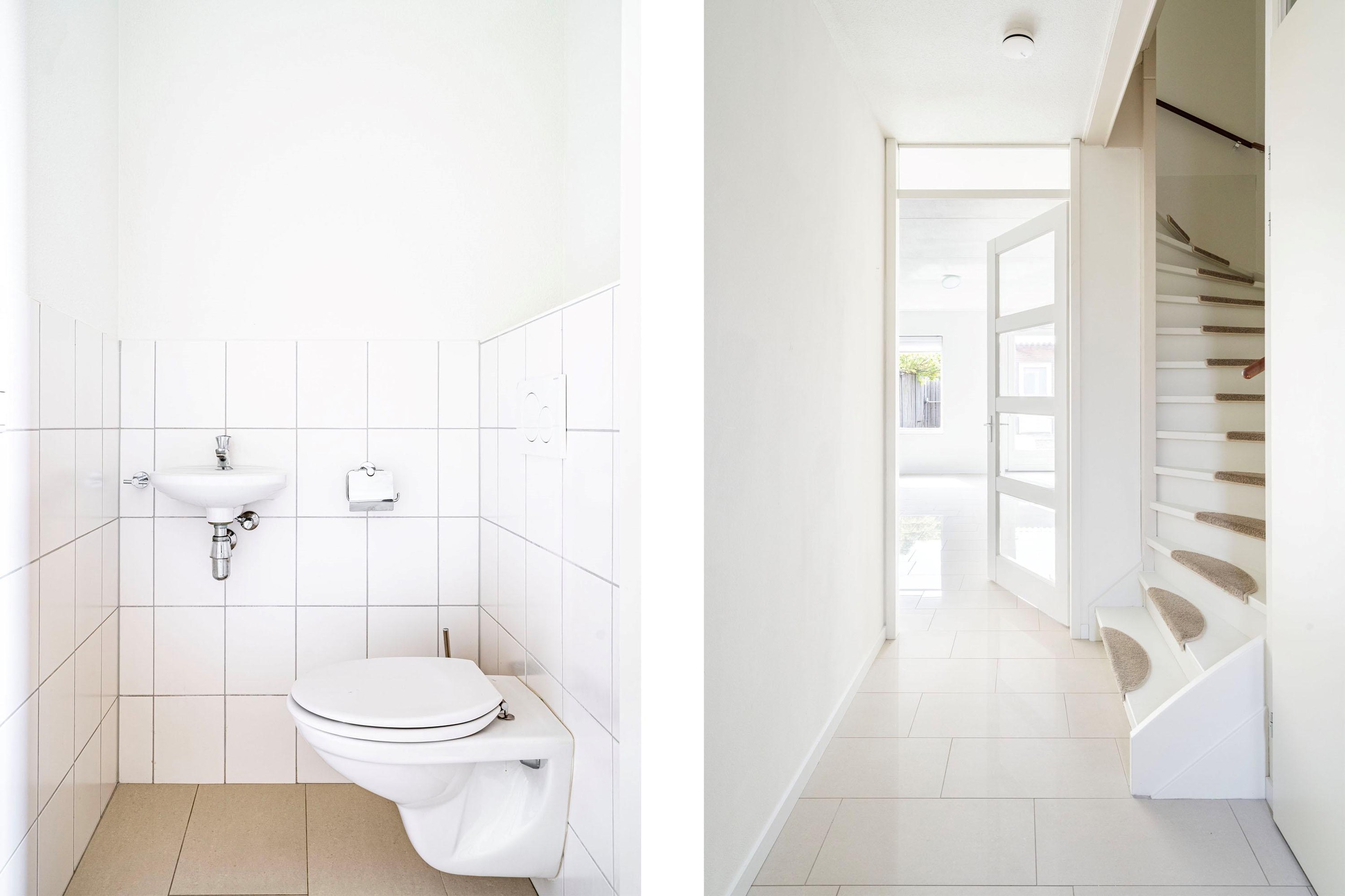 Via de entree/hal met meterkast en modern toilet betreed je de ruime en lichte woonkamer. Dankzij de openslaande deuren naar de tuin geniet je hier van veel lichtinval en een directe verbinding met buiten.