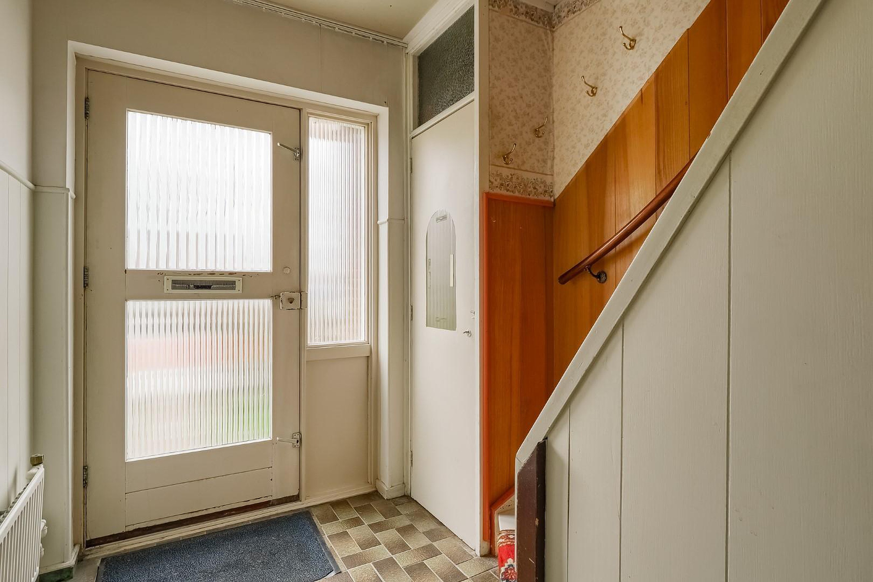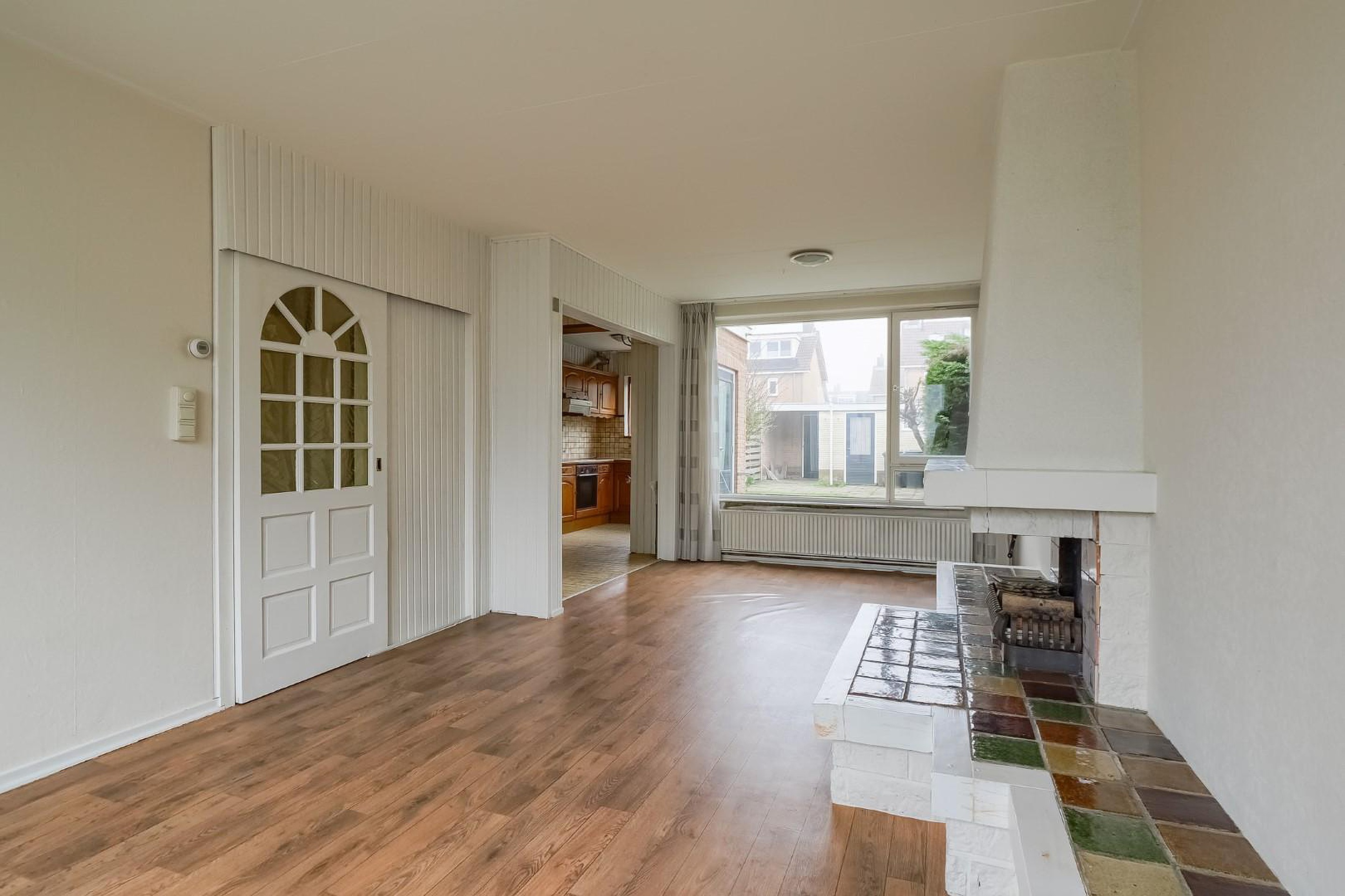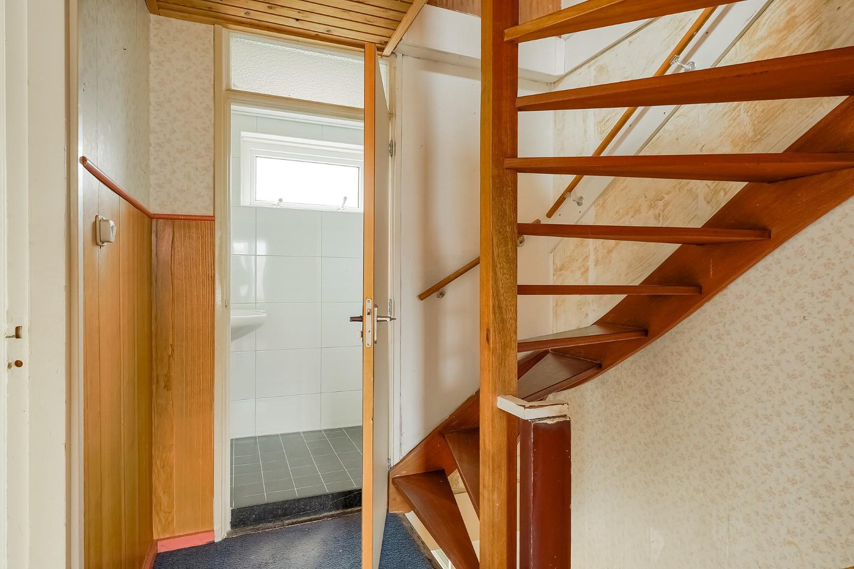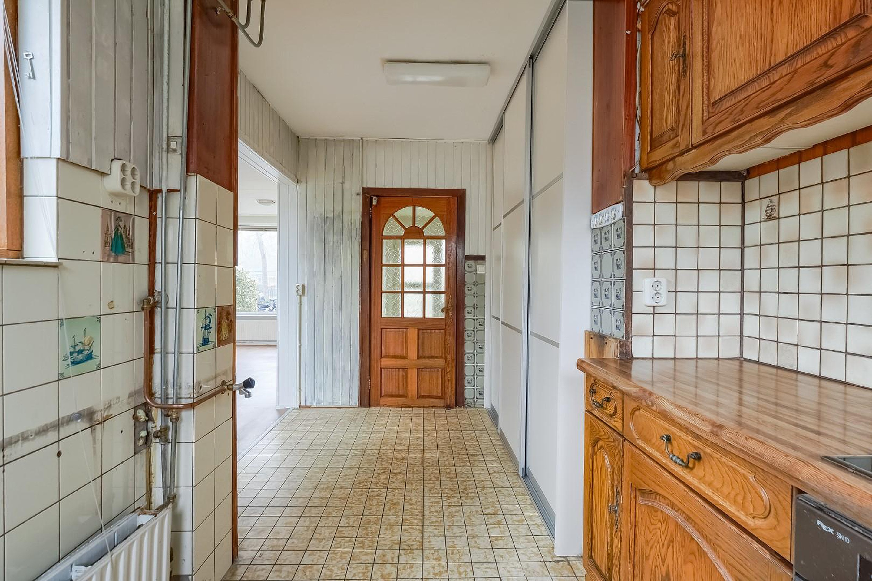 Begane grond Entree/hal met meterkast, trapopgang, trapkast en toilet, keuken in uitbouw, woonkamer met rookkanaal.