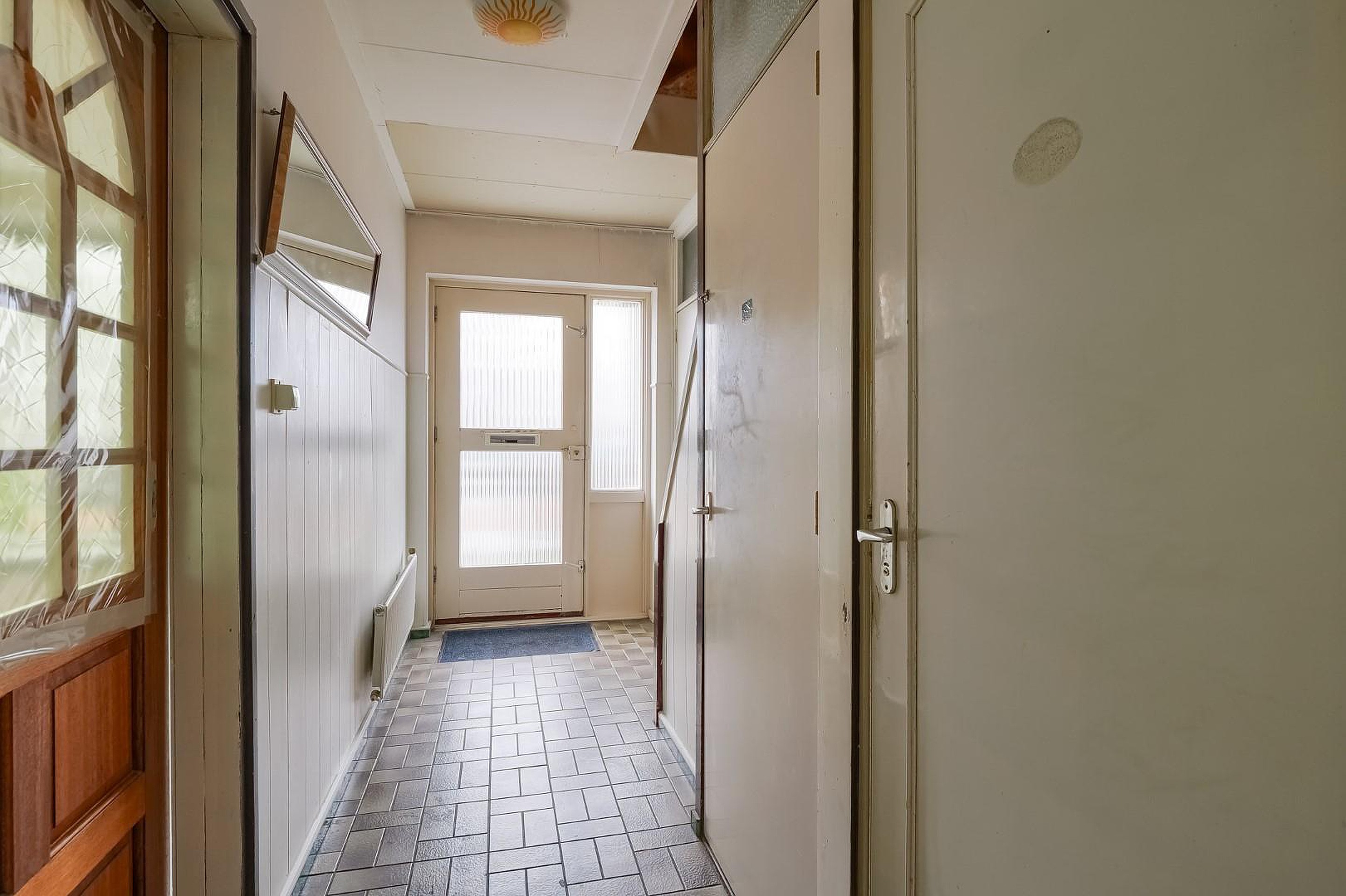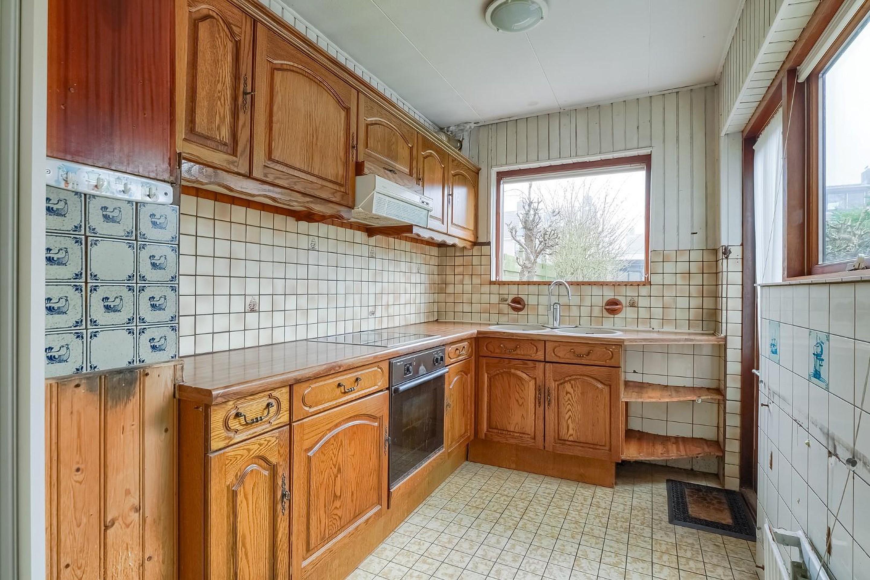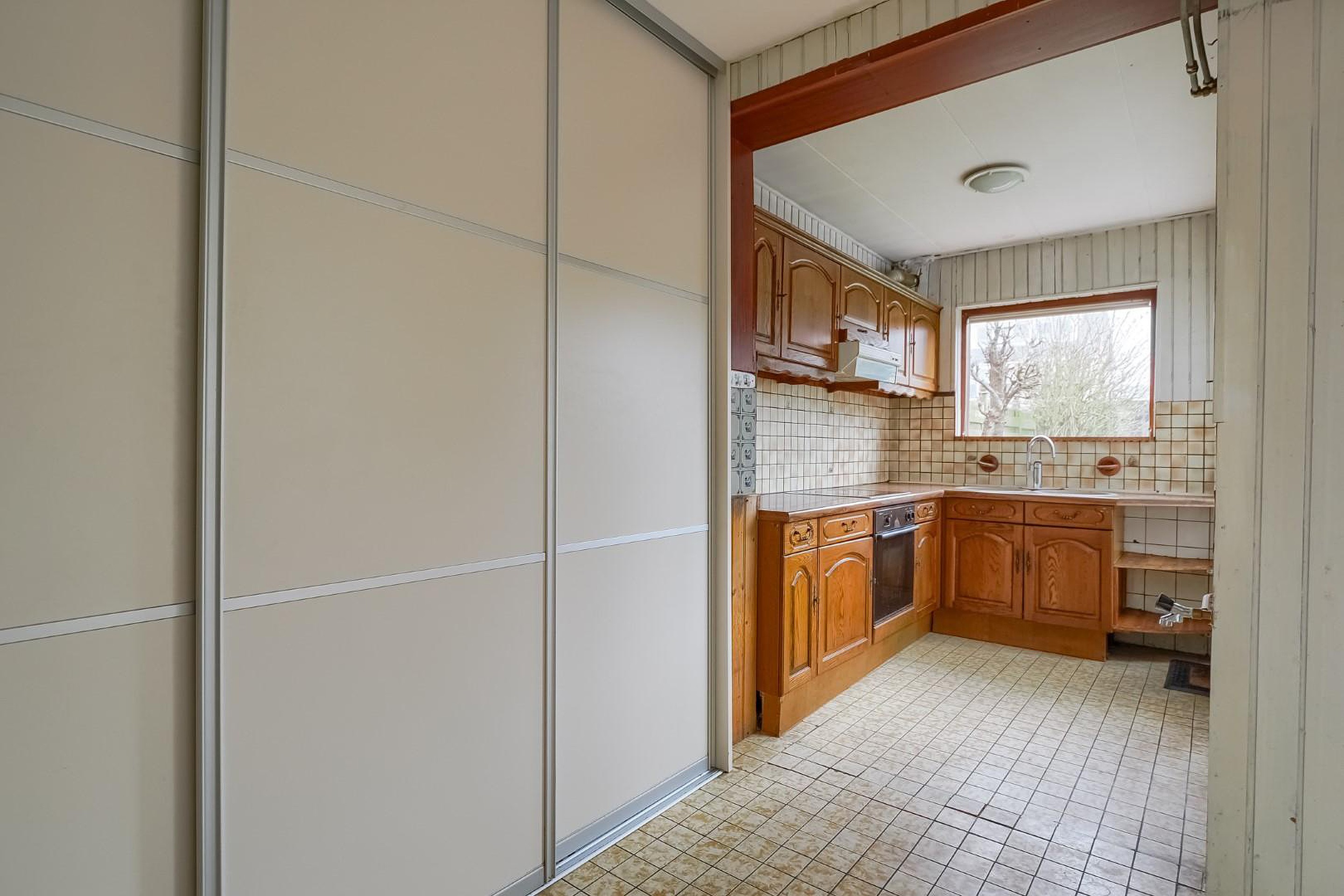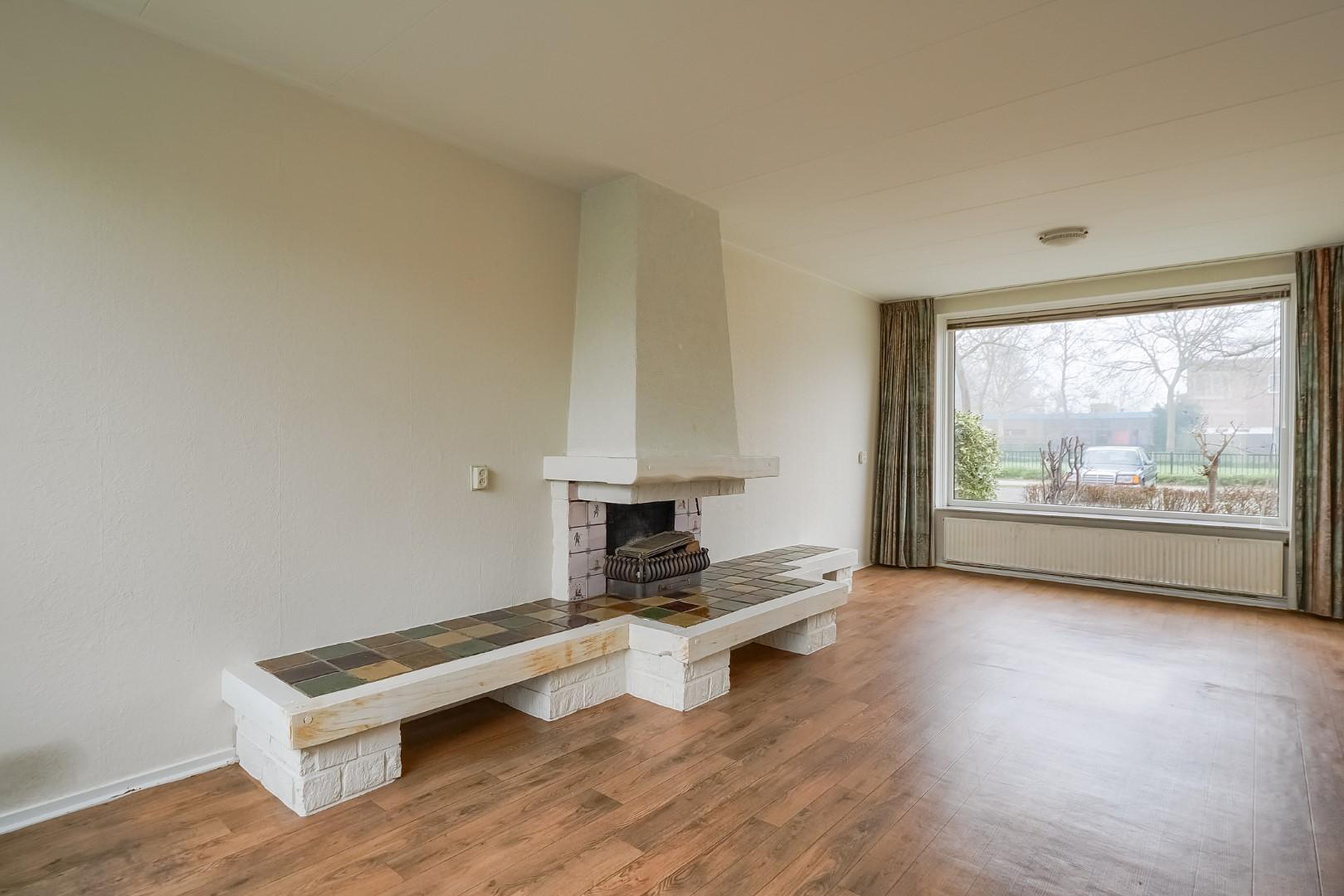 Begane grond Entree/hal met meterkast, trapopgang, trapkast en toilet, keuken in uitbouw, woonkamer met rookkanaal.