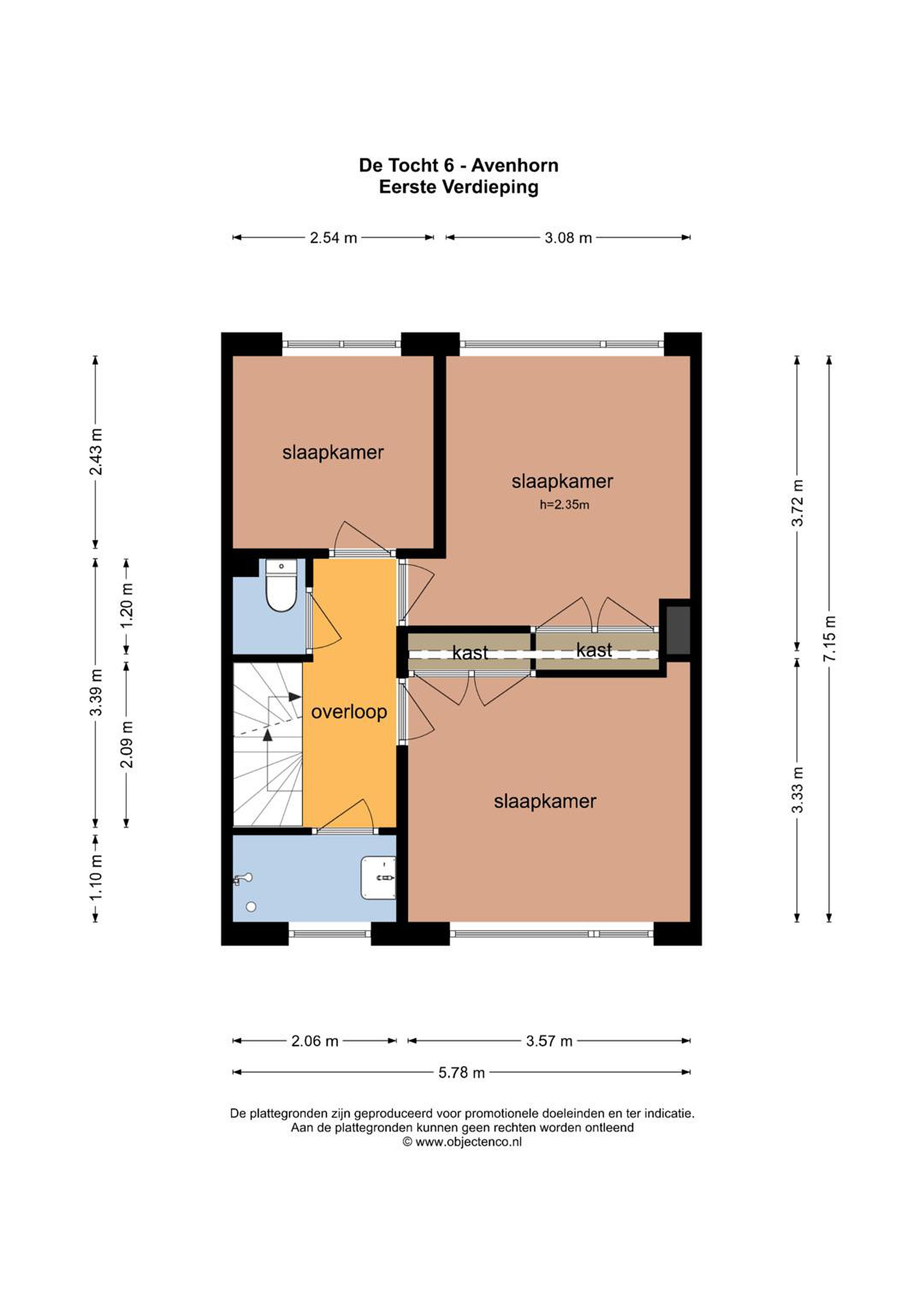 Eerste verdieping Overloop met separaat toilet, nette douche met wastafel, 3 slaapkamers waarvan 2 met vaste kasten.