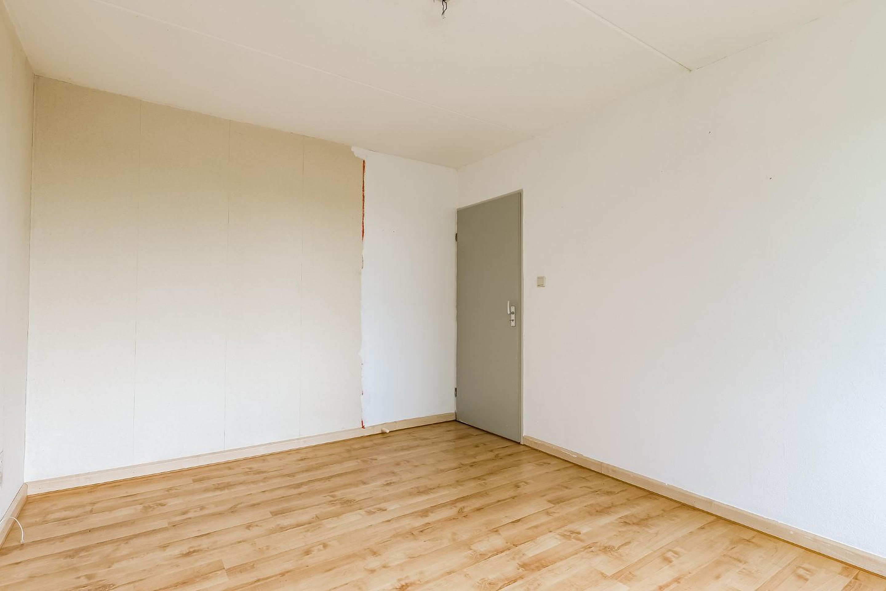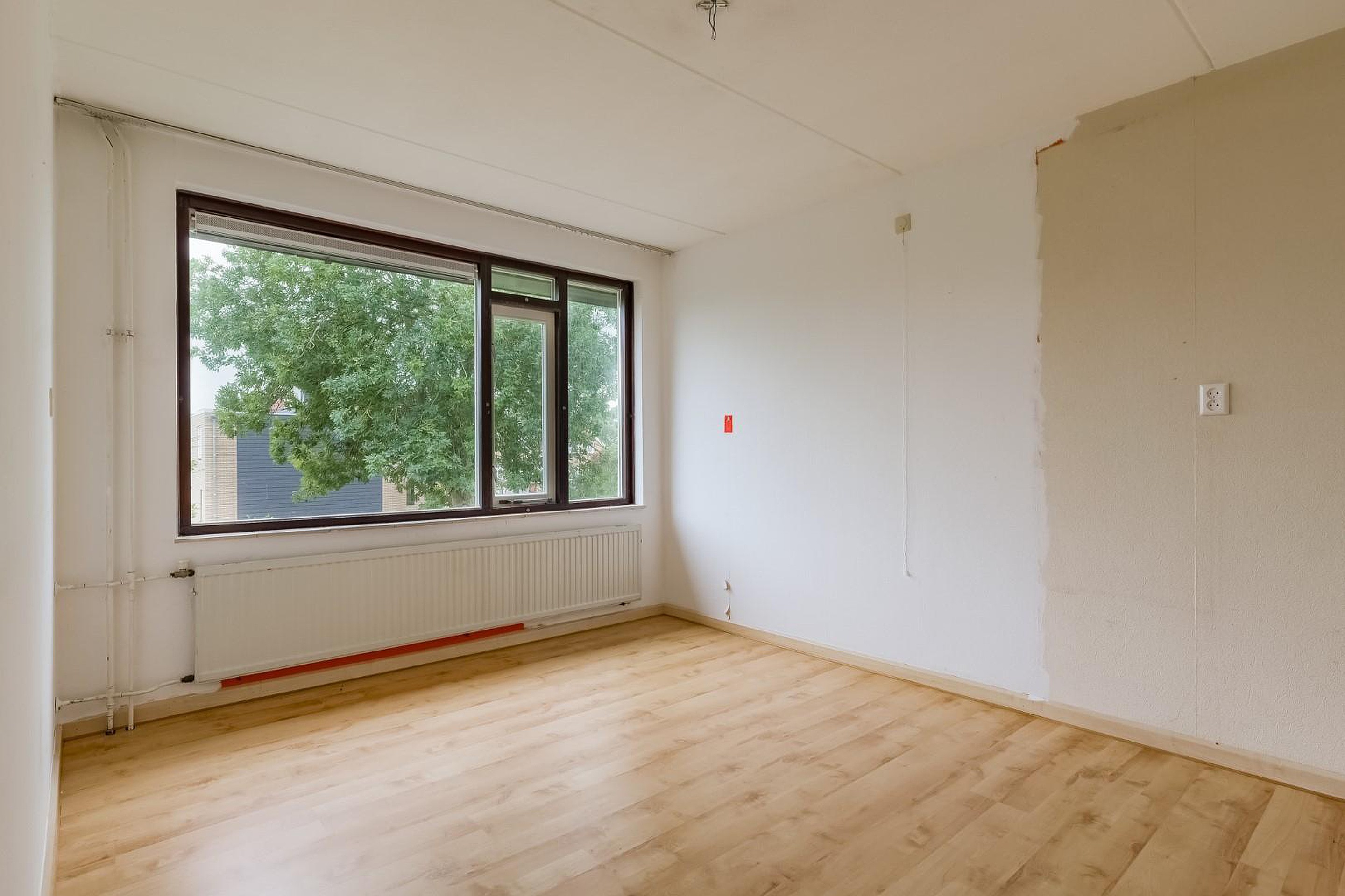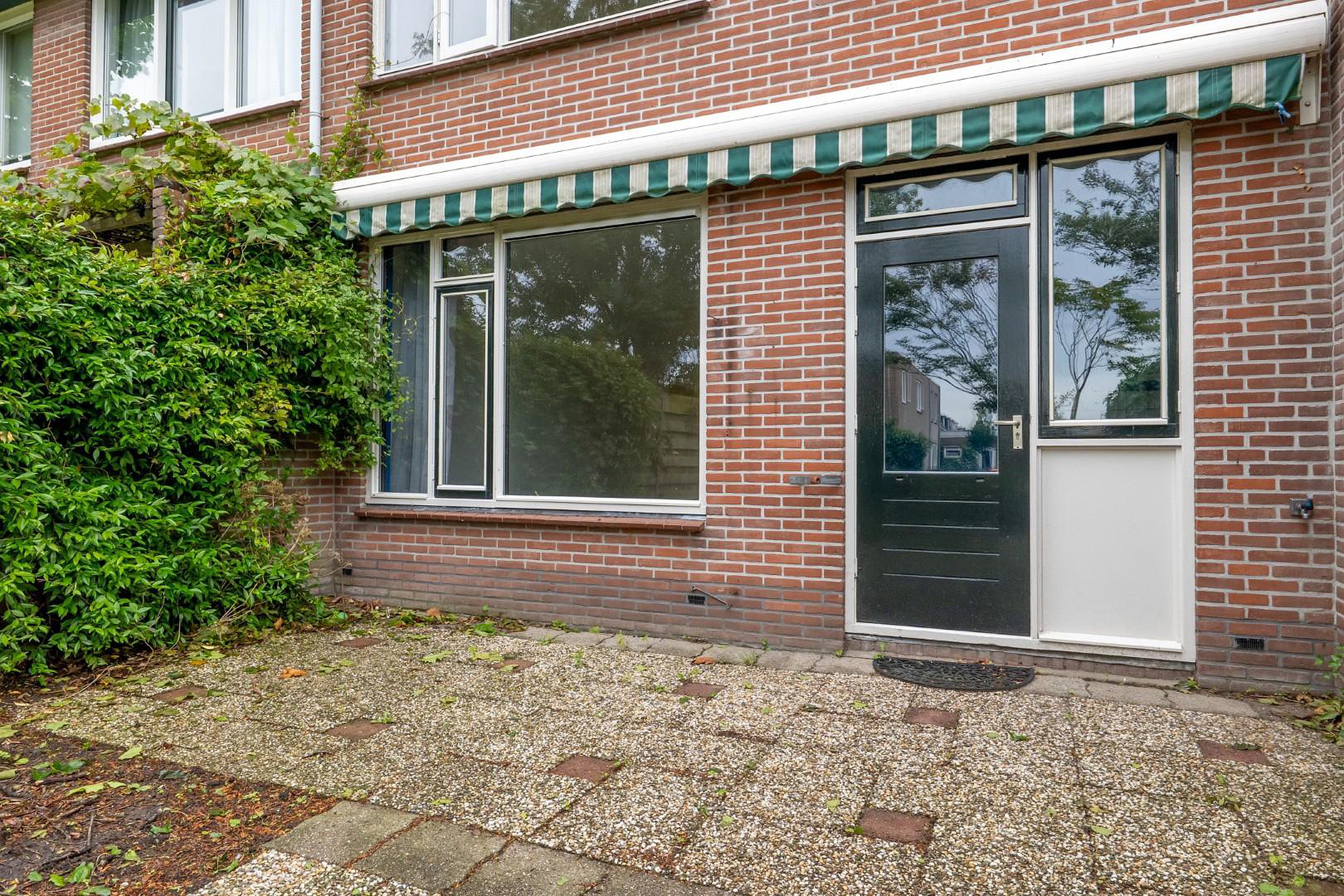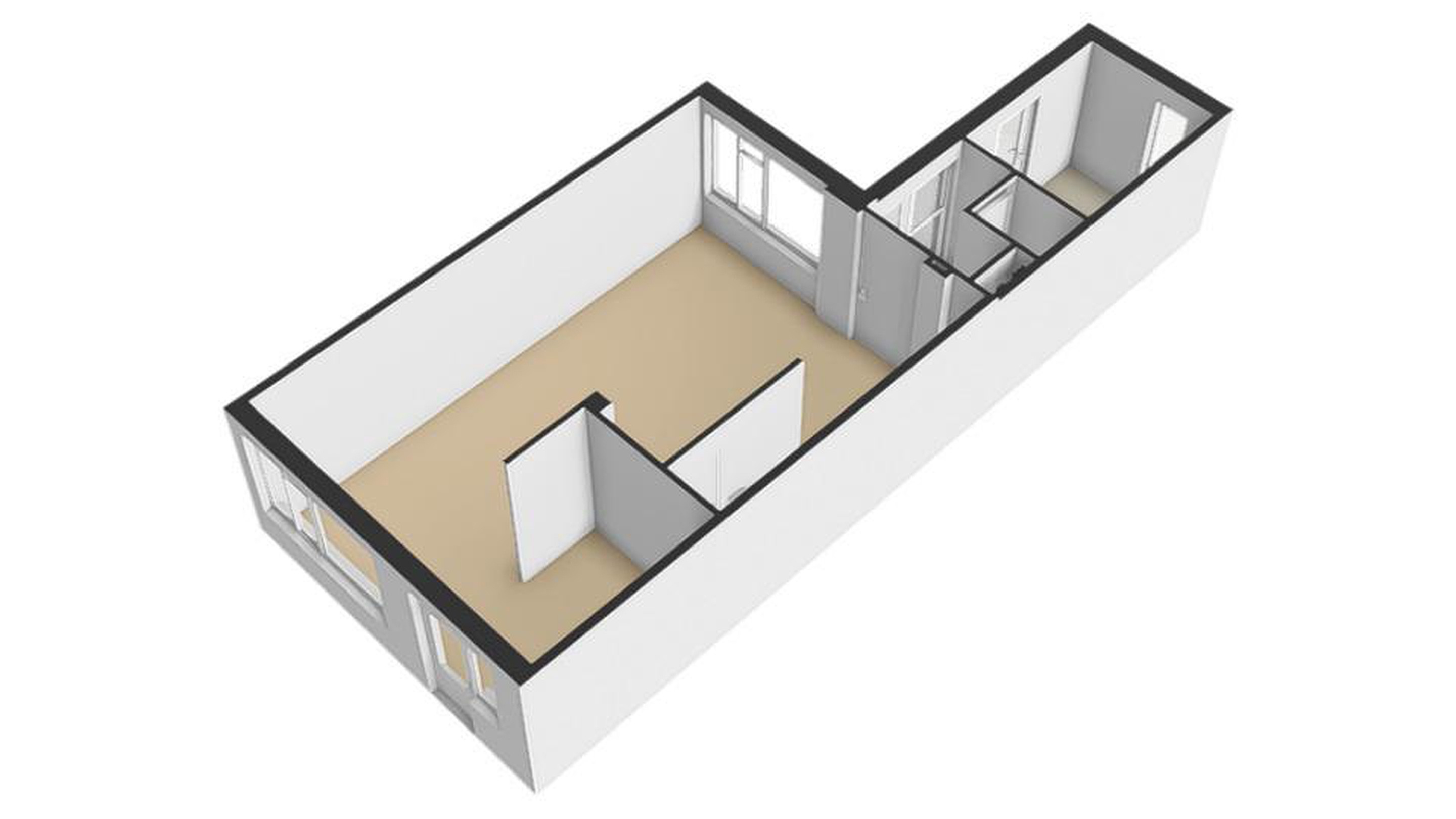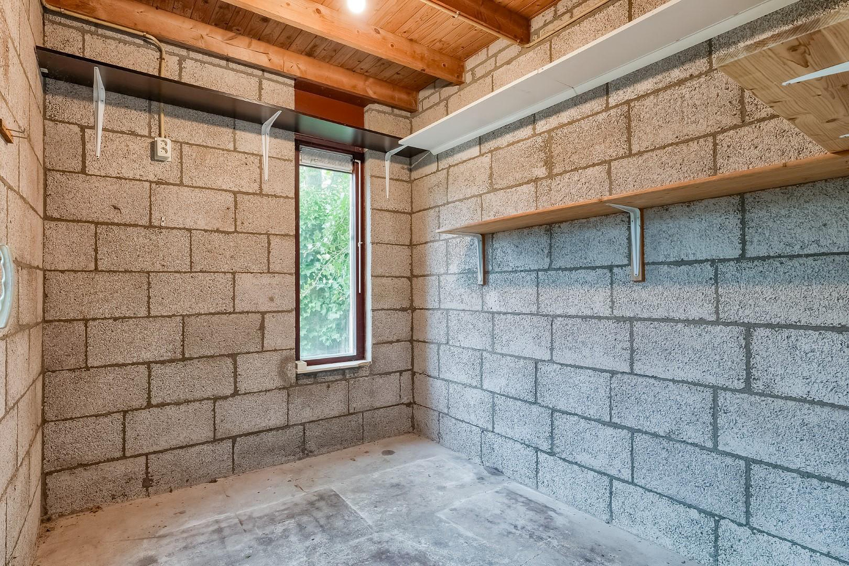 Entree/hal met toegang naar berging, toilet, meterkast. Woonkamer met trapopgang en trapkast, eenvoudige keuken.