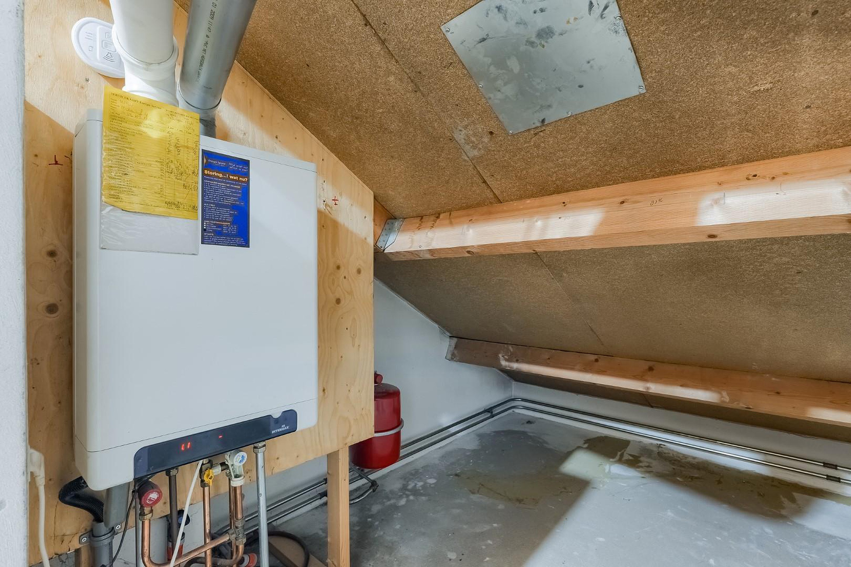 Vaste trap naar 2e verdieping met overloop met cv opstelling en wasmachineaansluiting, 4e slaapkamer.