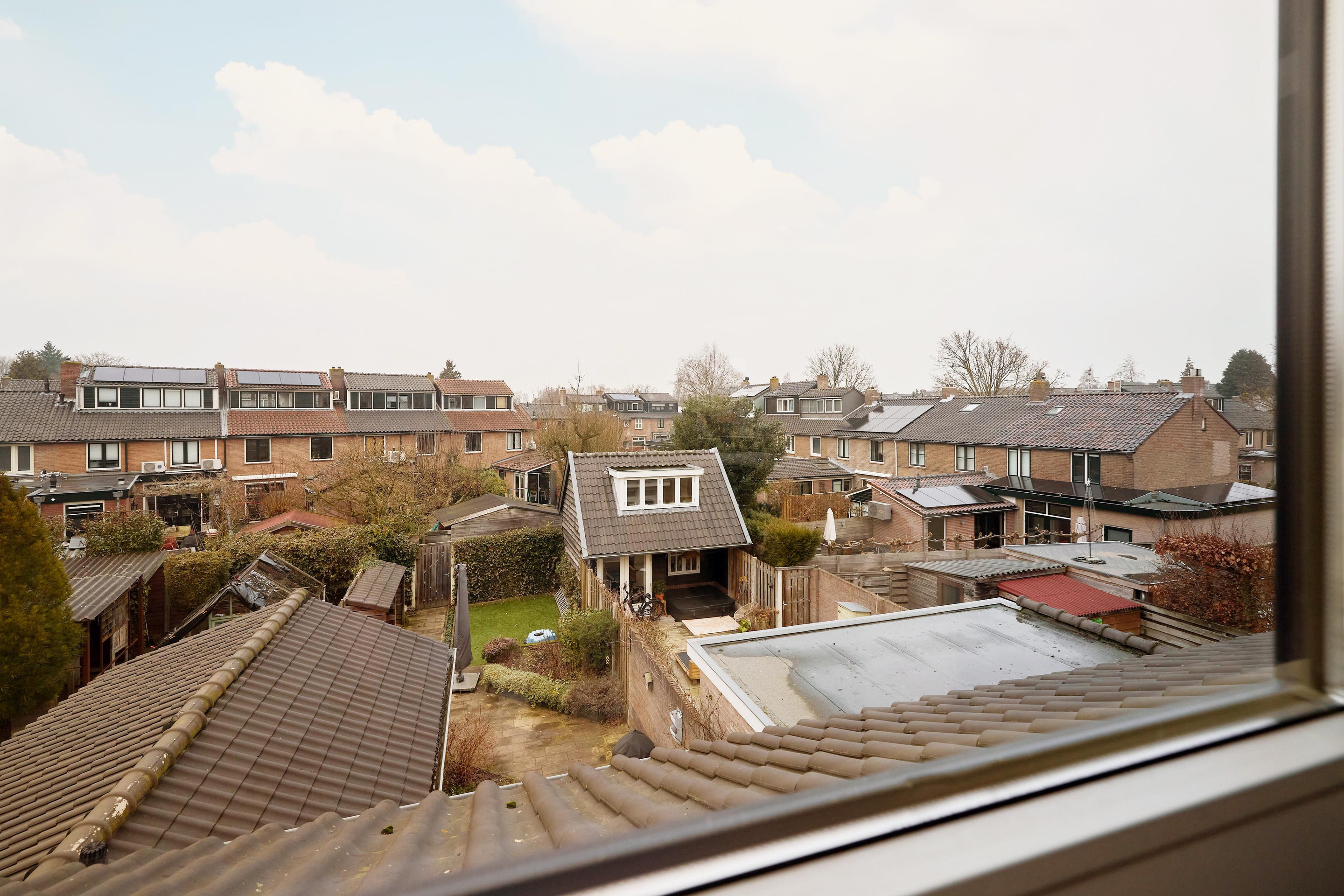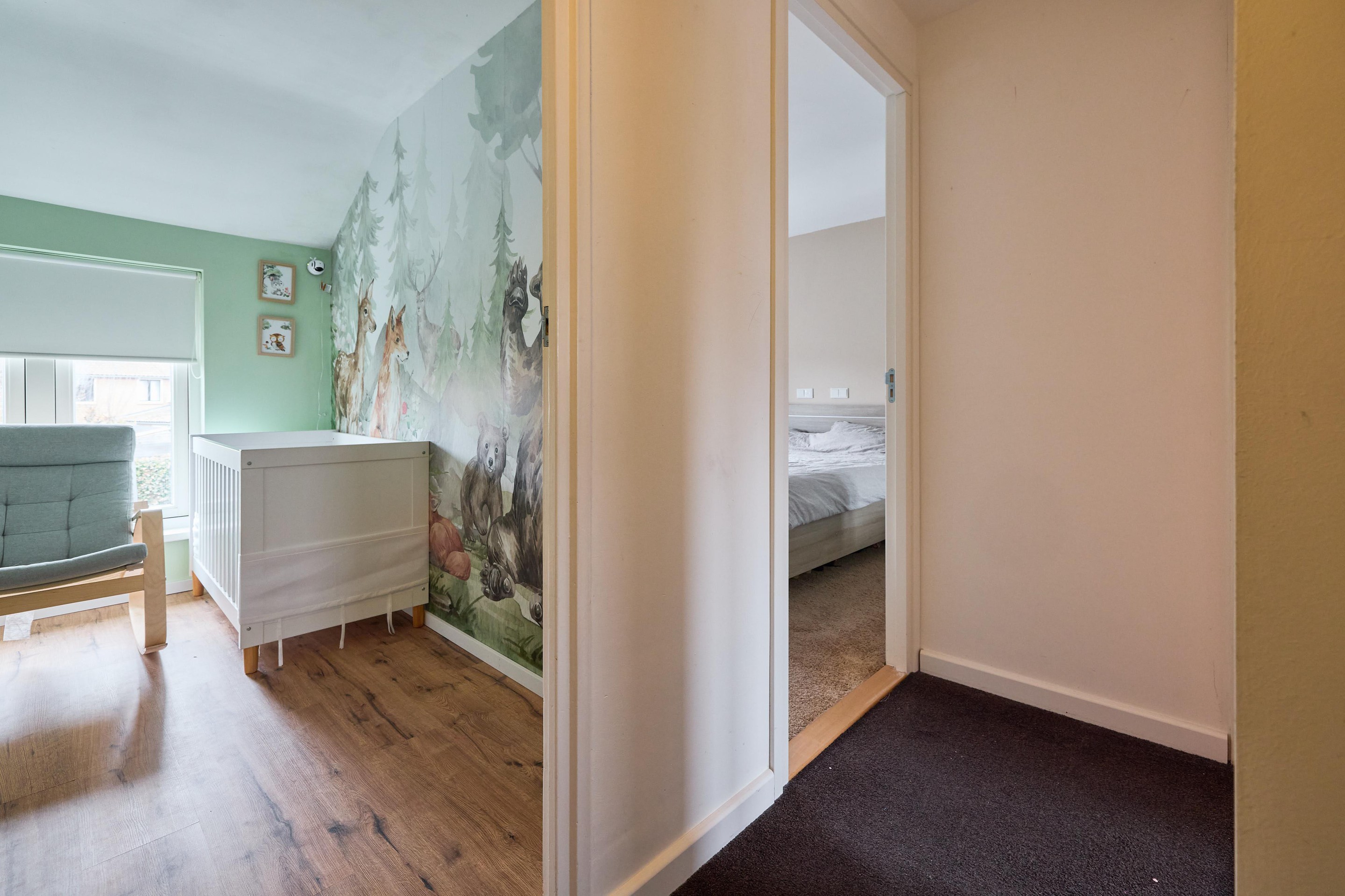 Tweede verdieping Via de vaste trap bereik je de tweede verdieping met overloop en een ruime vierde slaapkamer. Dankzij de brede dakkapel aan de achterzijde is dit een volwaardige en lichte kamer met een prettige stahoogte. Ideaal als extra slaapkamer, werkruimte of tienerkamer. De airconditioning zorgt hier bovendien voor extra comfort. Vanuit het raam kijk je vrij uit over de achterliggende tuinen.