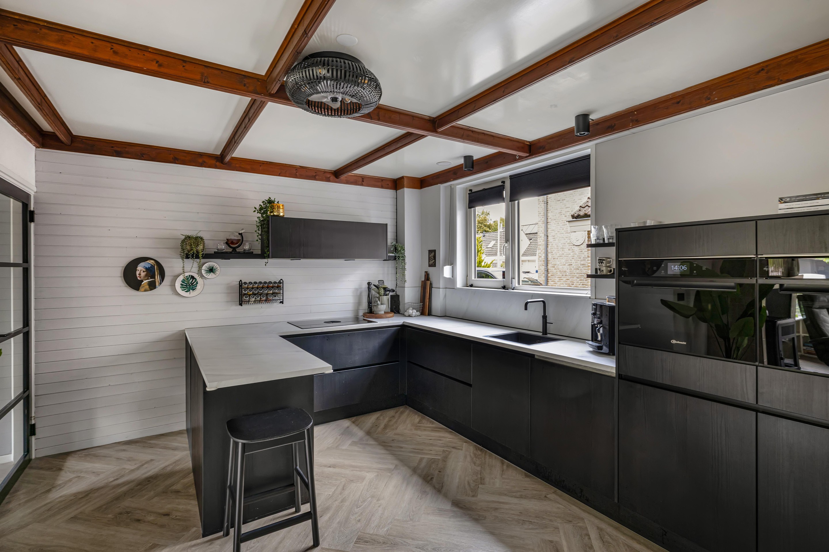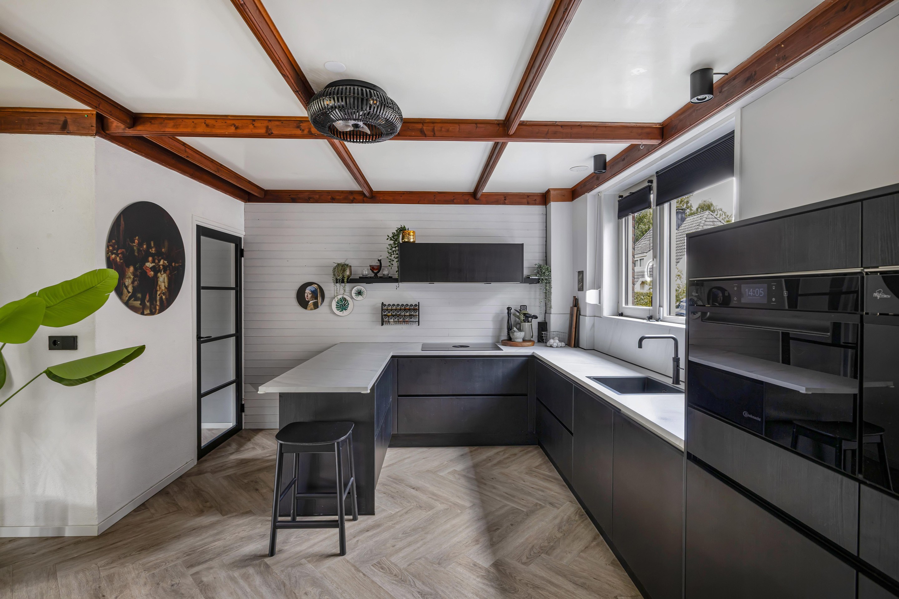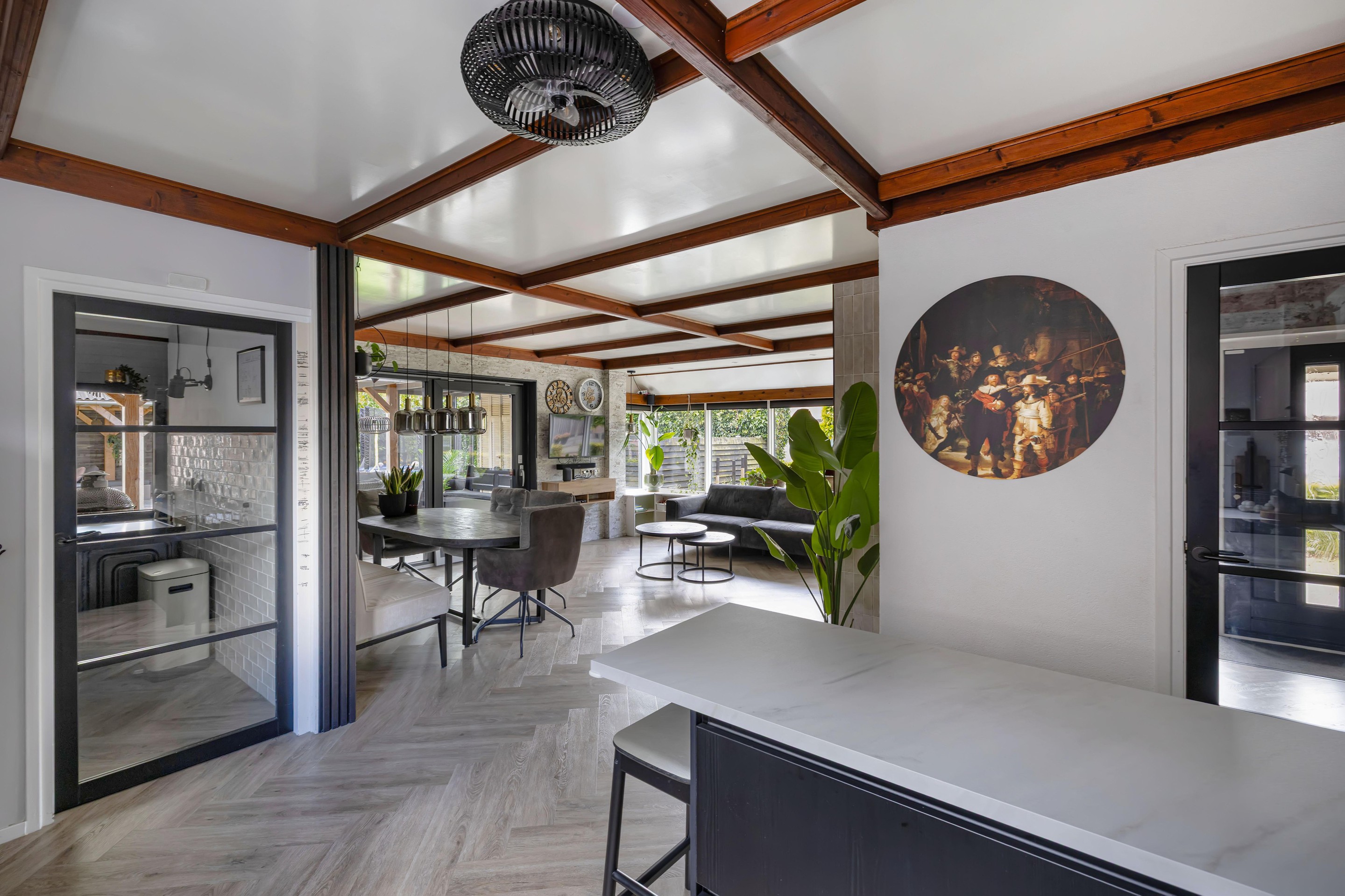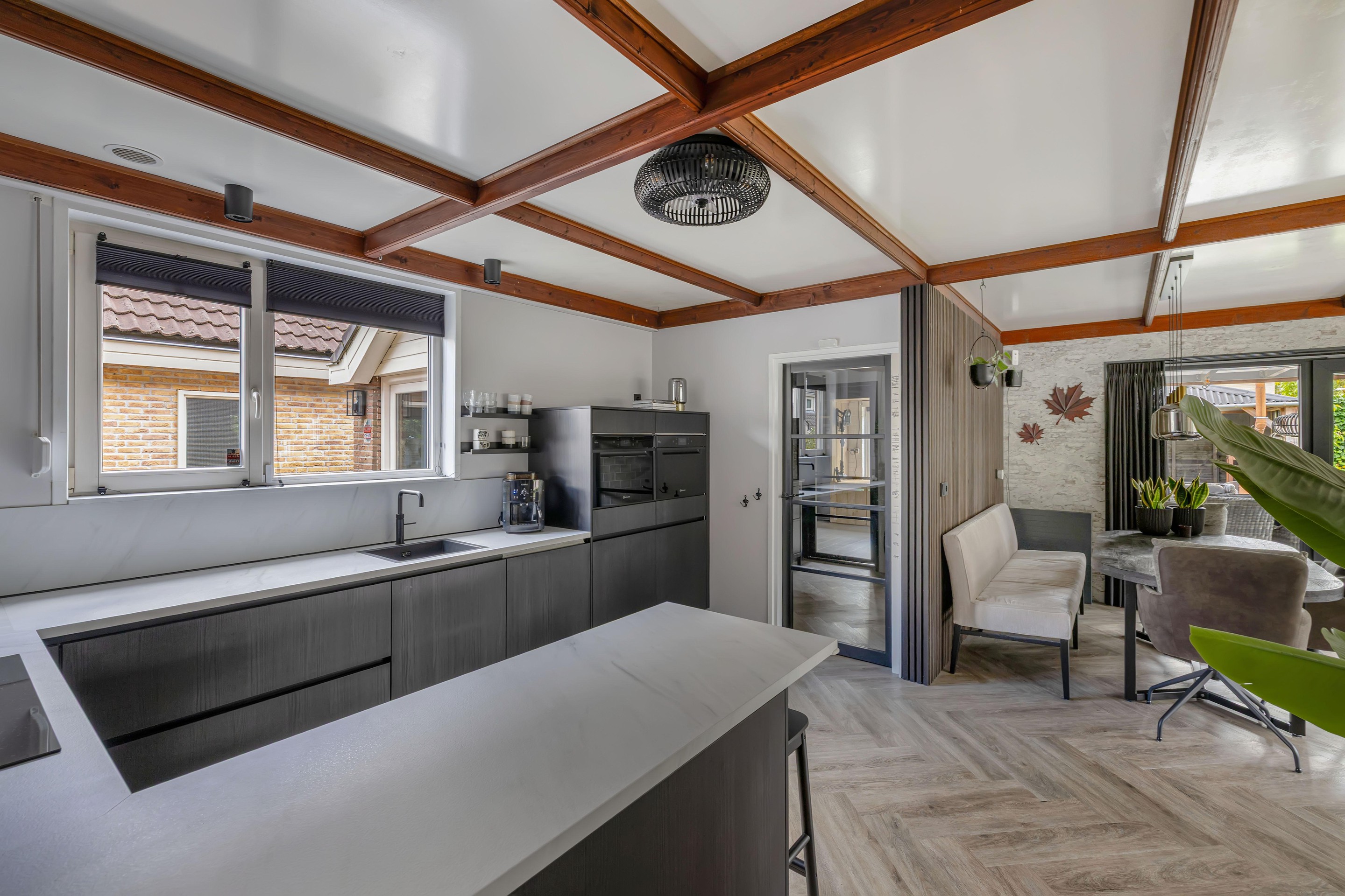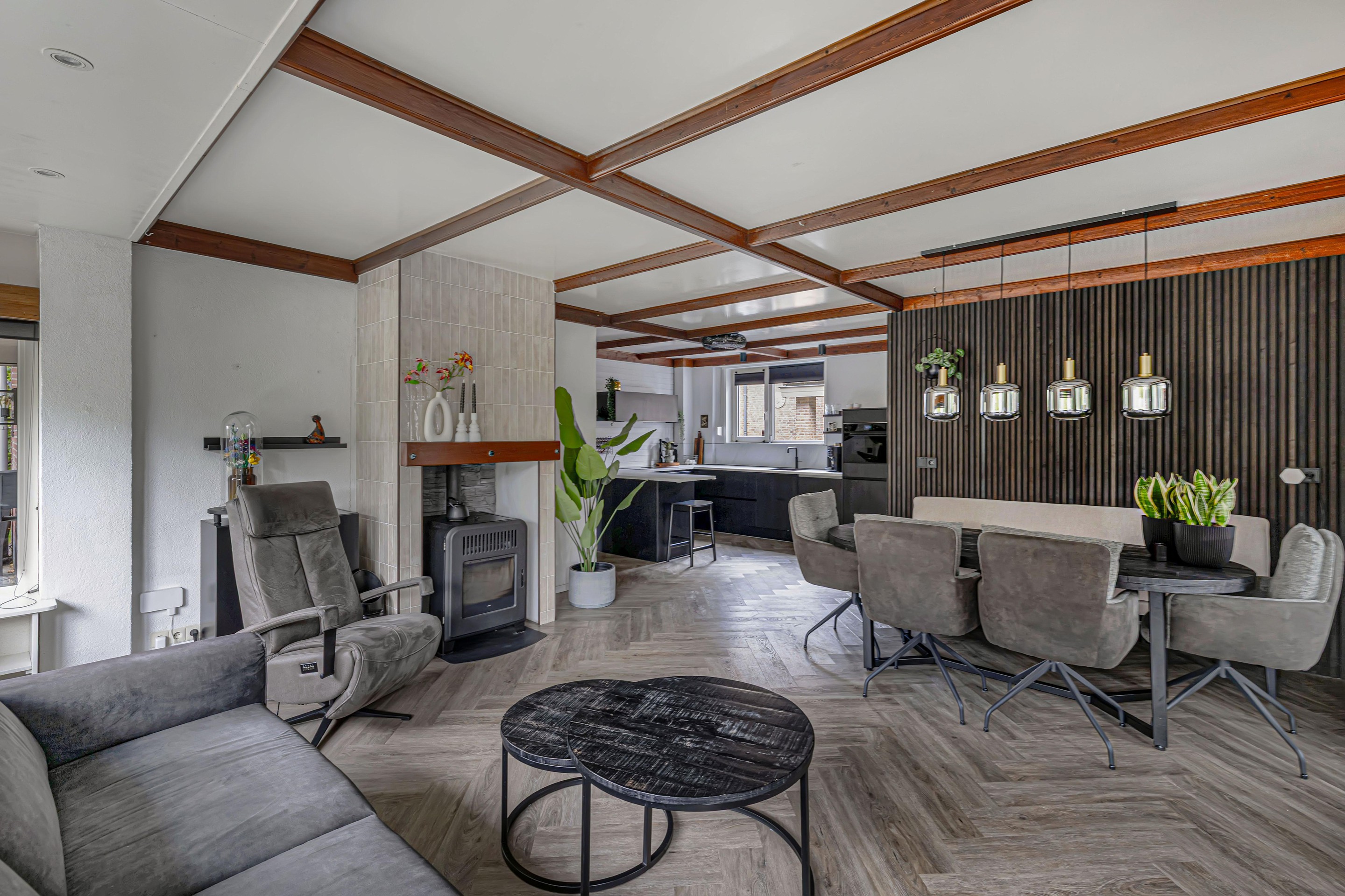- Visgraat PVC-vloer in woonkamer en keuken