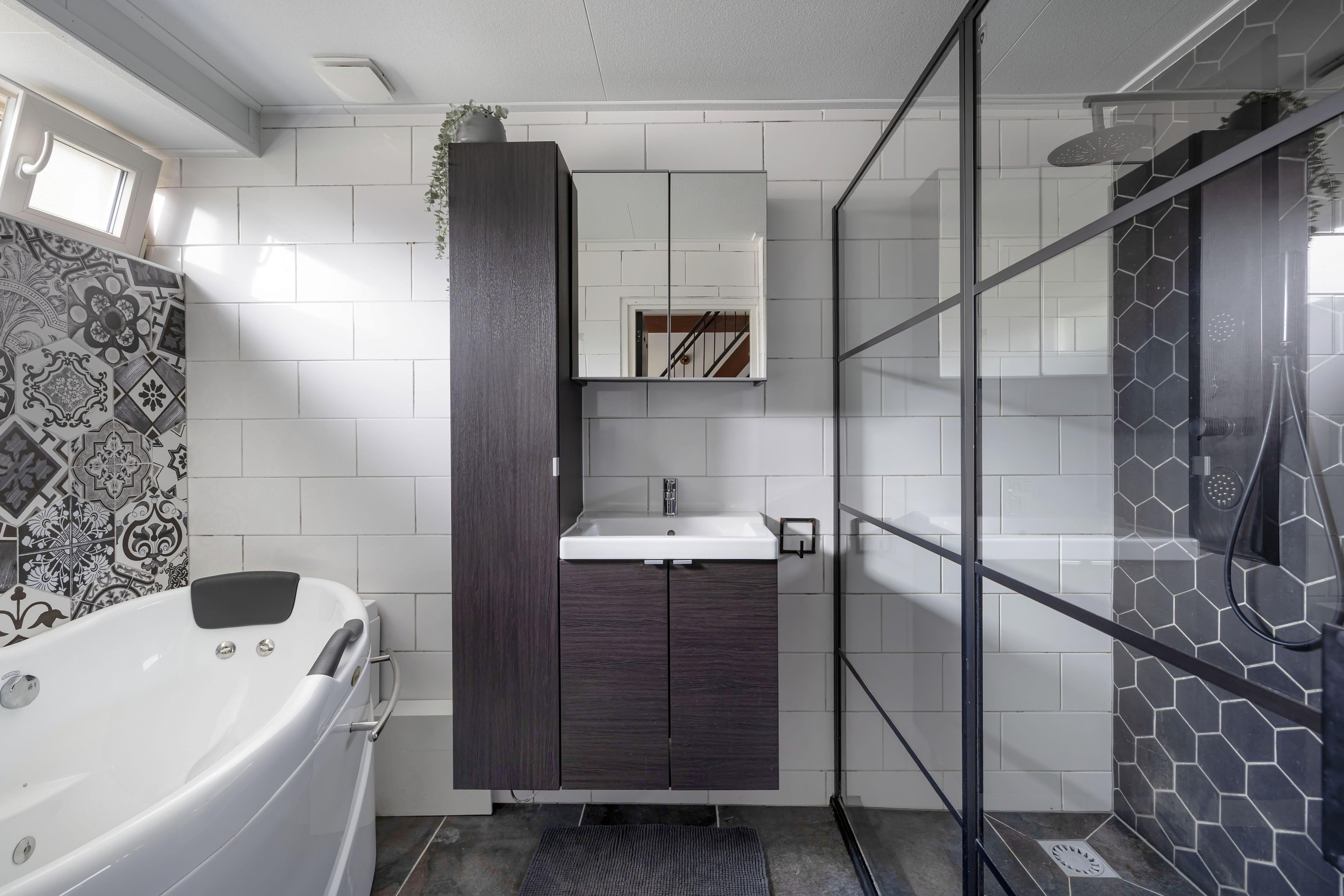 De begane grond biedt daarnaast een slaapkamer en een luxe badkamer uit 2020, compleet met ligbad, dubbele regendouche en modern wastafelmeubel. U kunt hier nu én in de toekomst comfortabel gelijkvloers wonen.