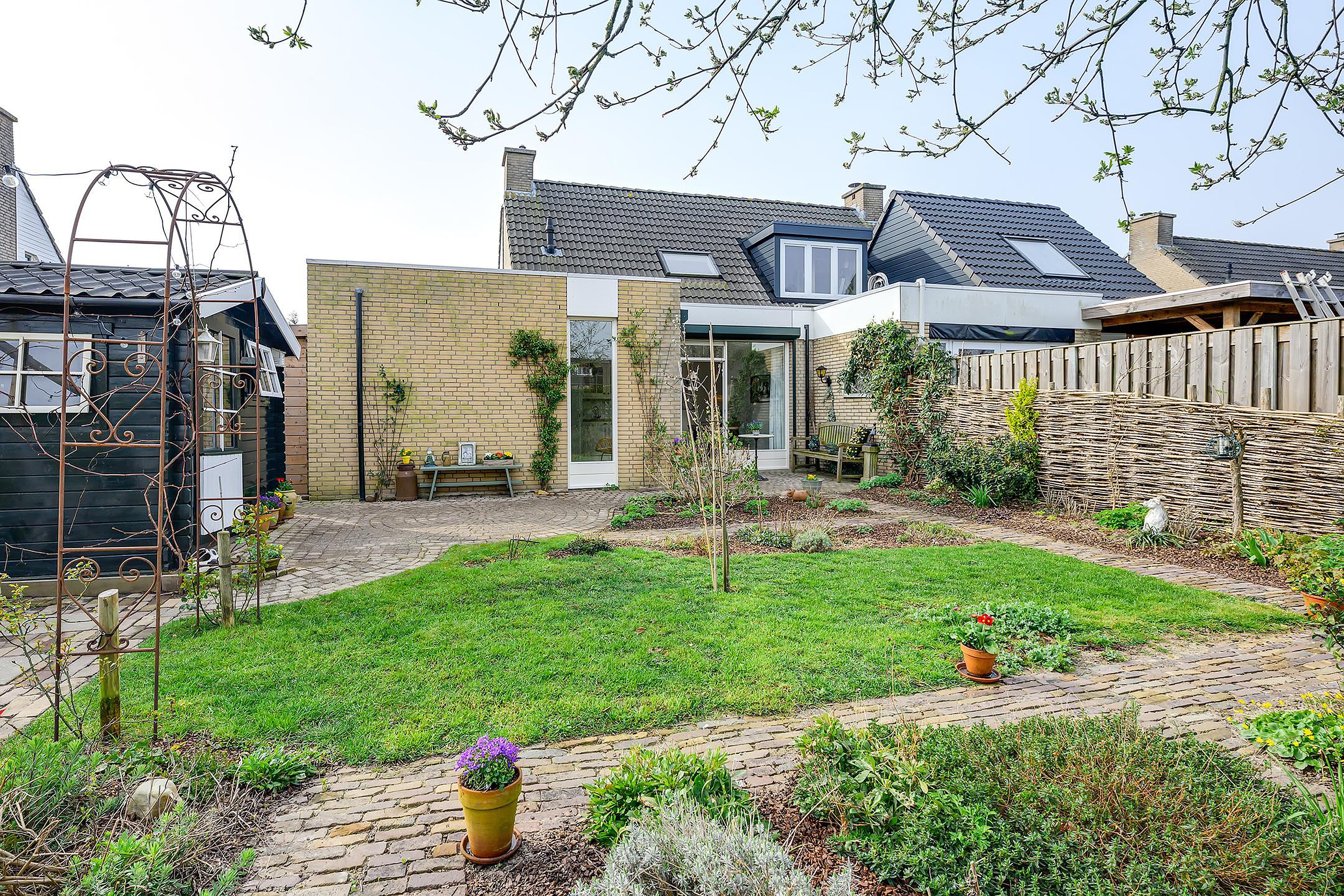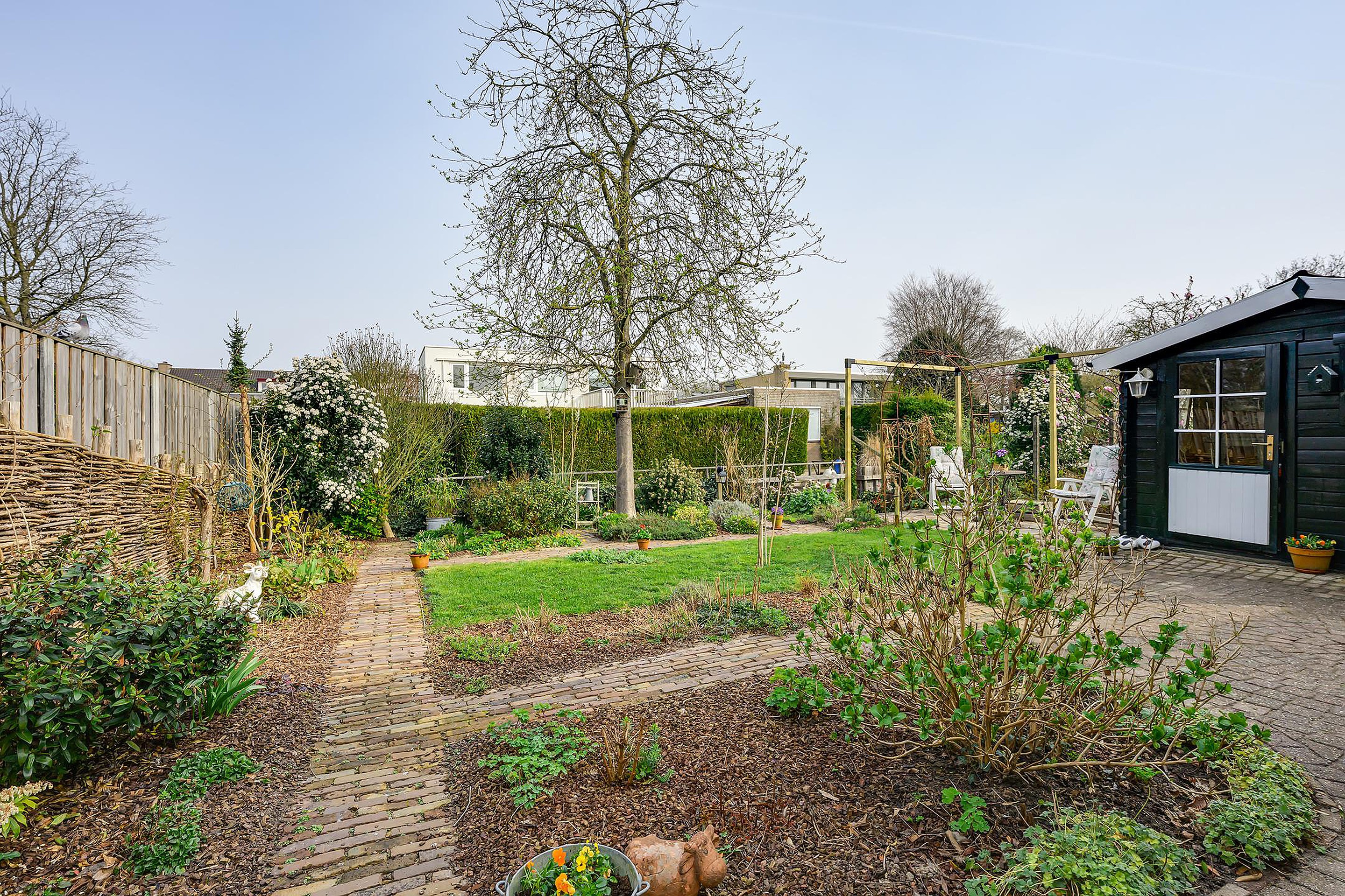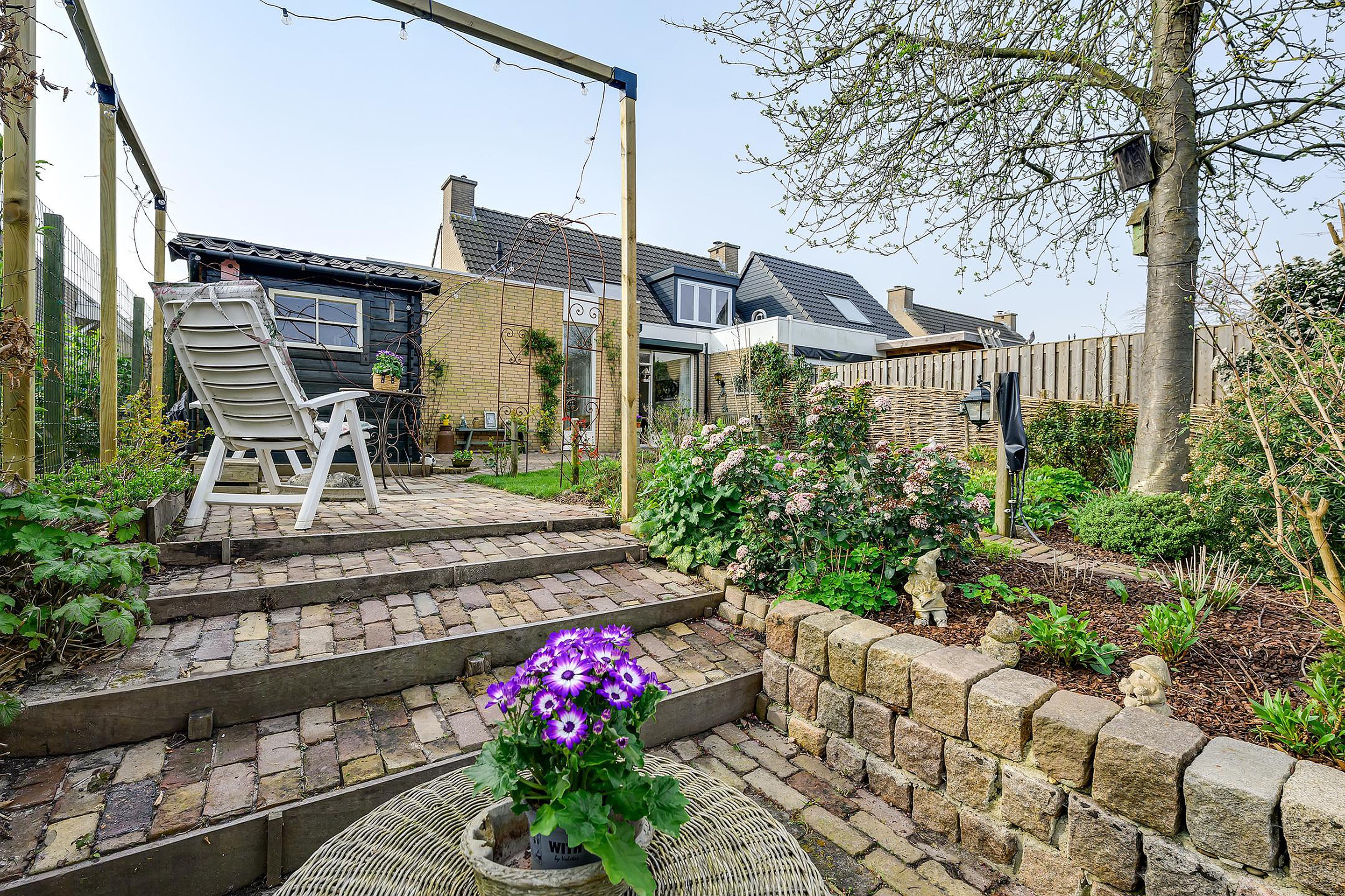 De achtertuin is een absoluut pluspunt: groen aangelegd, met meerdere zitplekken en direct gelegen aan een sloot. Hier geniet je van rust, natuur en privacy, een plek waar je écht tot jezelf komt. Omdat de tuin heerlijk diep én breed is, heb je de hele dag het zonnetje in de tuin!
