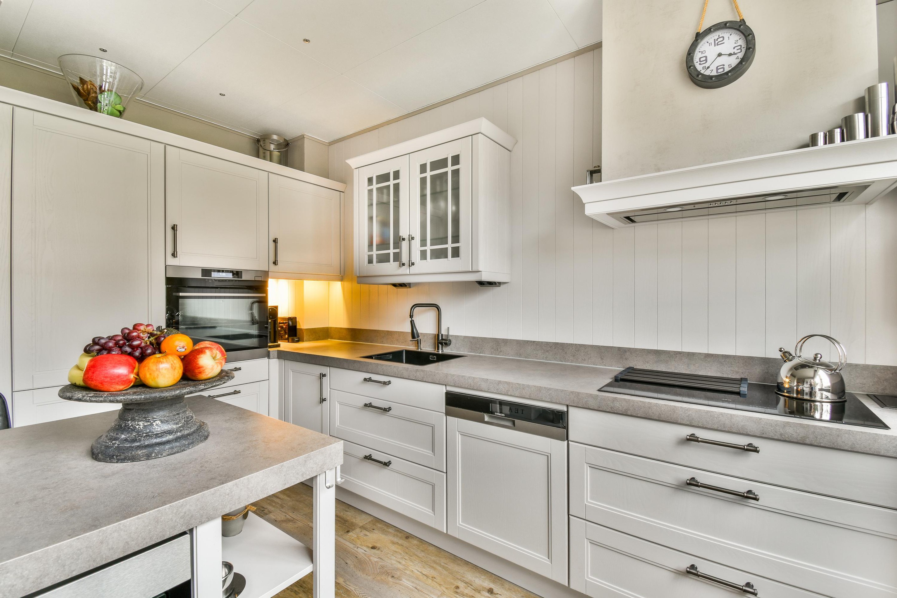 Via de entree kom je in de ruime hal met toilet, meterkast, de trap naar boven en toegang tot de woonkamer. De woonkamer is licht en sfeervol, met een prettige indeling voor zowel een gezellige zithoek als een royale eethoek. De openslaande deuren zorgen voor een fijne verbinding met buiten en halen het daglicht rijkelijk naar binnen. De keuken is aan de voorzijde, biedt volop werk- en bergruimte en is compleet met inbouwapparatuur: een combimagnetron, inductie kookplaat, afzuigkap, vaatwasser met verlichting, koelkast en een grote oven.