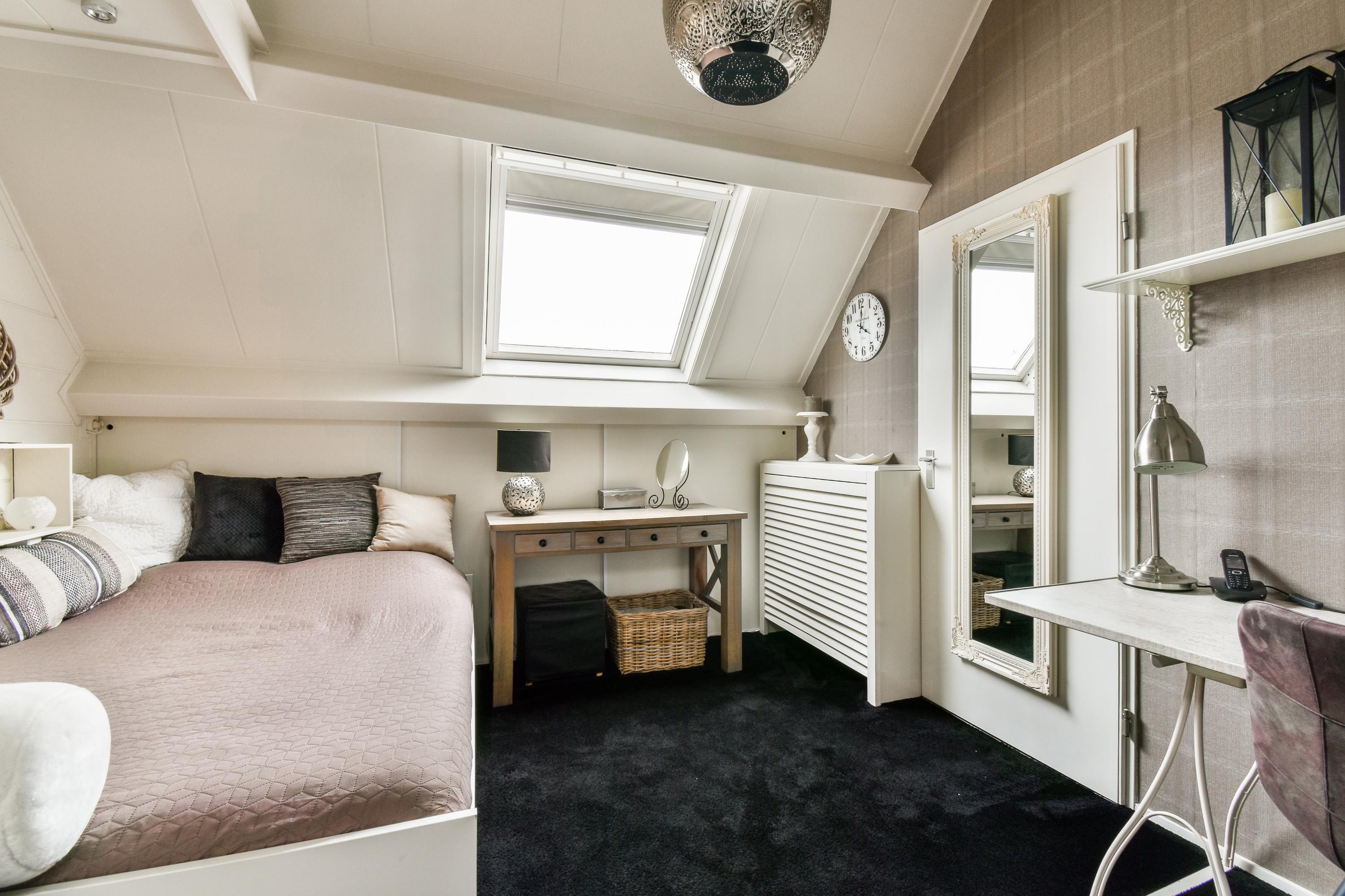 Via de vaste trap bereik je de tweede verdieping met een ruime vierde slaapkamer. Dankzij de hoogte voelt deze verdieping verrassend ruim aan. Daarnaast is er extra bergruimte aanwezig met hier plaats voor de wasmachine, droger en de opstelplaats voor de CV-ketel. Achter de knieschotten is bergruimte aanwezig voor seizoensspullen.