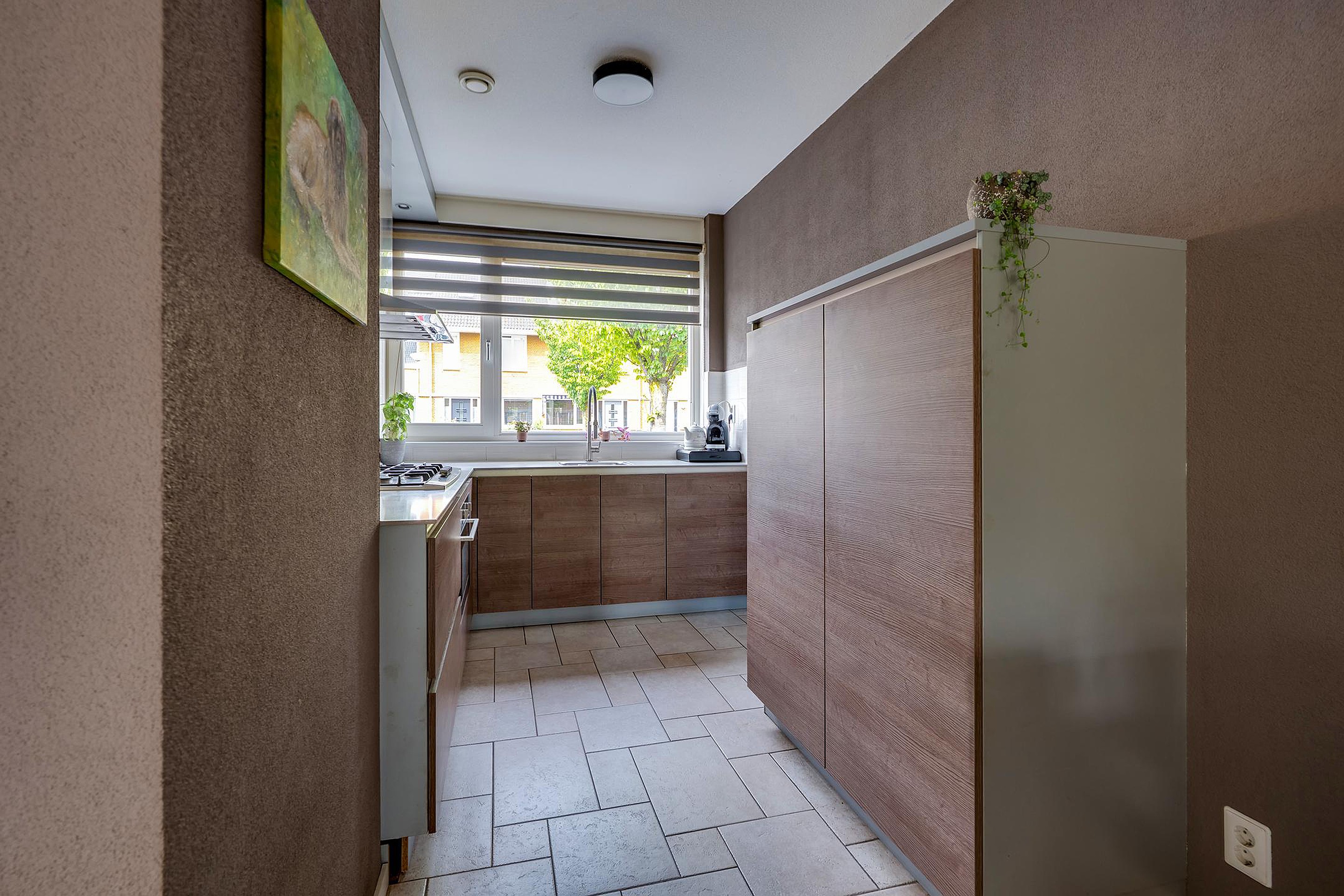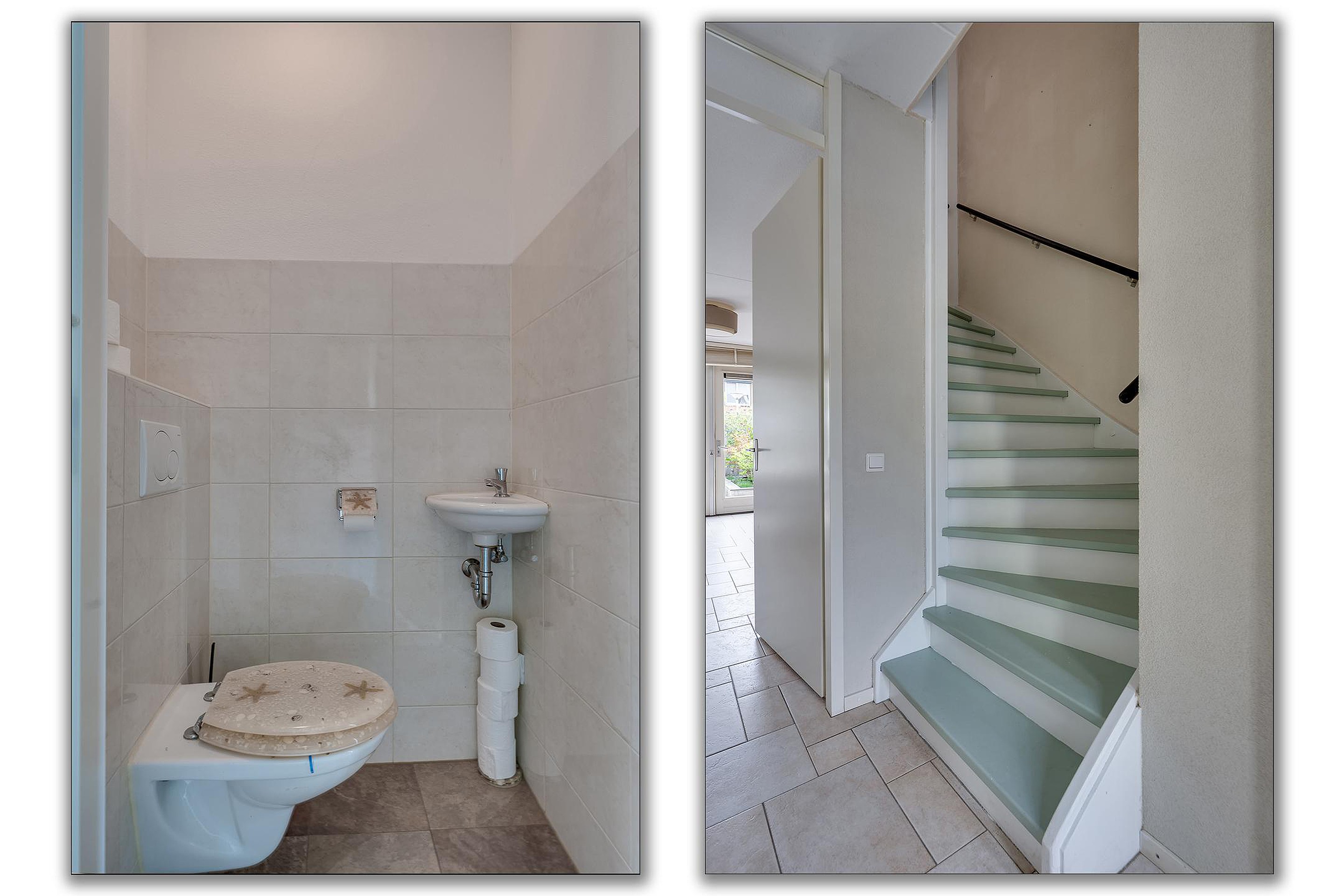 Via de voordeur kom je in de hal met toegang tot het toilet, de trap naar de eerste verdieping en de woonkamer. Het toilet is voorzien van een hangend toilet en fonteintje. De woonkamer is tuingericht, heerlijk licht door de grote raampartijen en voorzien van openslaande deuren naar de zonnige achtertuin. Aan de voorzijde vind je de luxe, moderne keuken, uitgerust met diverse inbouwapparatuur en veel opbergruimte. De gehele begane grond is voorzien van vloerverwarming.