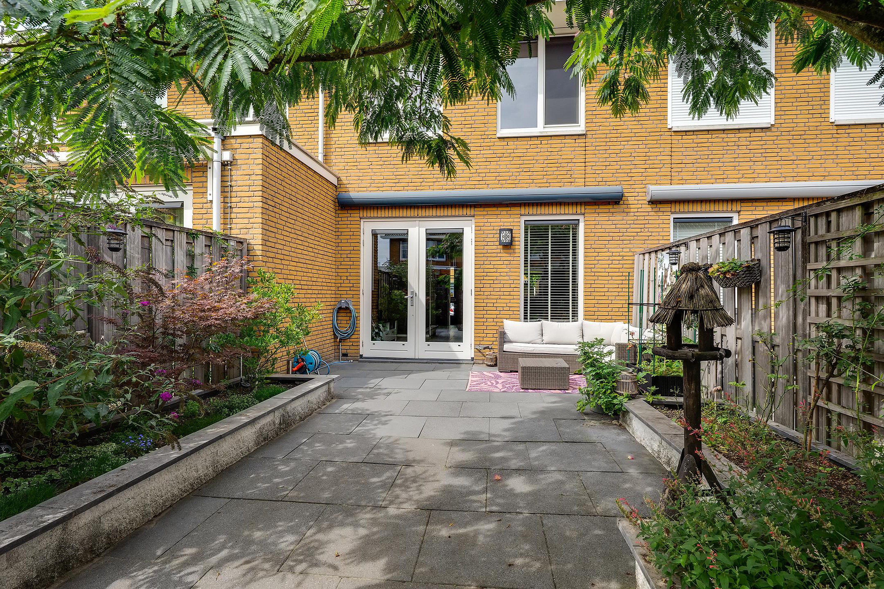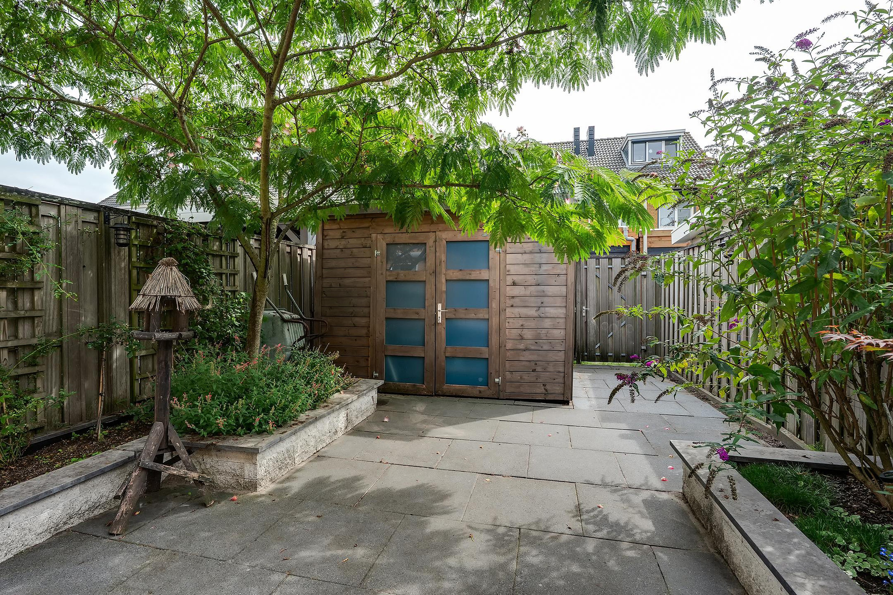 De achtertuin is een heerlijke plek om te genieten van de zon, dankzij de ligging op het zuiden. Achterin de tuin staat een berging, ideaal voor fietsen of tuingereedschap, en er is een achterom aanwezig.