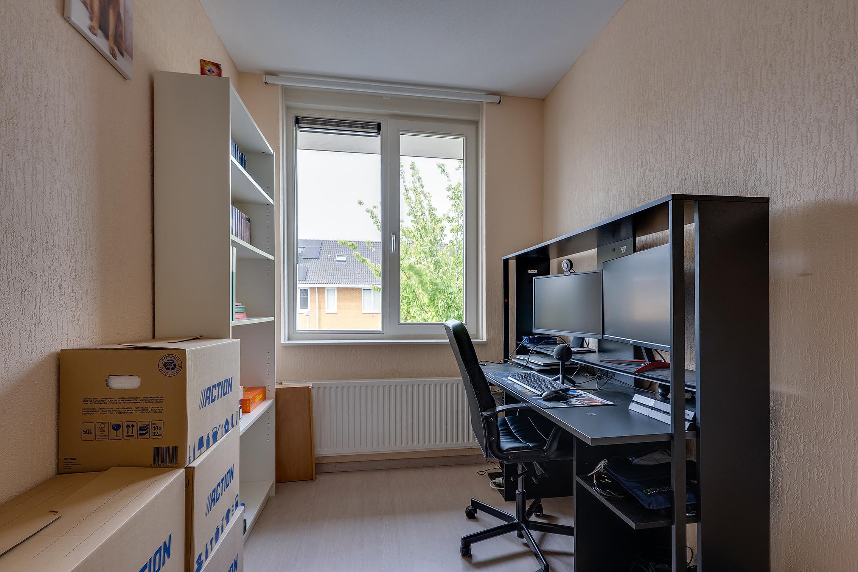 Op de eerste verdieping bevinden zich drie slaapkamers en de badkamer. De badkamer is praktisch ingedeeld en voorzien van een douchecabine, een hoekbad, wastafel meubel met spiegel en hangend toilet.
