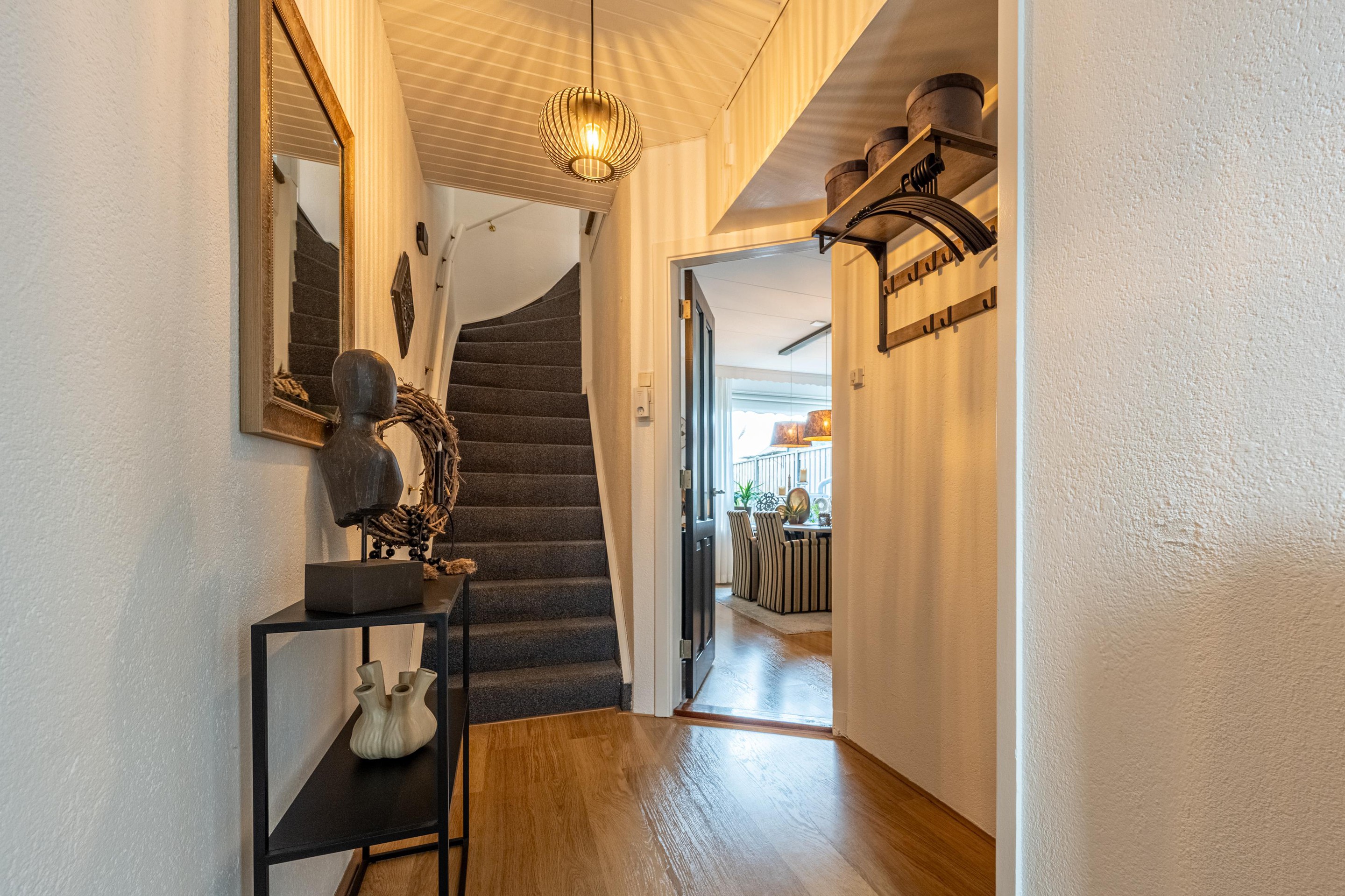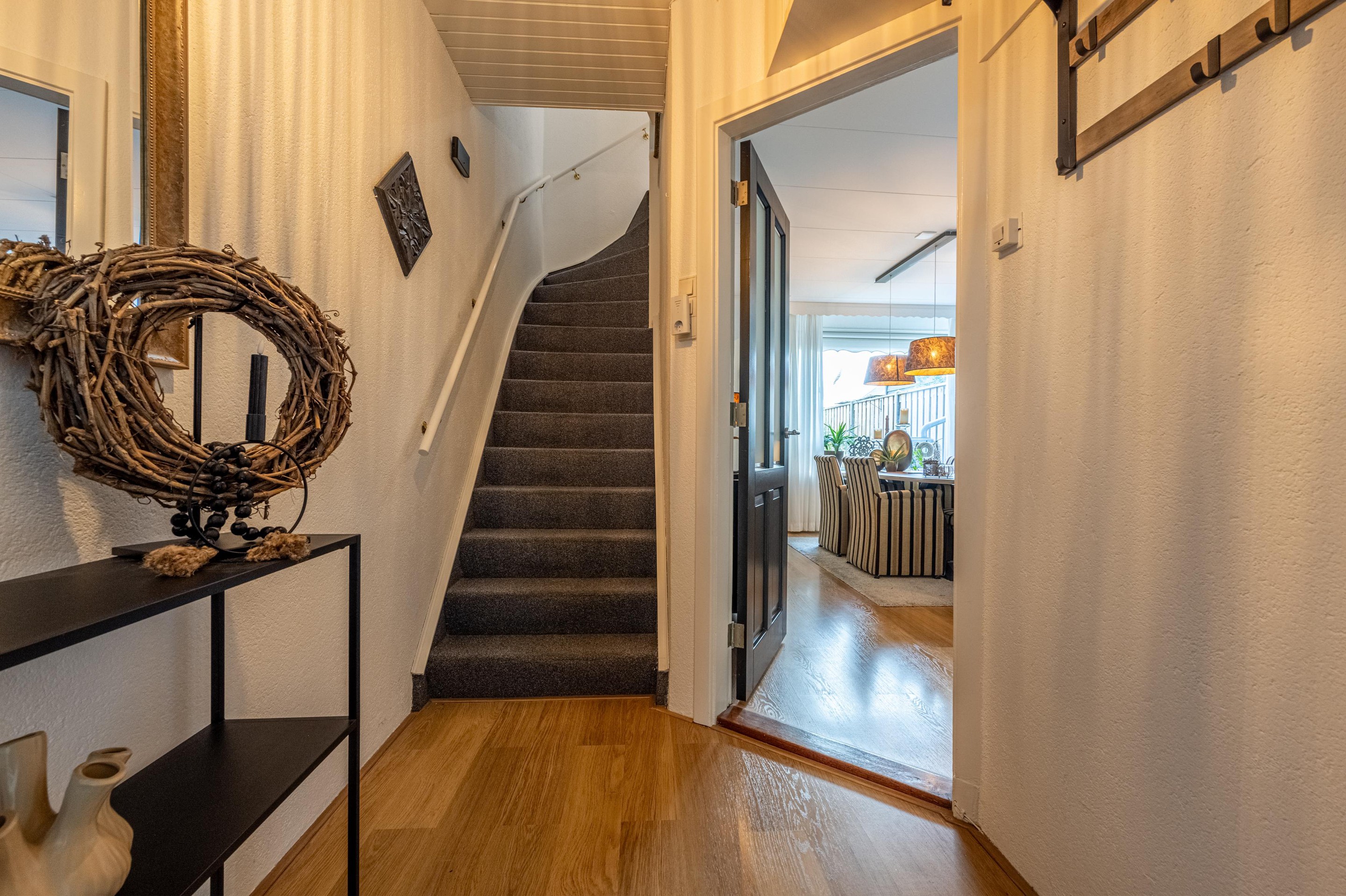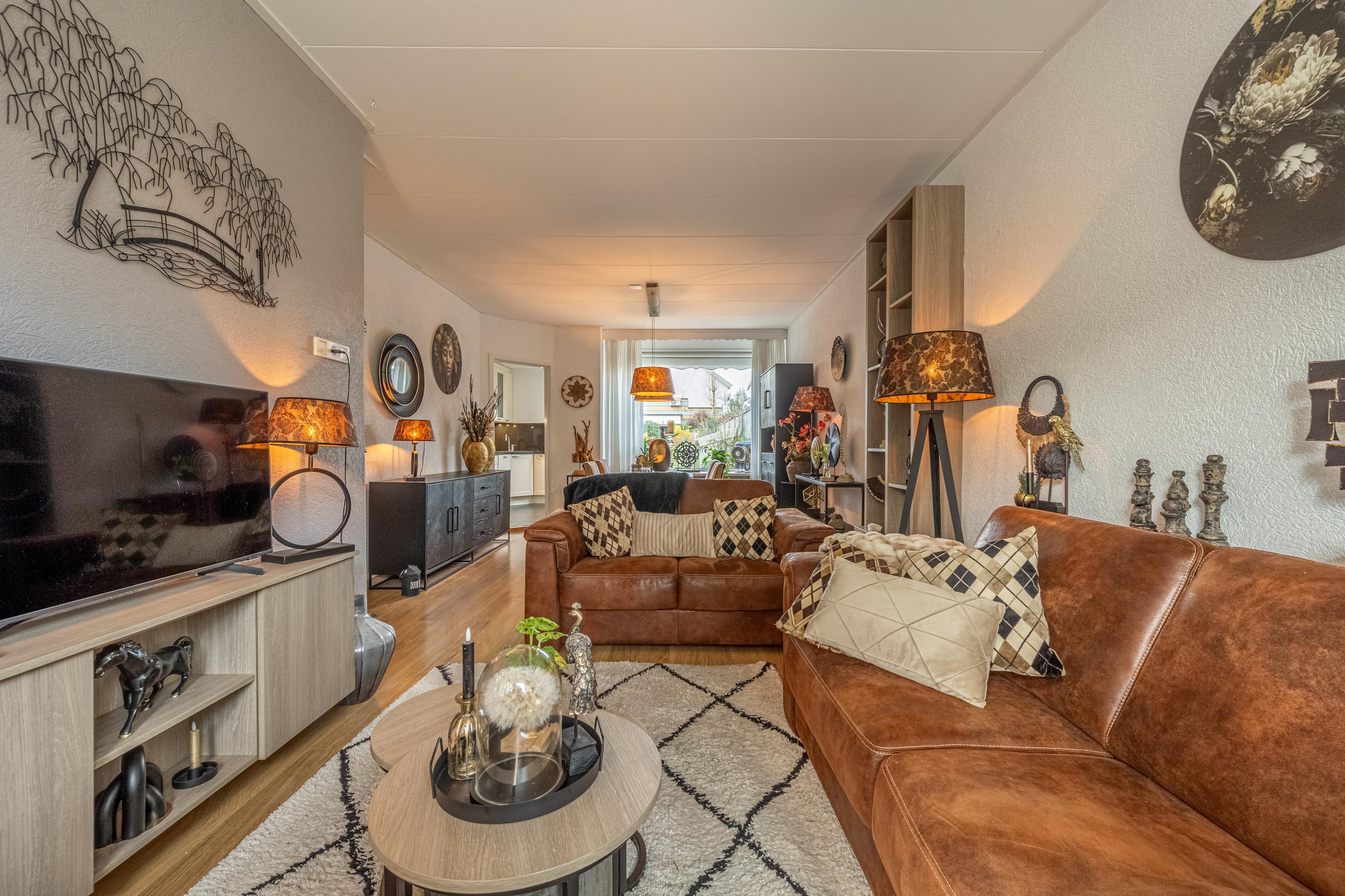 Je komt binnen via de entree en voelt het meteen: hier klopt het gewoon. Vanuit de hal loop je door naar de gezellige woonkamer, een fijne en lichte leefruimte waar je direct een warm en huiselijk gevoel krijgt. Dankzij de prettige indeling is er volop ruimte voor zowel een comfortabele zithoek als een gezellige eethoek. De grote ramen zorgen voor veel daglicht en maken dit een heerlijke plek om thuis te komen en te ontspannen.